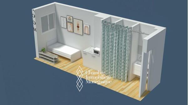 Bright maid's room located in the heart of the Jardin Exotique district and more precisely in the BERMUDA building