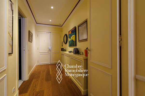 Situated on the 1st floor, this three-room apartment features a bright living area opening onto a spacious 48 m² terrace with planters, adding a touch of greenery and serenity. Its optimized layout and high-end finishes make it a rare find on the Monaco real estate market.