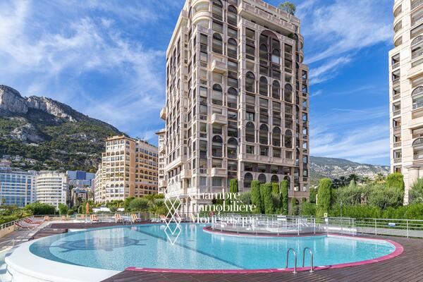 Facing the sea, in the prestigious Seaside Plaza residence in the Fontvieille district, this spacious 2-bedroom apartment with an area of 208 m², including 76 m² of terrace, offers a prime location as well as a very pleasant view of the sea and the Principality.
