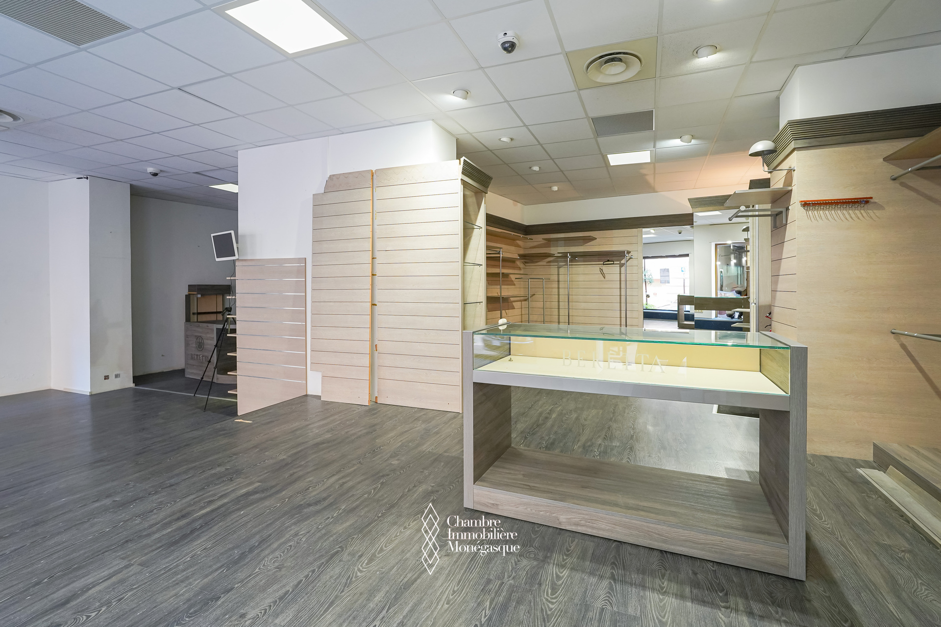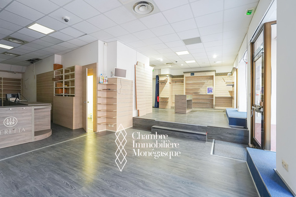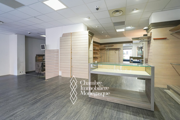 Commercial premises of 150 sqm in the heart of La Condamine, offering 4 windows, high visibility and strategic location. Air-conditioned, secure, with back room and two toilets.