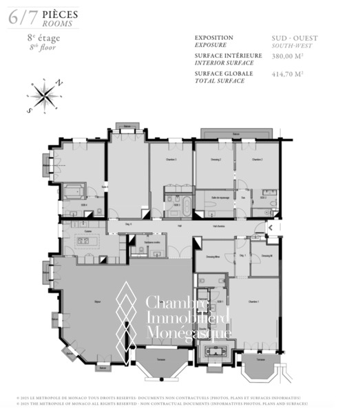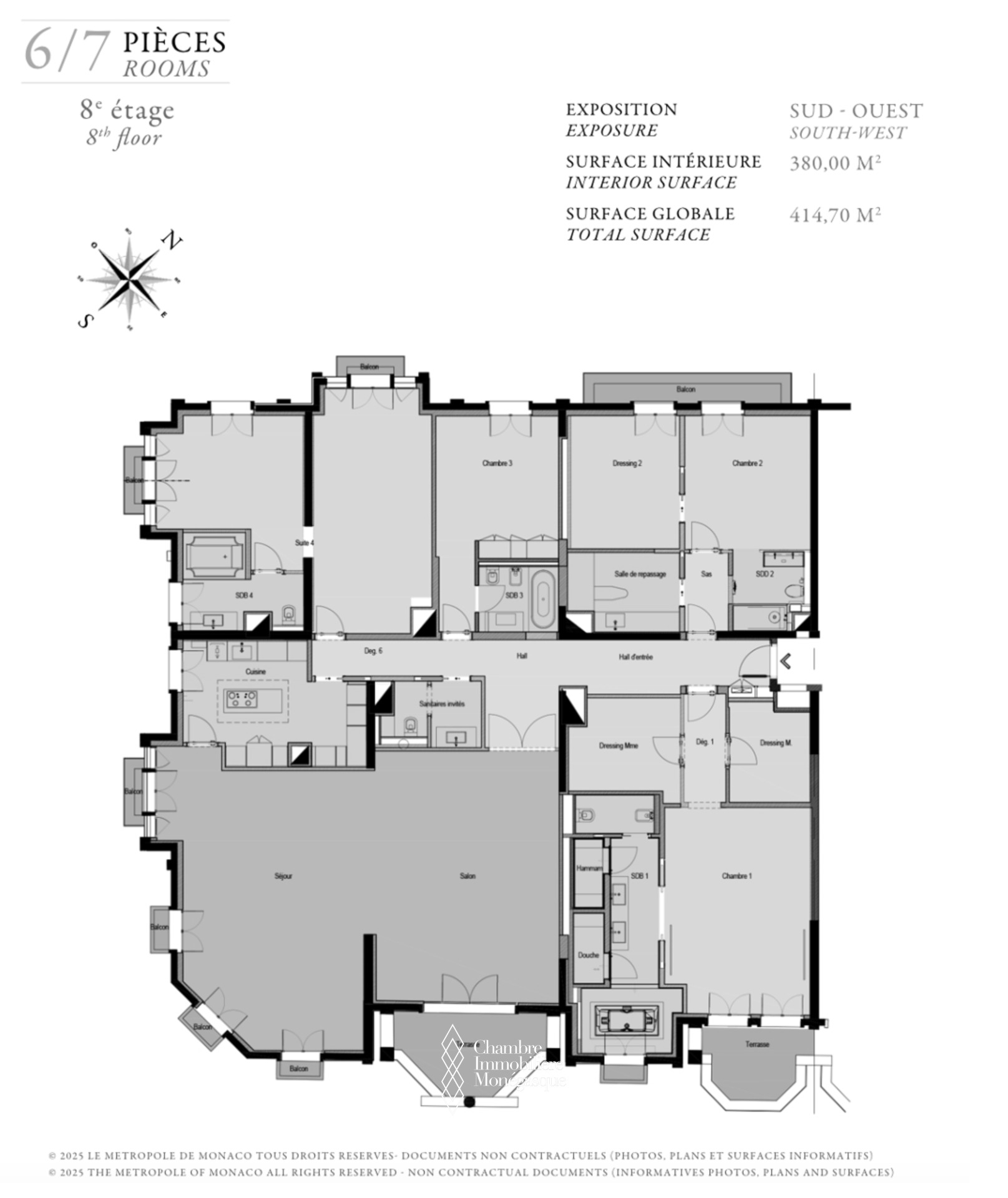 Exceptional 4-bedroom apartment with terrace and sea view located in the luxurious residence of the Metropole, giving access to the swimming pool and the SPA of the luxurious hotel.