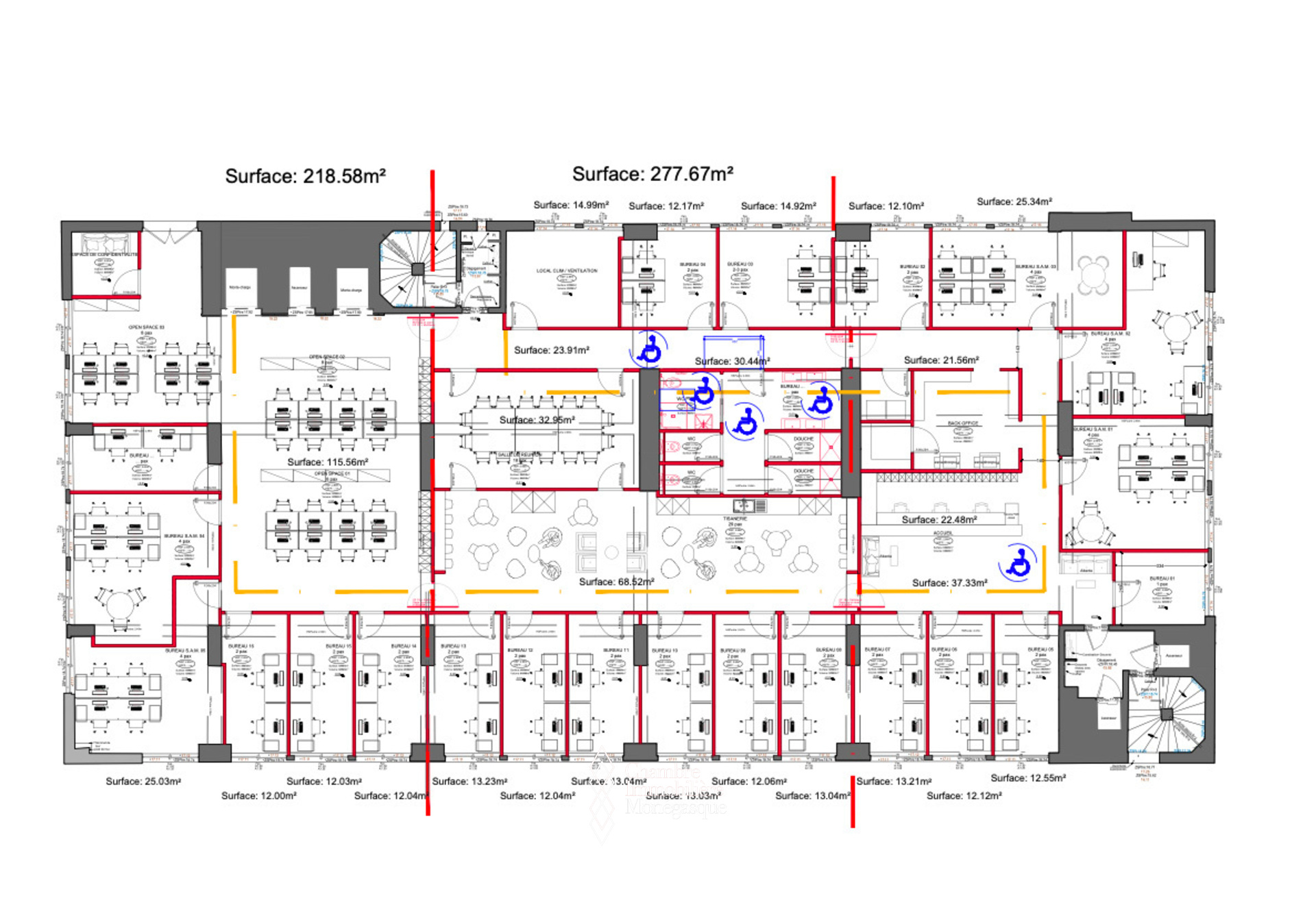 Spacious office floor located in Fontvieille, at the heart of Monaco’s industrial and commercial area, within a building exclusively occupied by businesses.