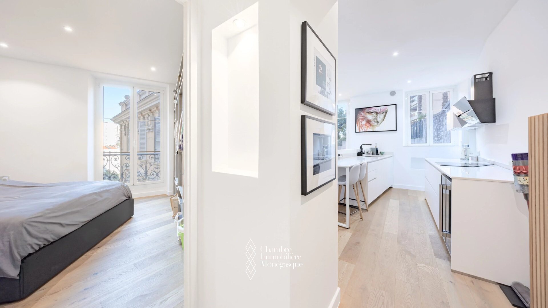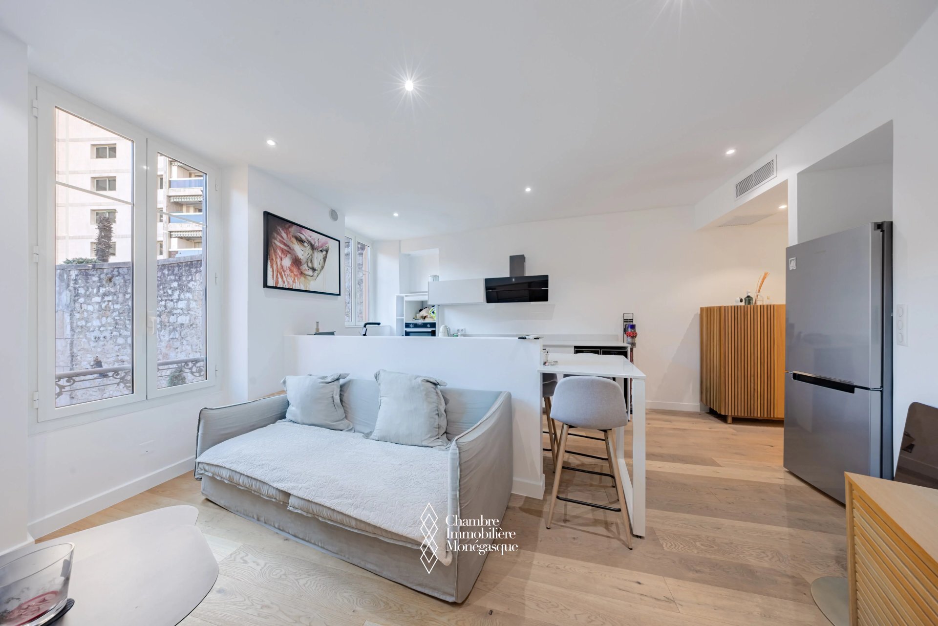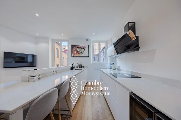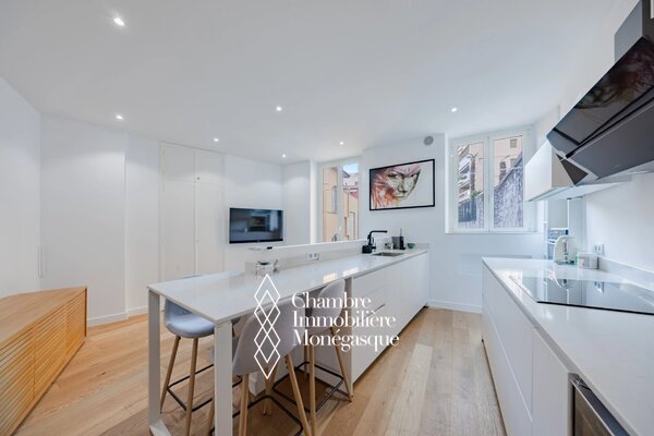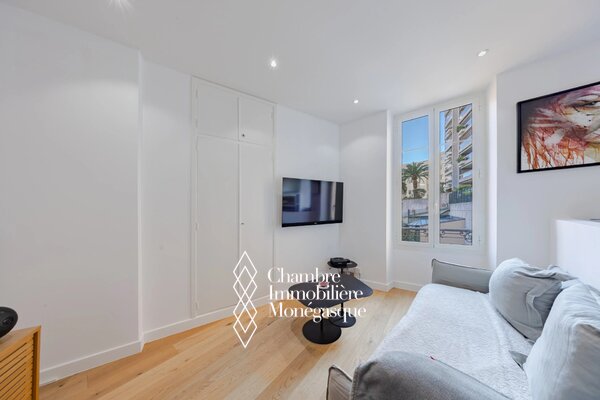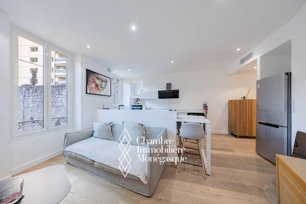 Completely renovated, this 2-room apartment offers a pleasant living space in a rapidly evolving neighborhood close to the center and Port Hercule, thanks to its proximity to the train station. The building is set back from the road and offers a quiet setting. Perfect for a couple moving to Monaco, as the building has very low condominium charges. This 56 m2 apartment is located on the 3rd and top floor, without elevator, and comprises an entrance hall, a living room with open kitchen offering a view of the greenery, a large bedroom and a shower room.