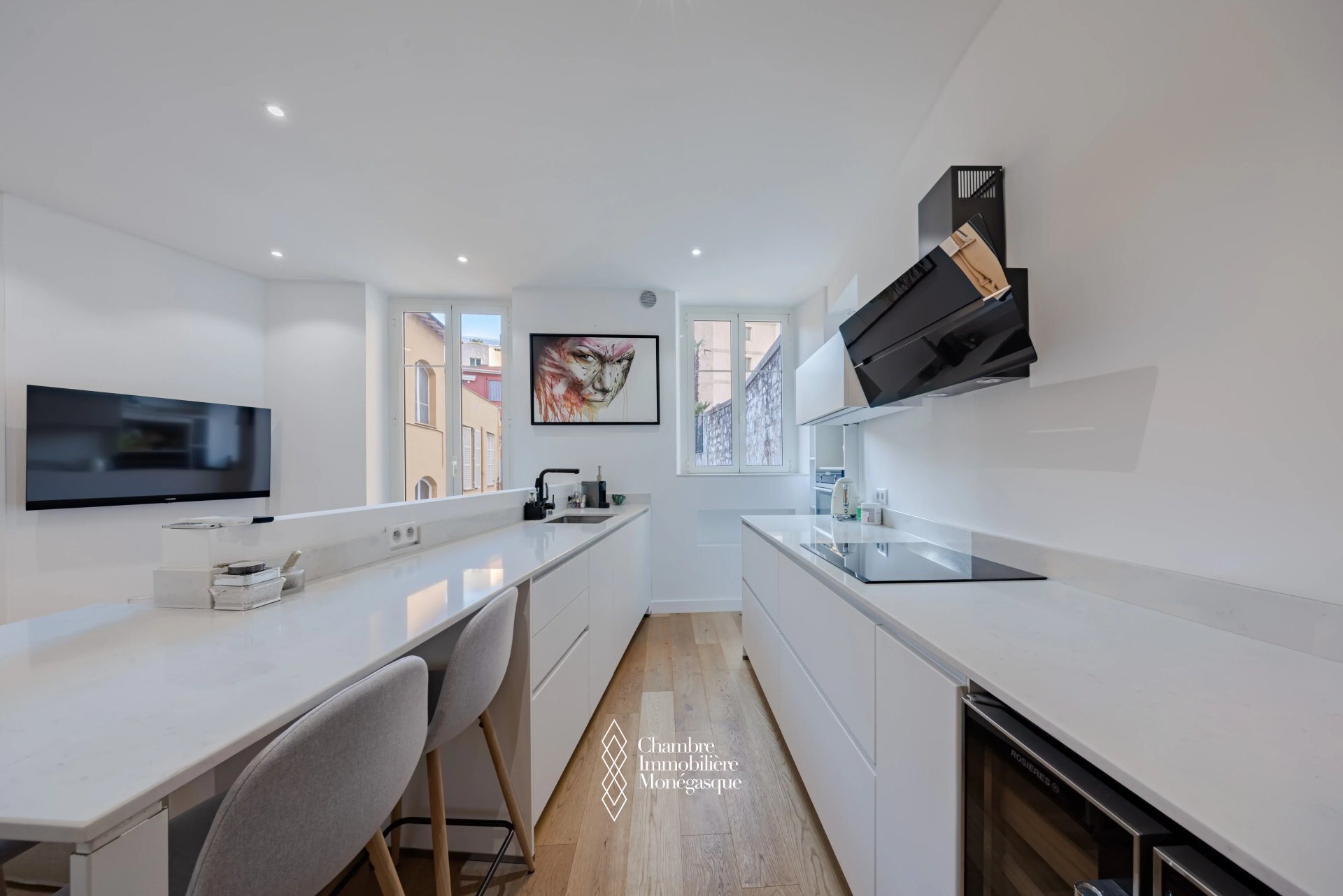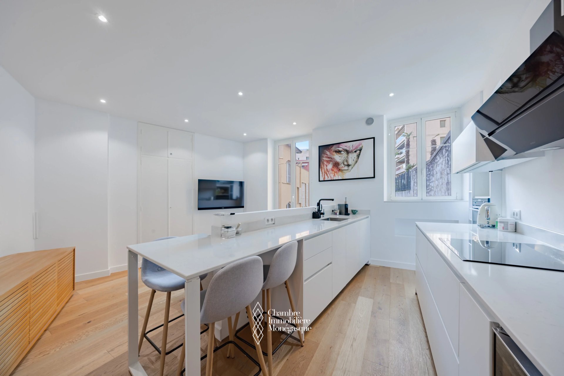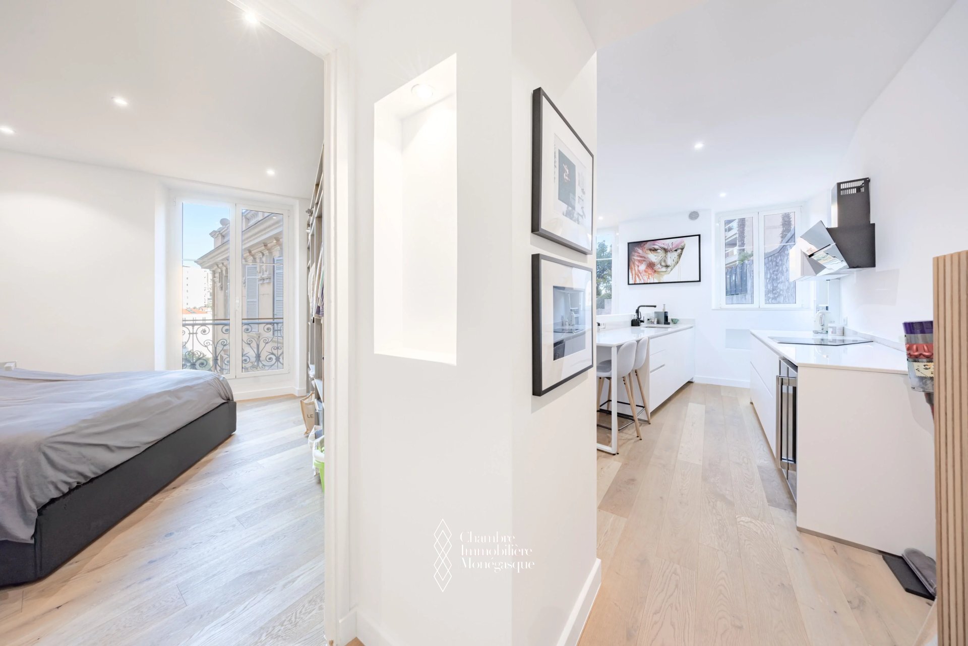 Completely renovated, this 2-room apartment offers a pleasant living space in a rapidly evolving neighborhood close to the center and Port Hercule, thanks to its proximity to the train station. The building is set back from the road and offers a quiet setting. Perfect for a couple moving to Monaco, as the building has very low condominium charges. This 56 m2 apartment is located on the 3rd and top floor, without elevator, and comprises an entrance hall, a living room with open kitchen offering a view of the greenery, a large bedroom and a shower room.