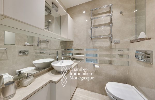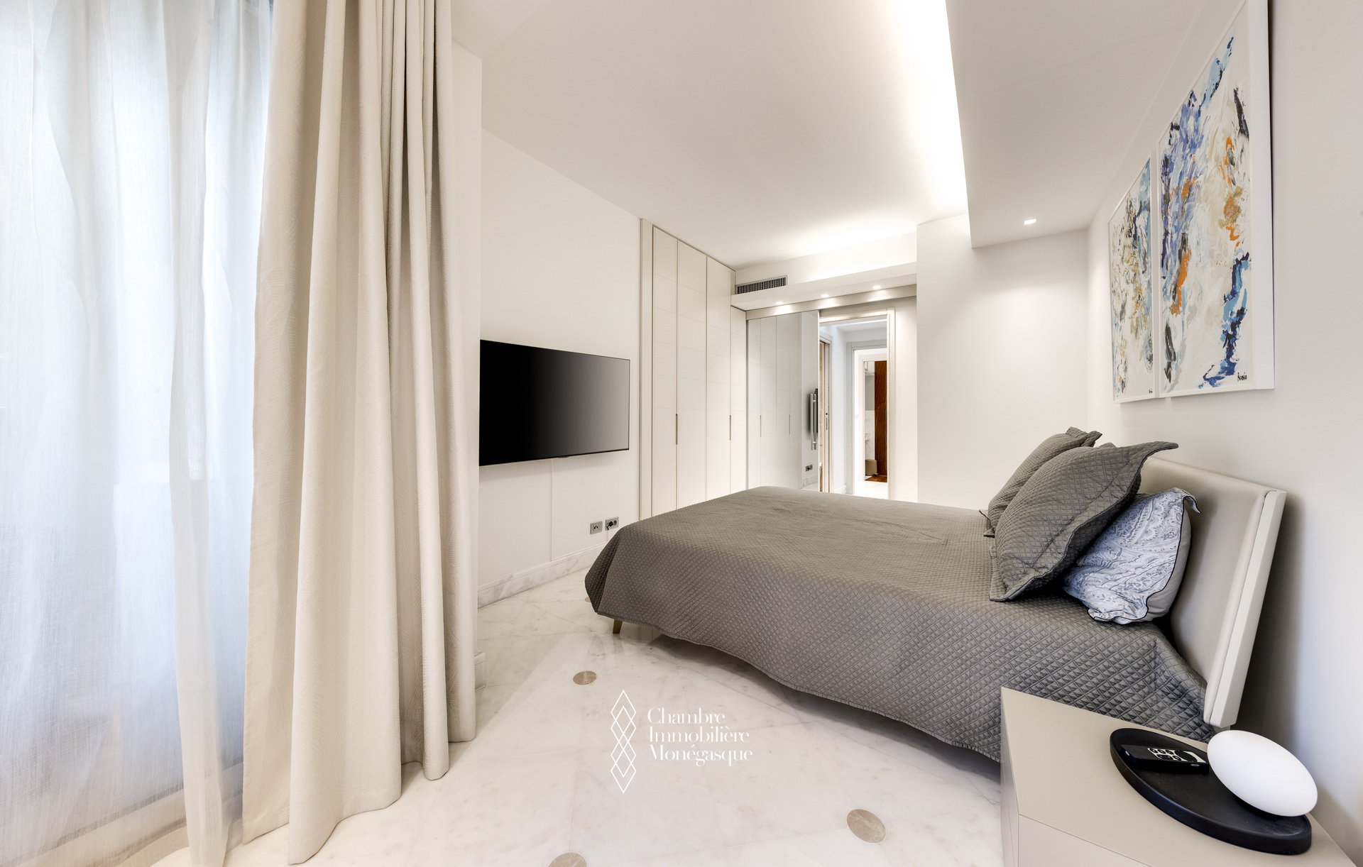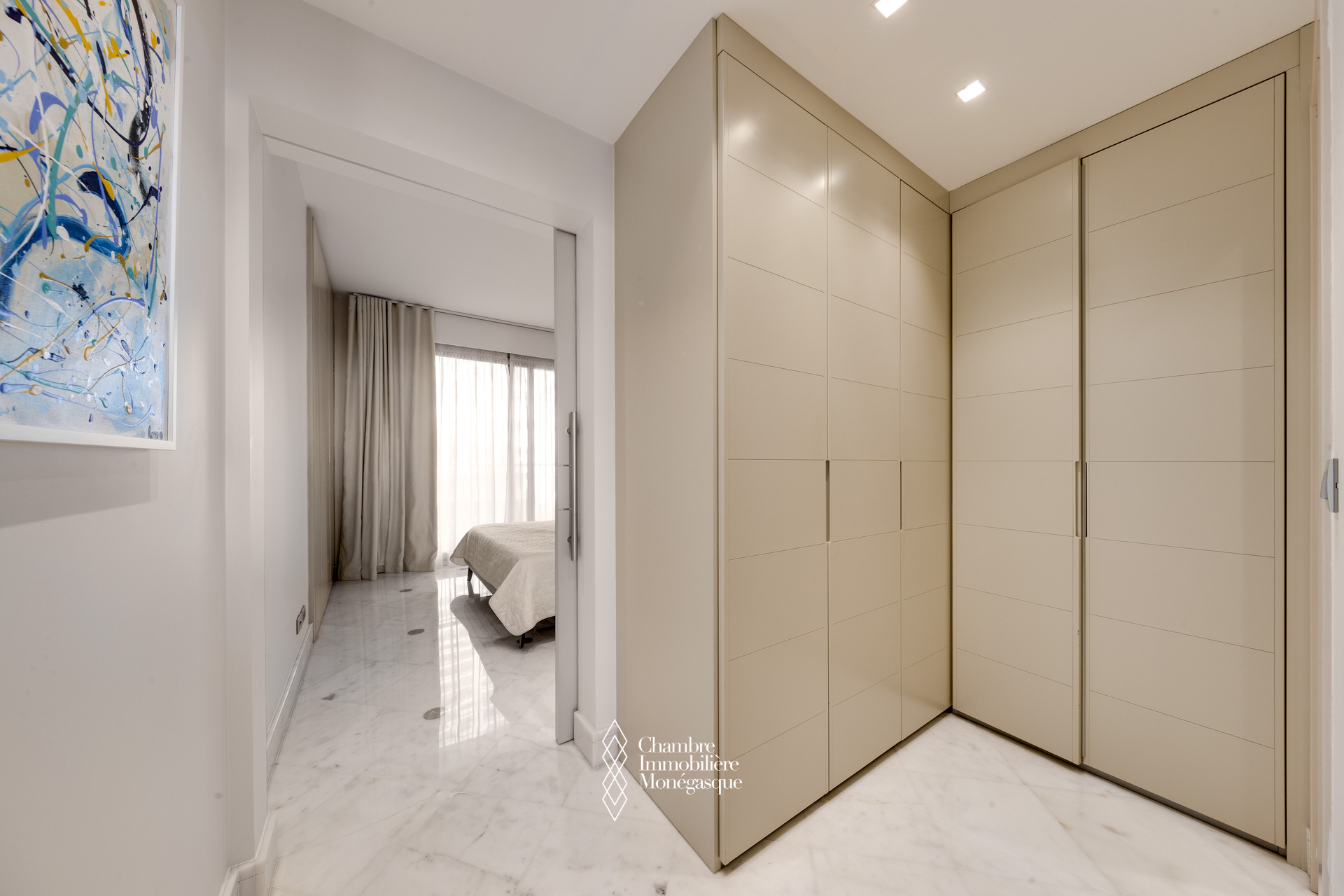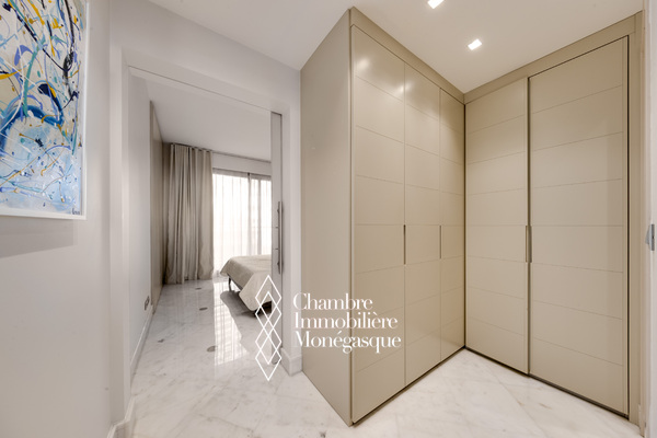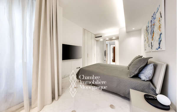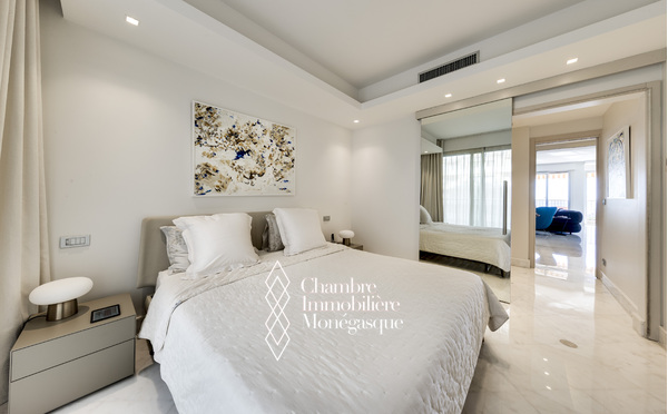 Located in Le Château d’Azur, just a few steps from the Larvotto beaches and the center of Monte-Carlo, this elegant three-room apartment, in perfect condition and measuring approximately 130 sqm, offers an ideal living environment combining comfort, brightness, and panoramic sea views.