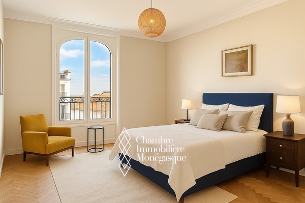 In a bourgeois residence with elevator, spacious apartment with sea escape,  crossing, free of law, on the first floor with balcony.