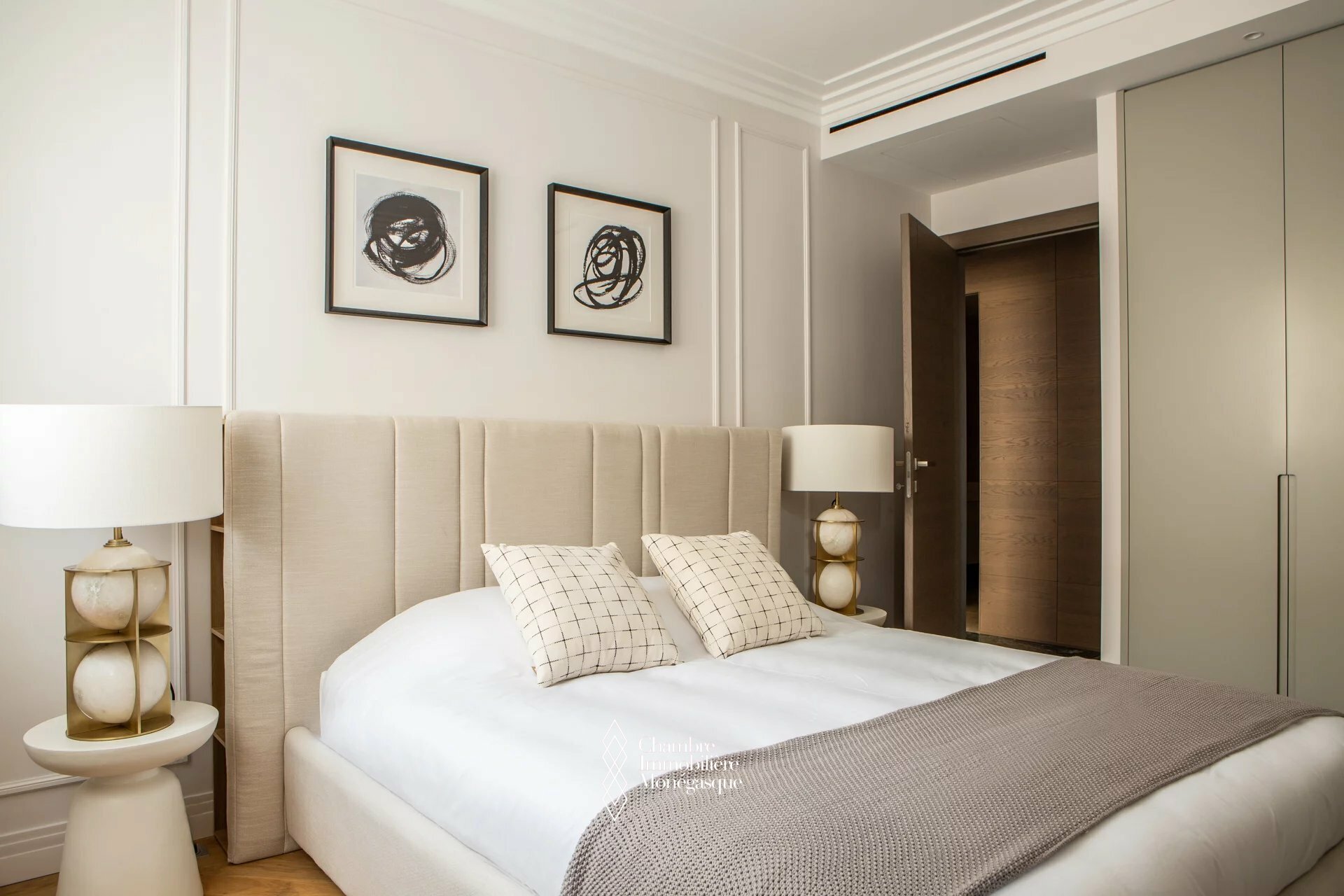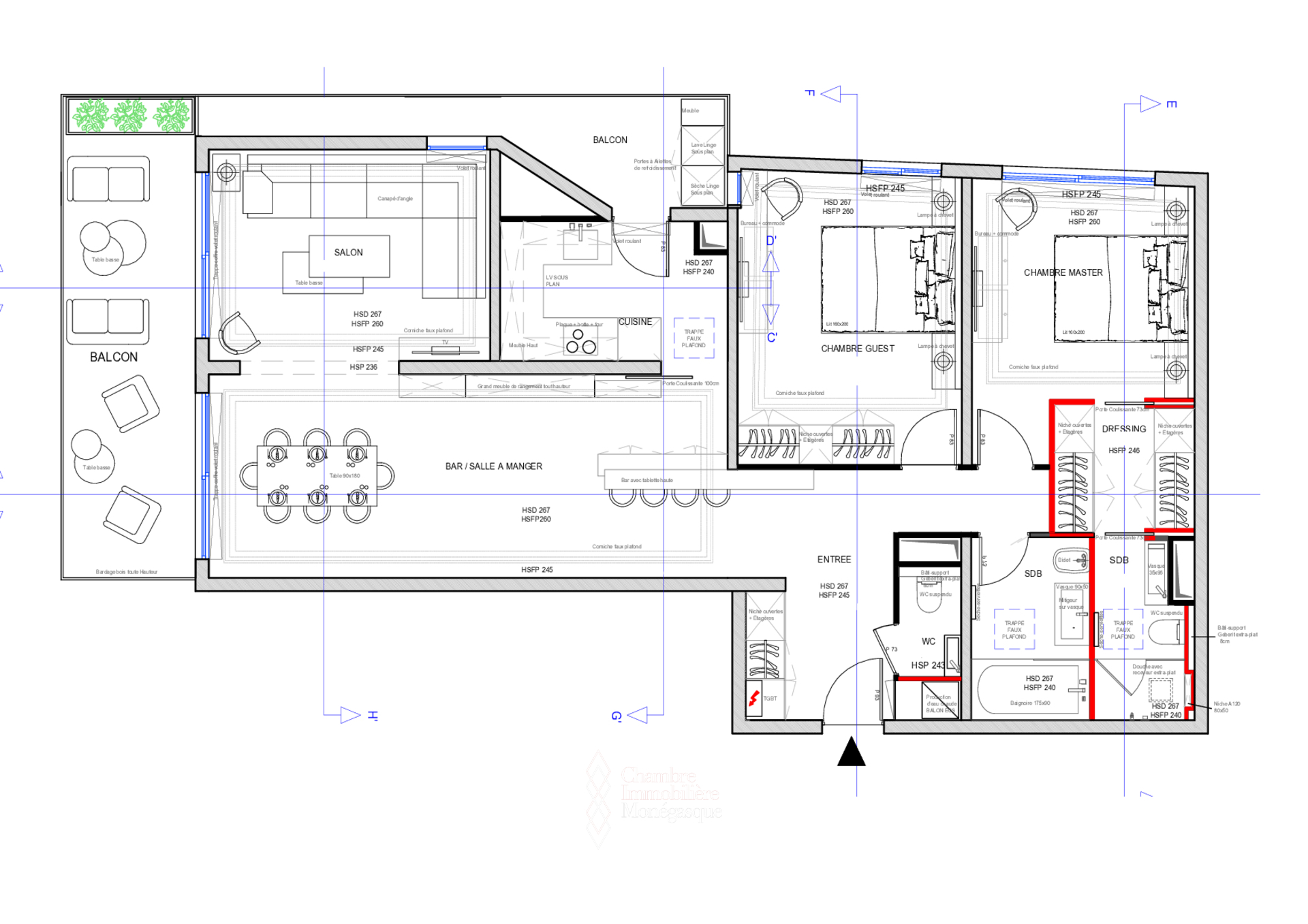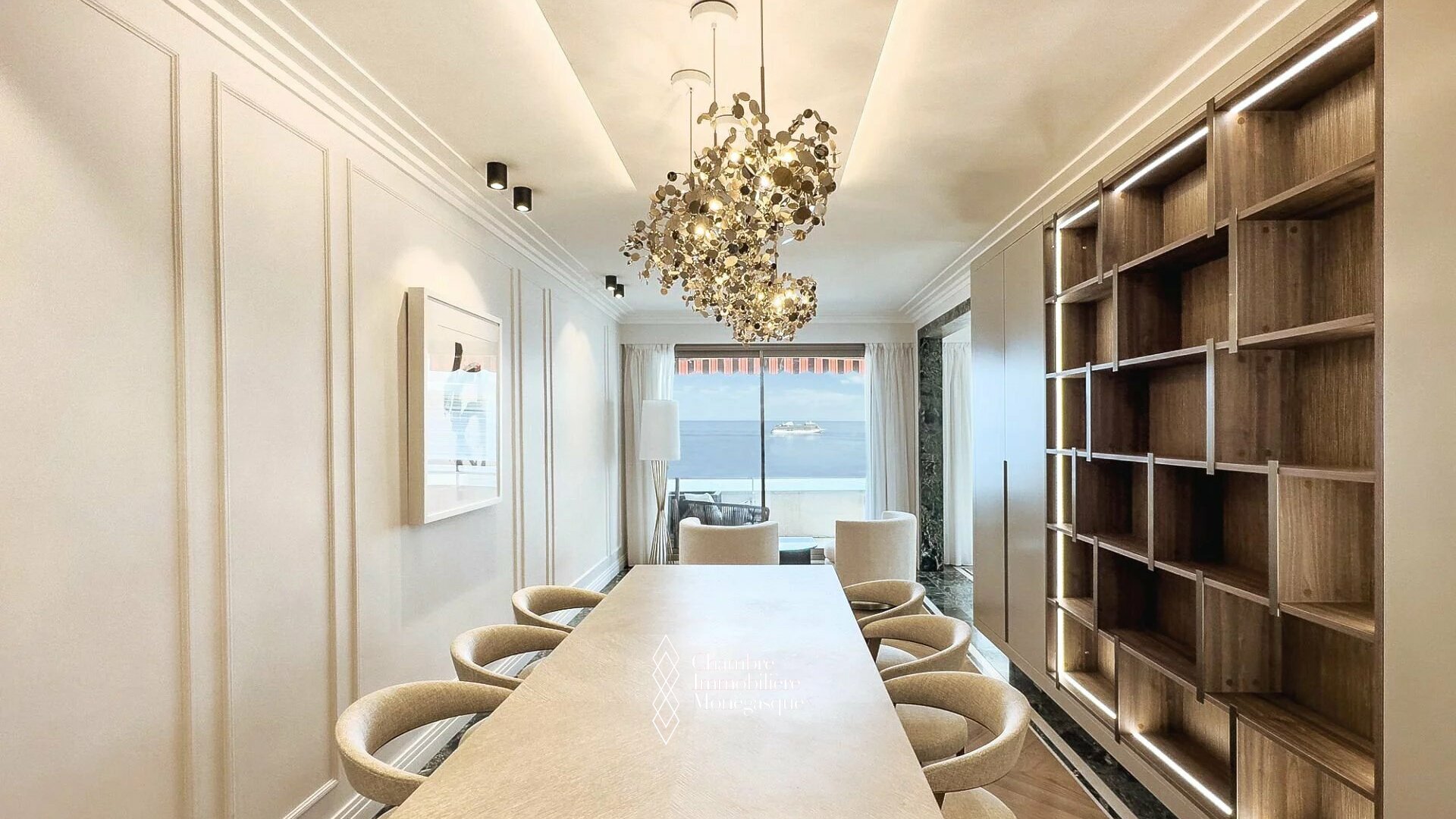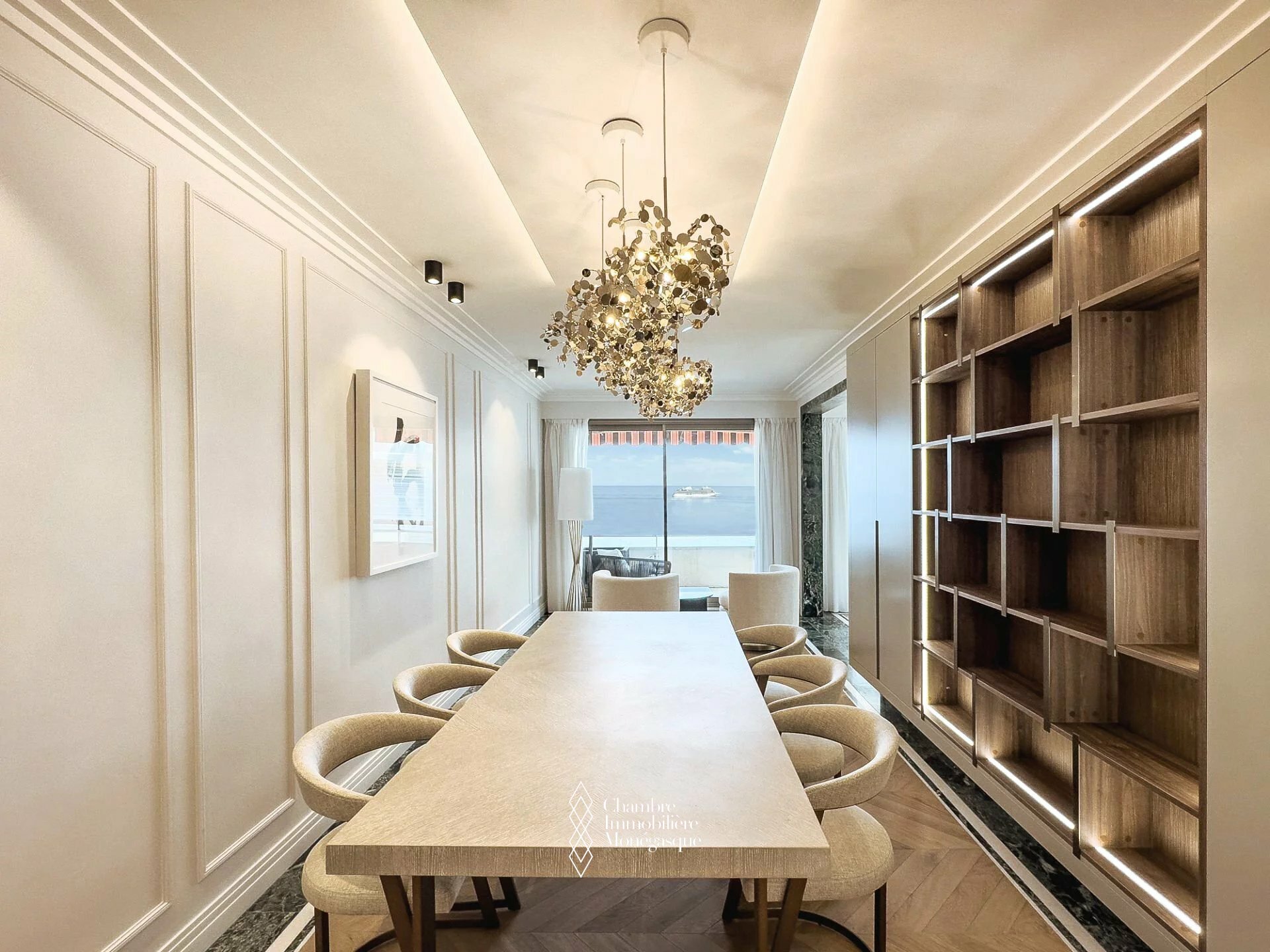 The apartment is for mixed use. it is composed of an entrance opening onto a living room and dining room which extend onto this deep terrace and offer a spectacular sea view, a fully equipped independent kitchen, two spacious bedrooms with storage, two bathrooms and a guest toilet.