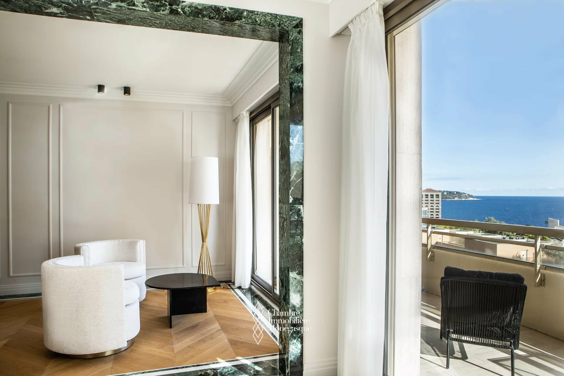 This two bedroom, three bathroom apartment is located in a serviced residence named Chateau Amiral. This apartment has just been completely renovated and is sold furnished. The building is located steps away from the Larvotto beach and close to all amenities located on the boulevard d'Italie. The main living areas of the apartment, offer breathtaking views on the sea and the Cap Martin.