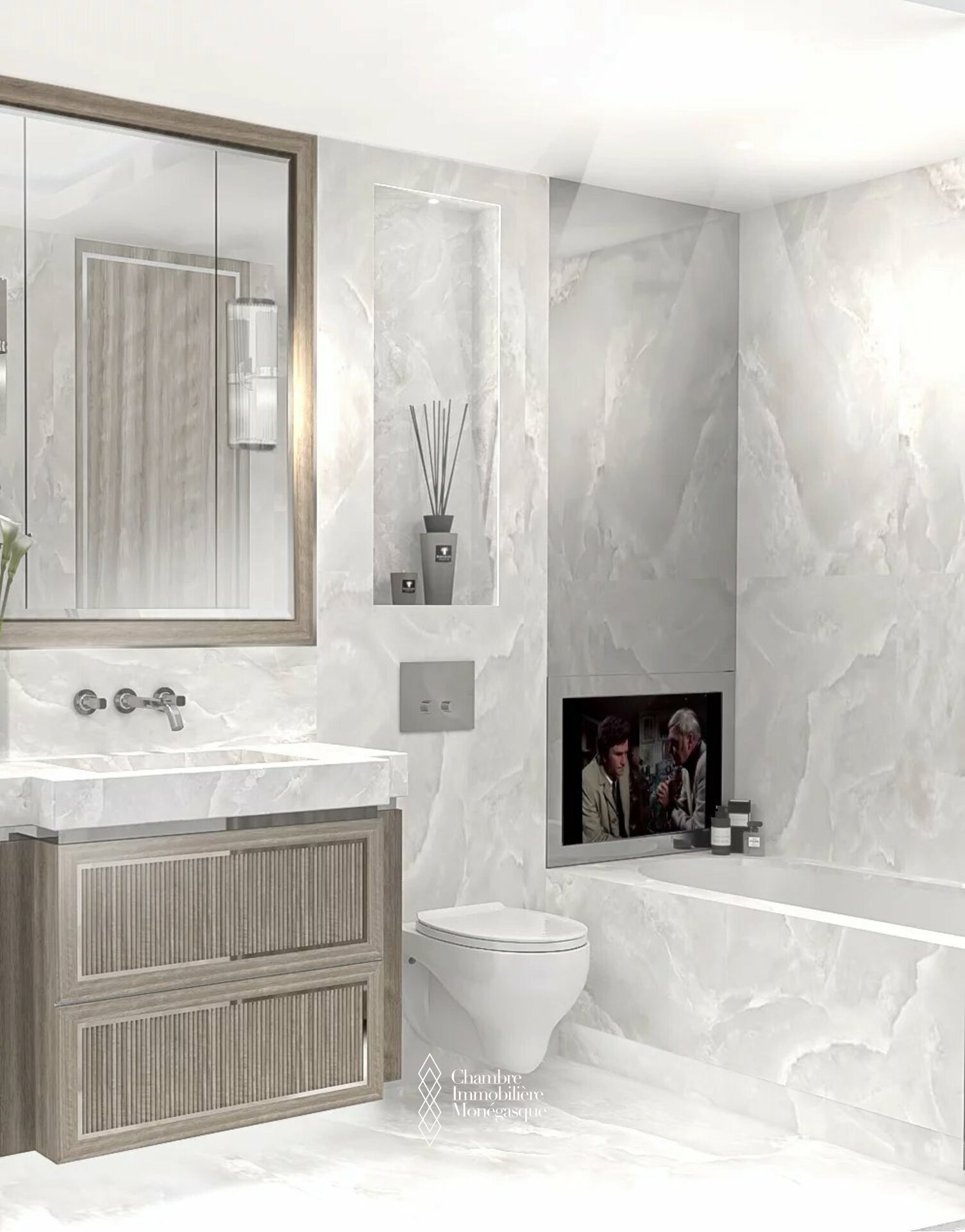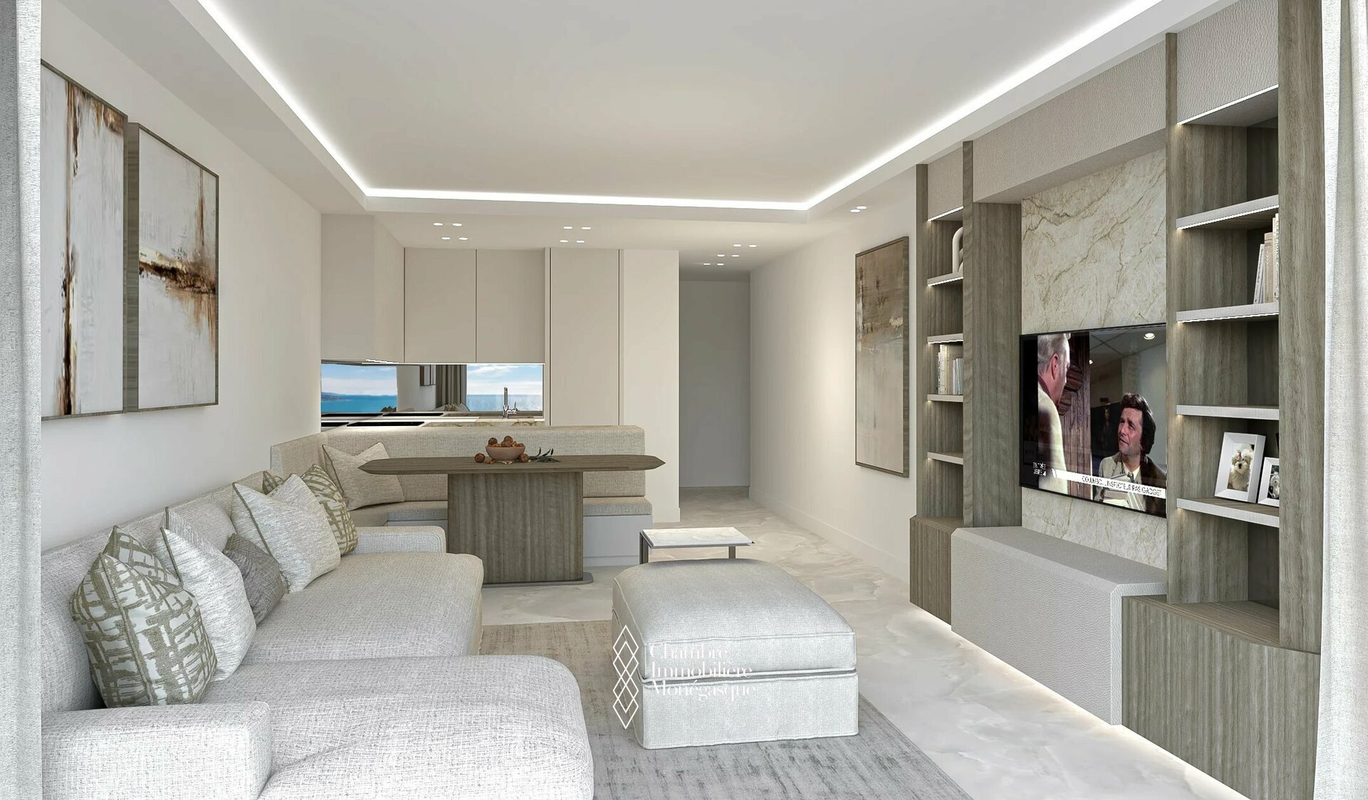 This beautiful 3-room apartment is currently undergoing a complete renovation and will be available for rent starting from October 15, 2025. It will be finished with high-quality materials, feature new windows, and be stylishly furnished – ideal for anyone seeking luxurious living in a prime location in Monaco. A special highlight is the spacious terrace with breathtaking sea views. The apartment’s fittings leave nothing to be desired: elegant parquet flooring, refined marble floors, and custom-made wooden fixtures create an exclusive living atmosphere. The apartment will be equipped with underfloor heating as well as built-in speakers in the bedrooms, bathrooms, and living room. The renowned Mirabeau residence also offers residents a swimming pool and the highest level of comfort. The location of this property is excellent – Larvotto Beach is just two minutes away, and the Hotel de Paris, Métropole, and the famous Carré d’Or are also just a few steps from your doorstep. Additionally, the building includes a fitness room and the world-famous Cipriani restaurant, which is located directly within the residence. The apartment also comes with an underground parking space and a separate storage room. Move in, feel at home, and enjoy life in Monaco to the fullest!