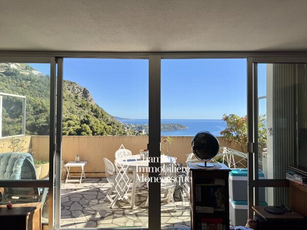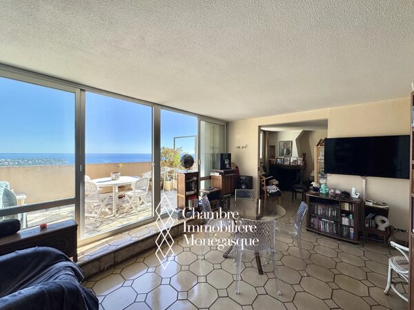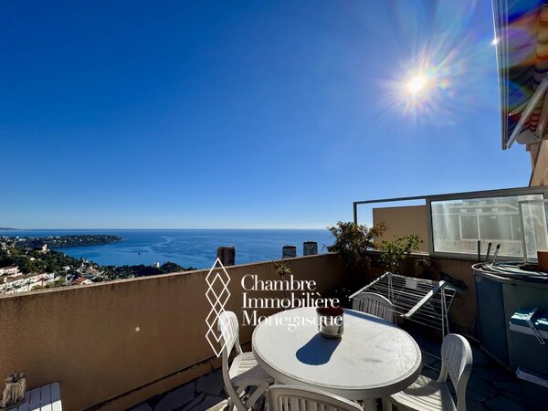 On the 14th and top floor of a well-maintained residence, discover this 3-room apartment of 69 m² living space, extended by a 15 m² terrace offering a breathtaking sea view all the way to Italy. The apartment enjoys exceptional brightness thanks to its exposure and elevated position.