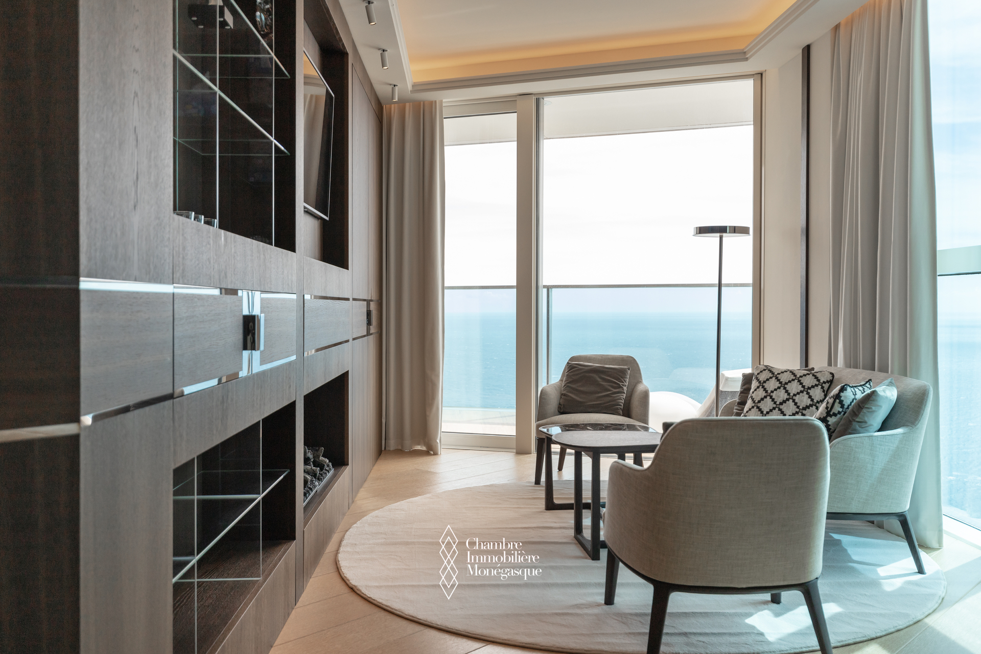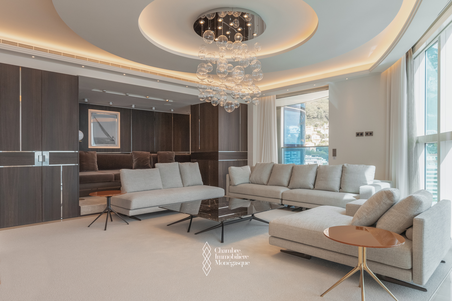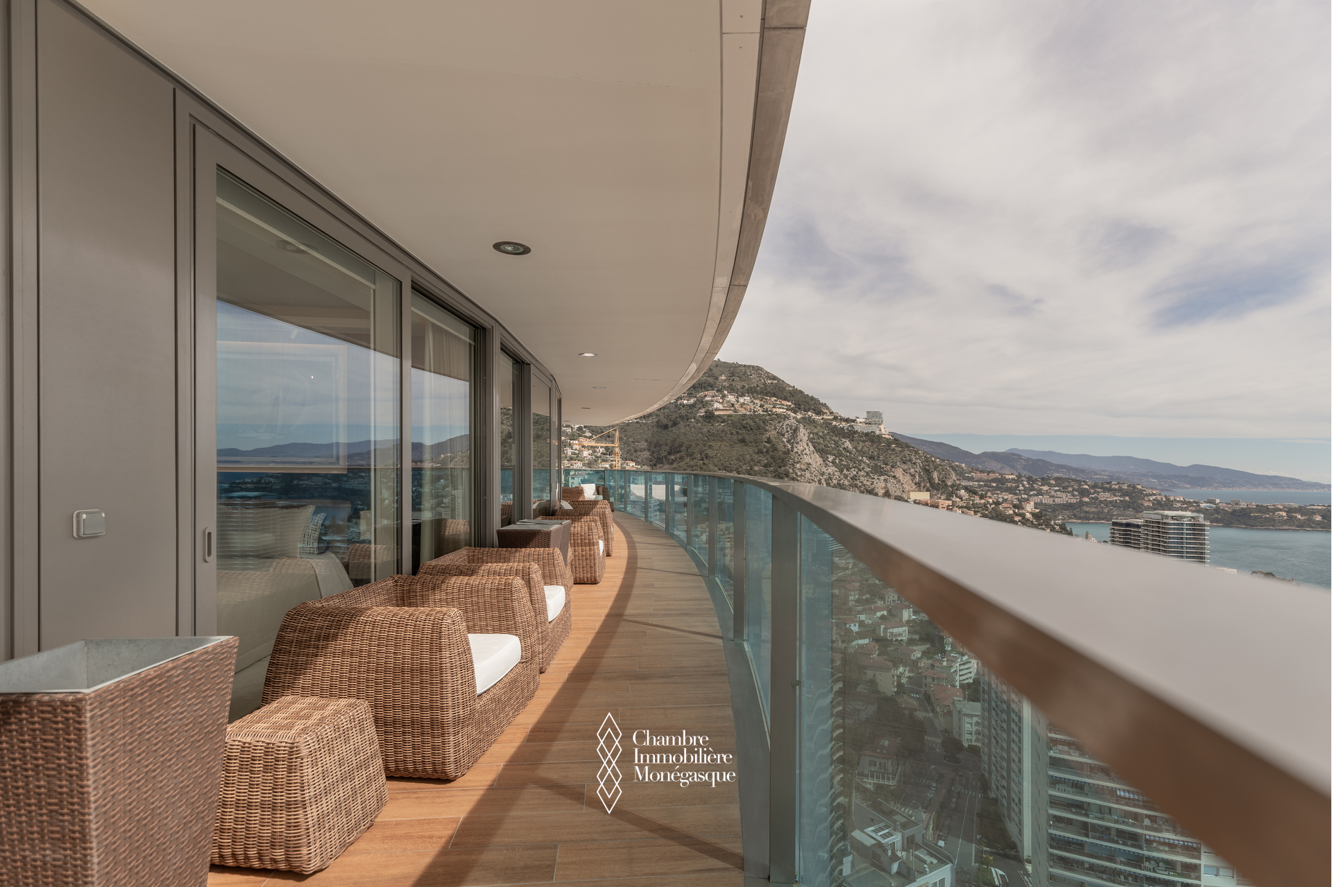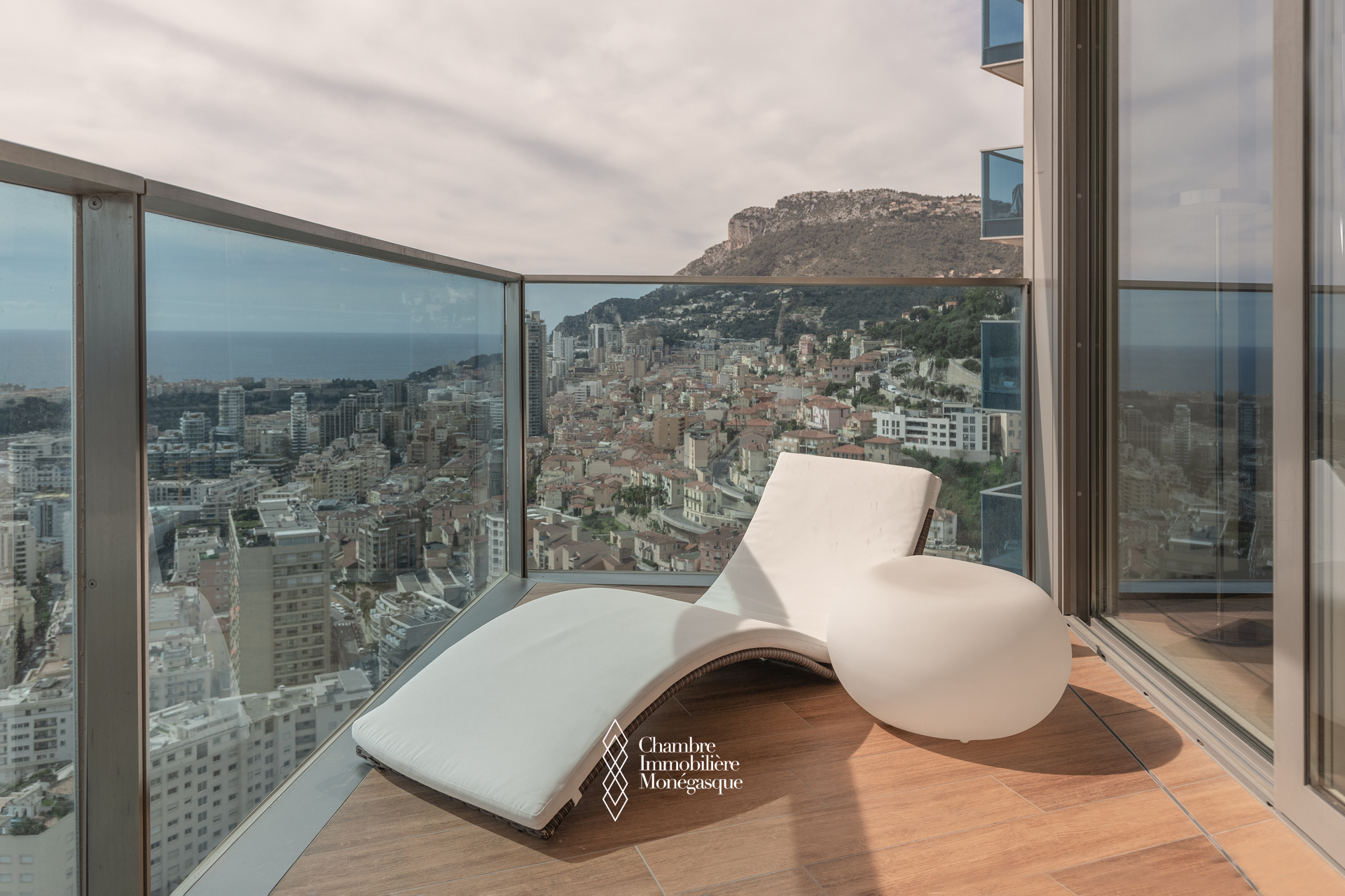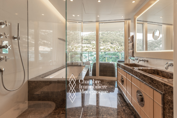 The apartment comprises a majestic entrance hall opening onto a bright double living room, a fully equipped modern kitchen, four spacious bedrooms, each with their own en-suite bathrooms and dressing room. Two magnificent wrap aroun terrace offer spectacular views over the Mediterranean, the Monegasque, French & italian coasts.