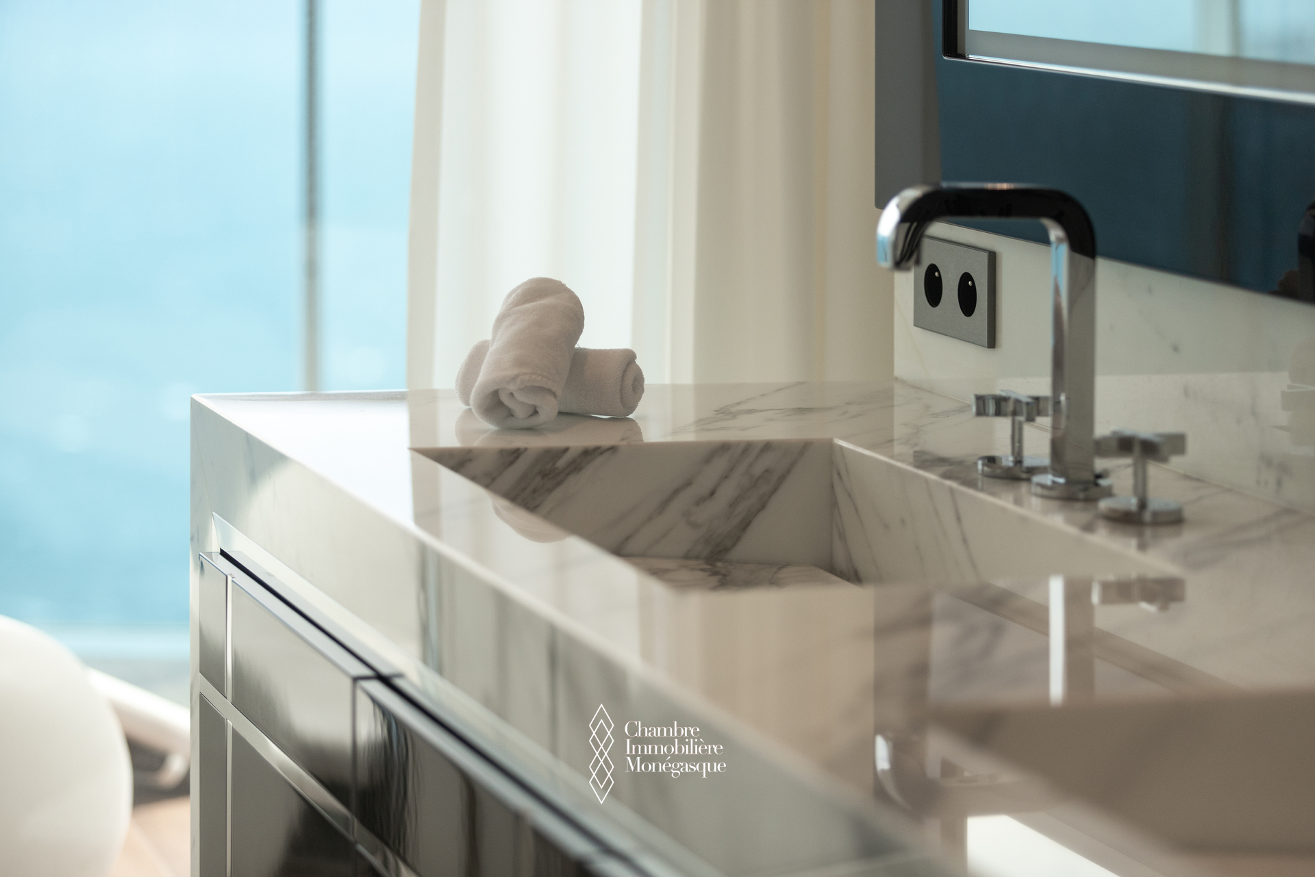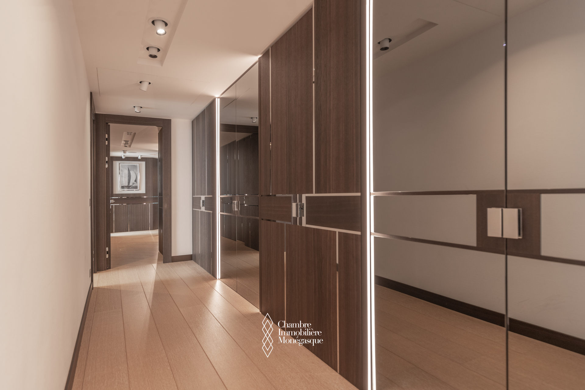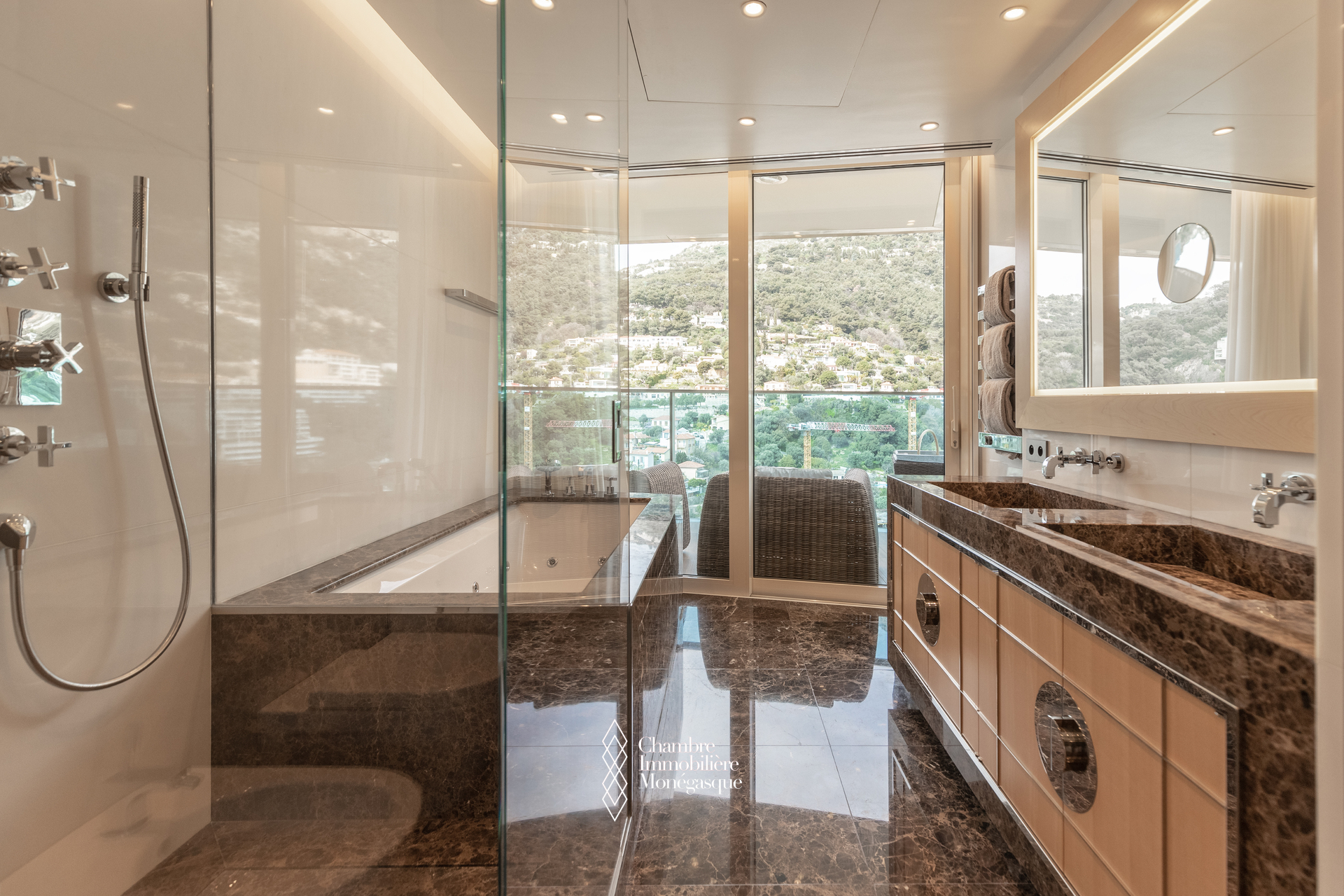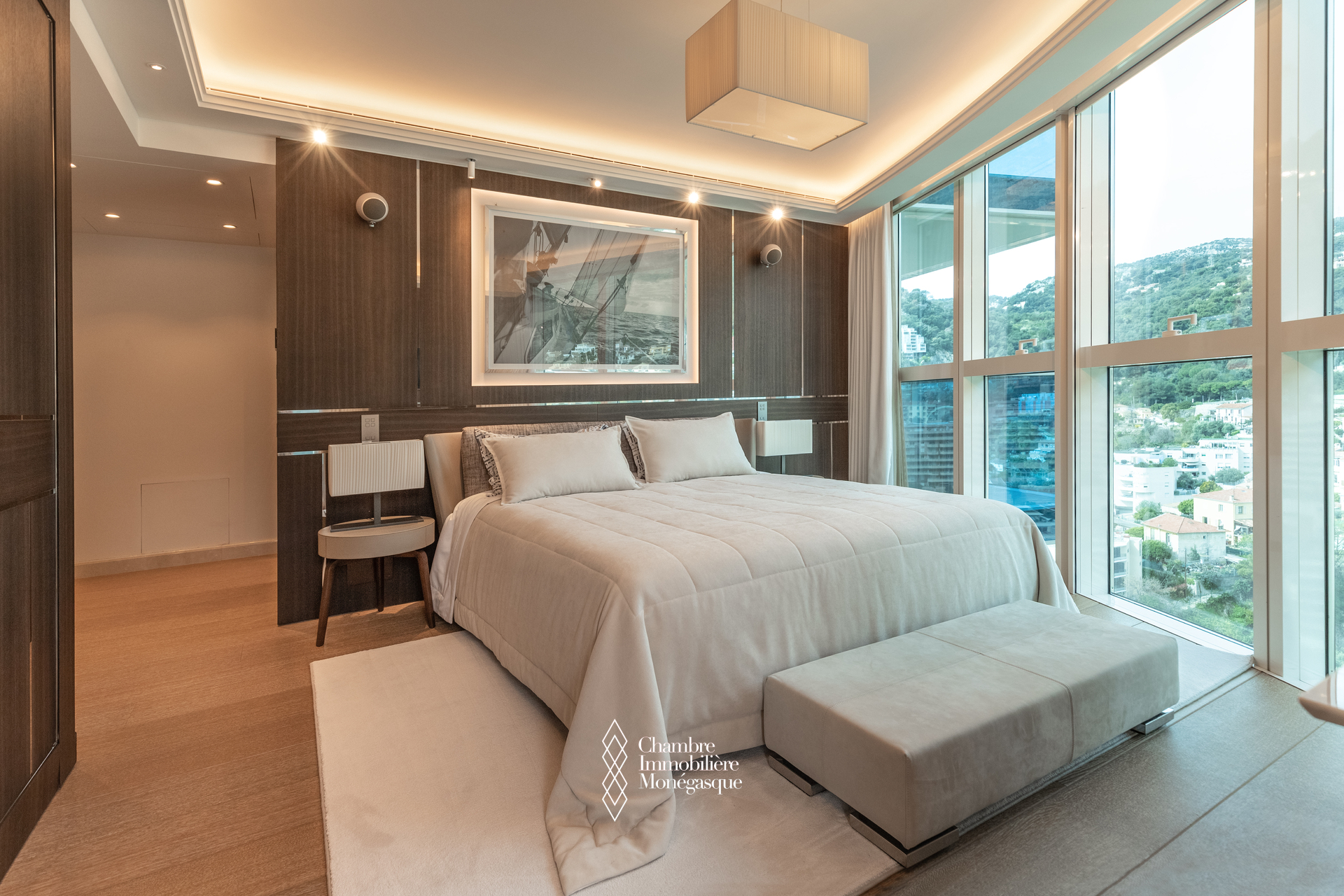 The apartment comprises a majestic entrance hall opening onto a bright double living room, a fully equipped modern kitchen, four spacious bedrooms, each with their own en-suite bathrooms and dressing room. Two magnificent wrap aroun terrace offer spectacular views over the Mediterranean, the Monegasque, French & italian coasts.