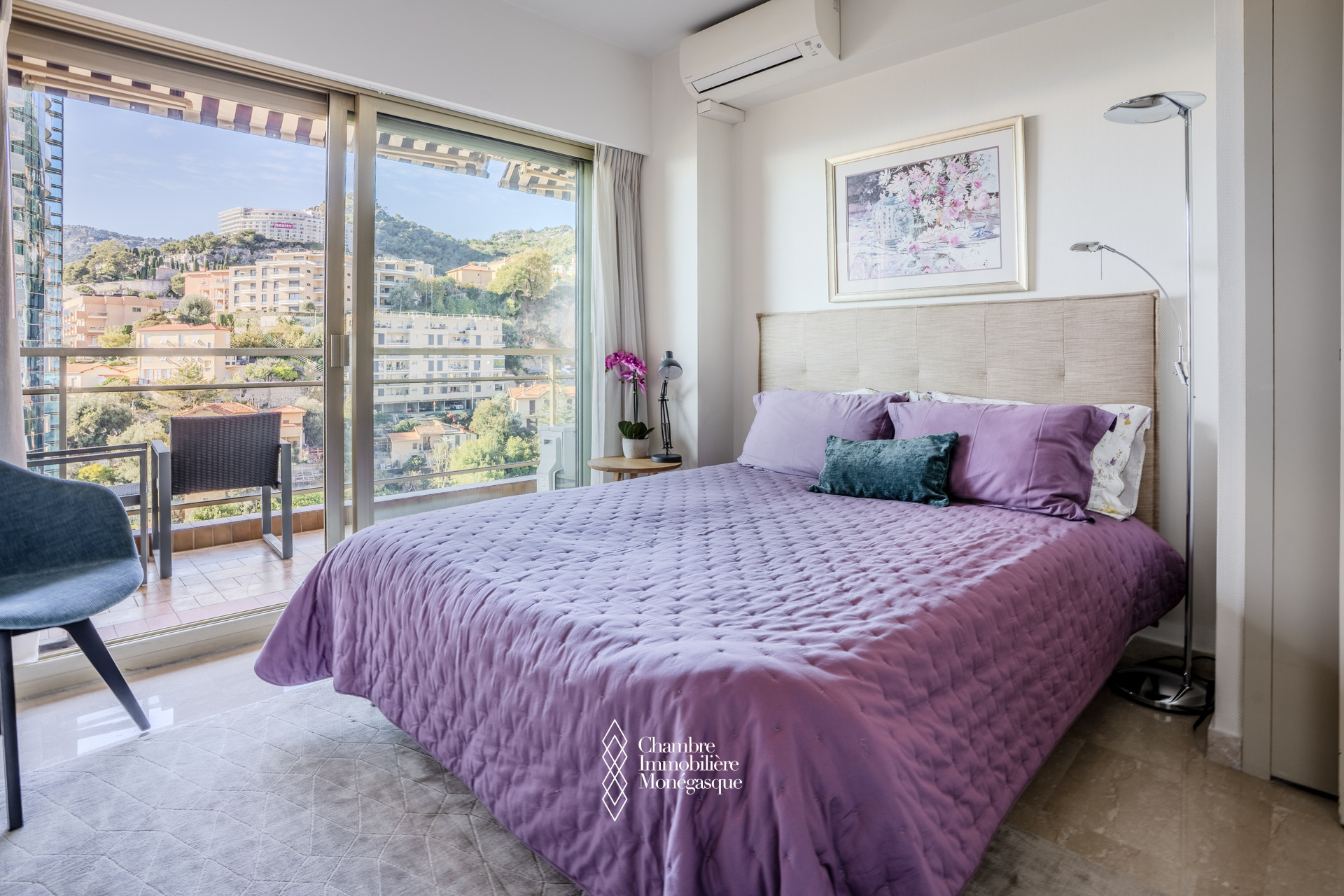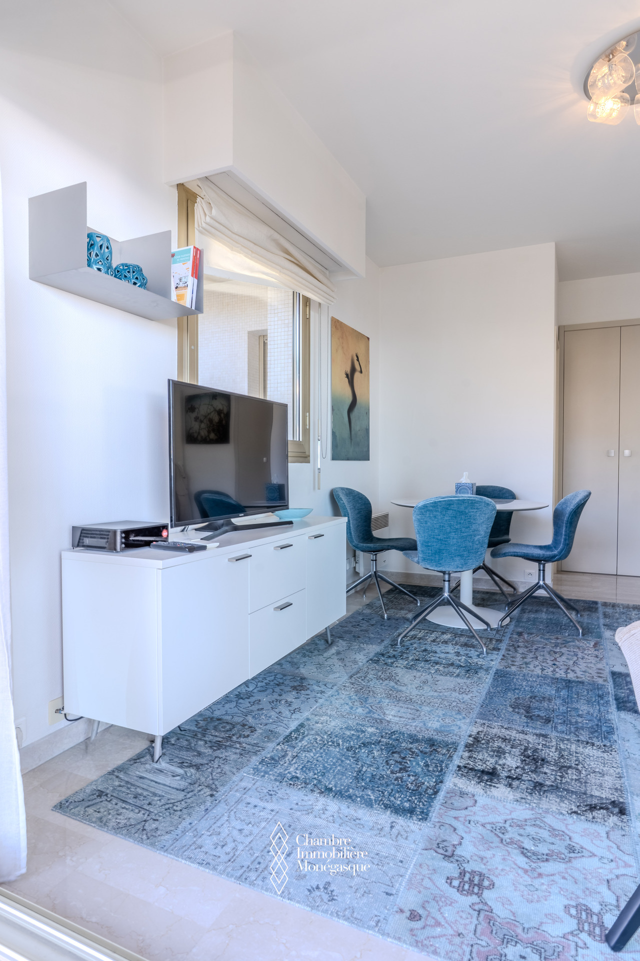 A fully furnished and air-conditioned apartment of about 75m2, located on a high floor in the residence 'L'Annonciade'.