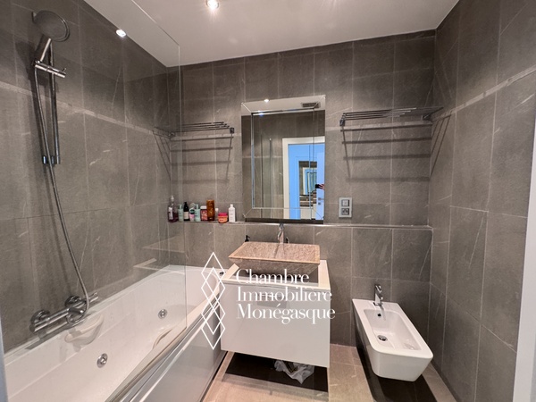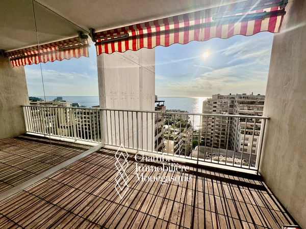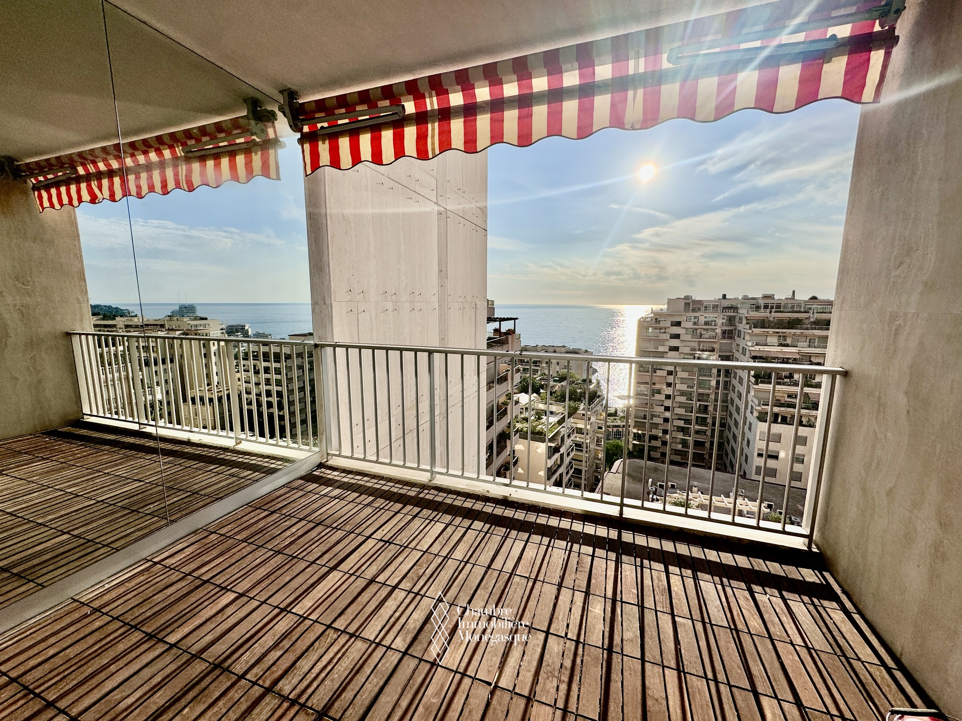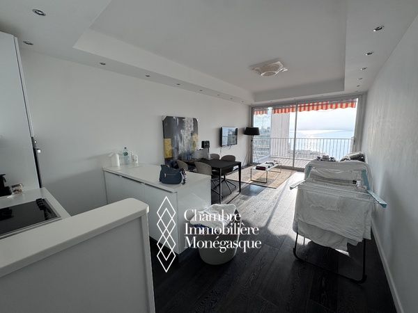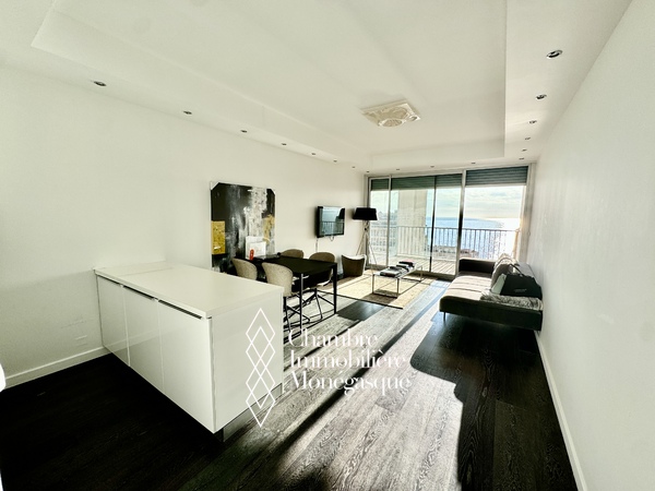 In a modern luxury residence in Monaco with 24/7 concierge service, discover this superb 3-room apartment, fully renovated. Located on a high floor, it offers a breathtaking view of the city and the Mediterranean Sea.