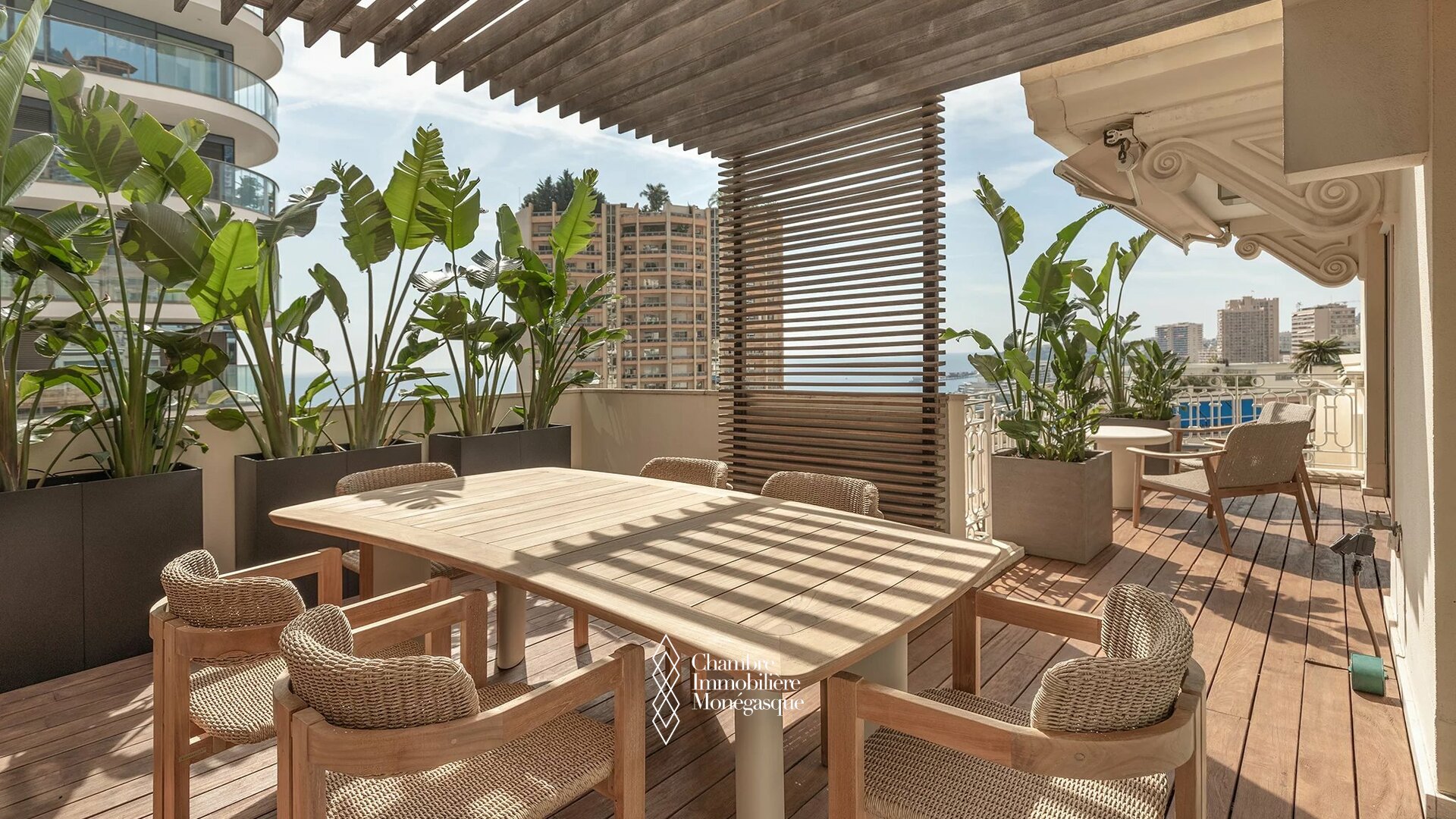 Les Villas del Sole is a luxury boutique residence offering a concierge service & a beautiful rooftop pool. The location is within close walking distance of the MC Country Club, the Larvotto beaches & the new International School. This magnificent 5 bedroom, 6 bathroom apartment occupies the entire top floor of the building. It spans over 460 m2 and boasts large, bright rooms throughout. The property has been newly renovated and is sold fully furnished. Highlights of the home include its many, spacious living areas, a fully equipped Gaggenau kitchen, a separate master wing, as well as 4 additional bedrooms, and a multitude of terrasses, offering ideal sun exposure all day long.