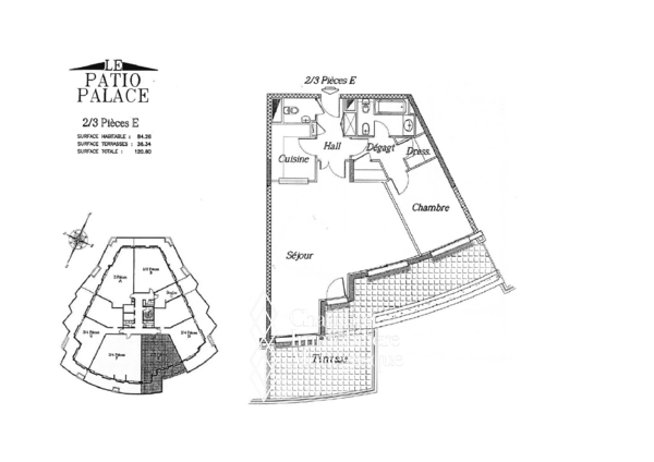 It is composed as follows: entrance, guest toilet, fitted kitchen open to the living room, living/dining room, dressing room, bathroom (shower and bath) complete, bedroom. The main rooms open onto a large sunny loggia. The apartment is air-conditioned.