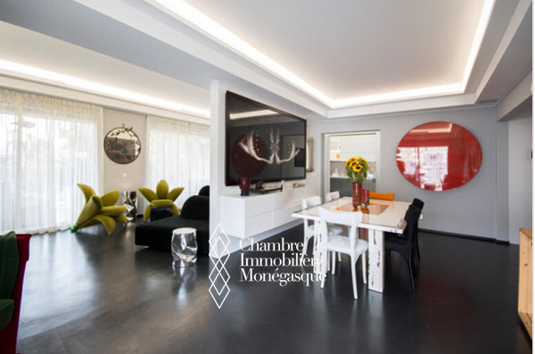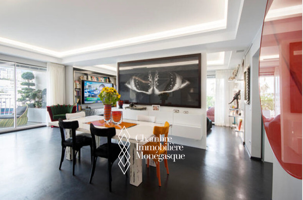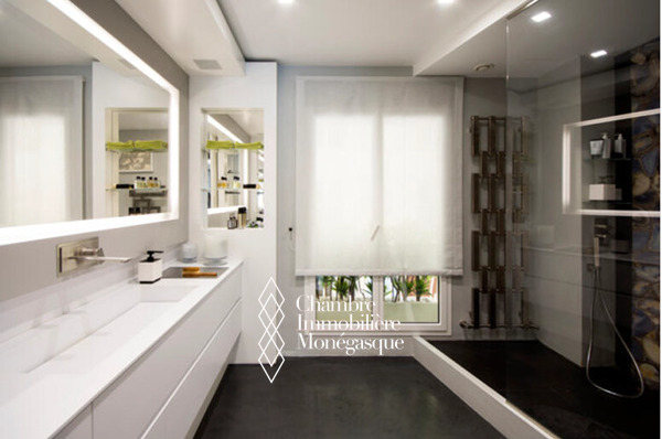 The 4-room apartment is formed by joining two units. It has recently undergone extensive renovation work. The contemporary-style decoration includes all custom-made joinery made by Italian craftsmen, alarm and camera system, independent heating and air conditioning, outdoor heating allowing you to enjoy the terrace all year round, Sonos music system. Distribution: entrance with cloakroom, living room, dining room, kitchen, storage room, guest toilet, balcony overlooking Fort Antoine, balcony overlooking Port Hercule and the city, 3 bedrooms, 3 bathrooms, dressing room, numerous closets. One cellar and one parking box.