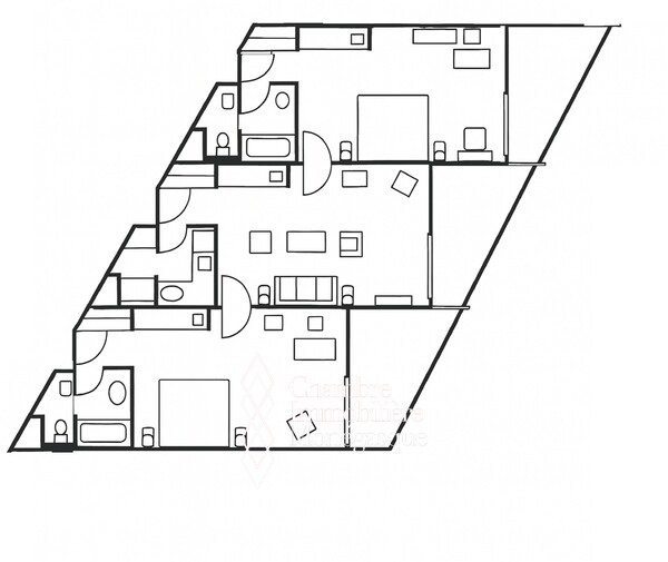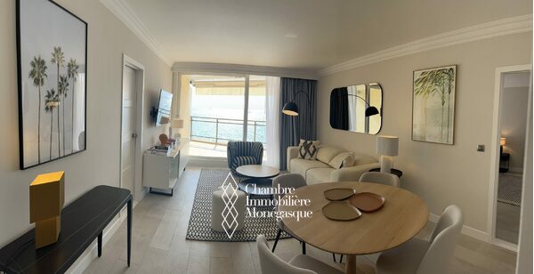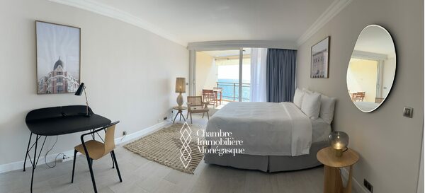 Facing the sea, this luxury furnished and renovated 3-room apartment is composed as follows: entrance hall leading to the living room, fully equipped kitchen, two bedrooms each with its own bathroom, adjoining dressing room. Three comfortable terraces allow you to enjoy a direct view of the Mediterranean Sea.