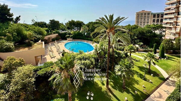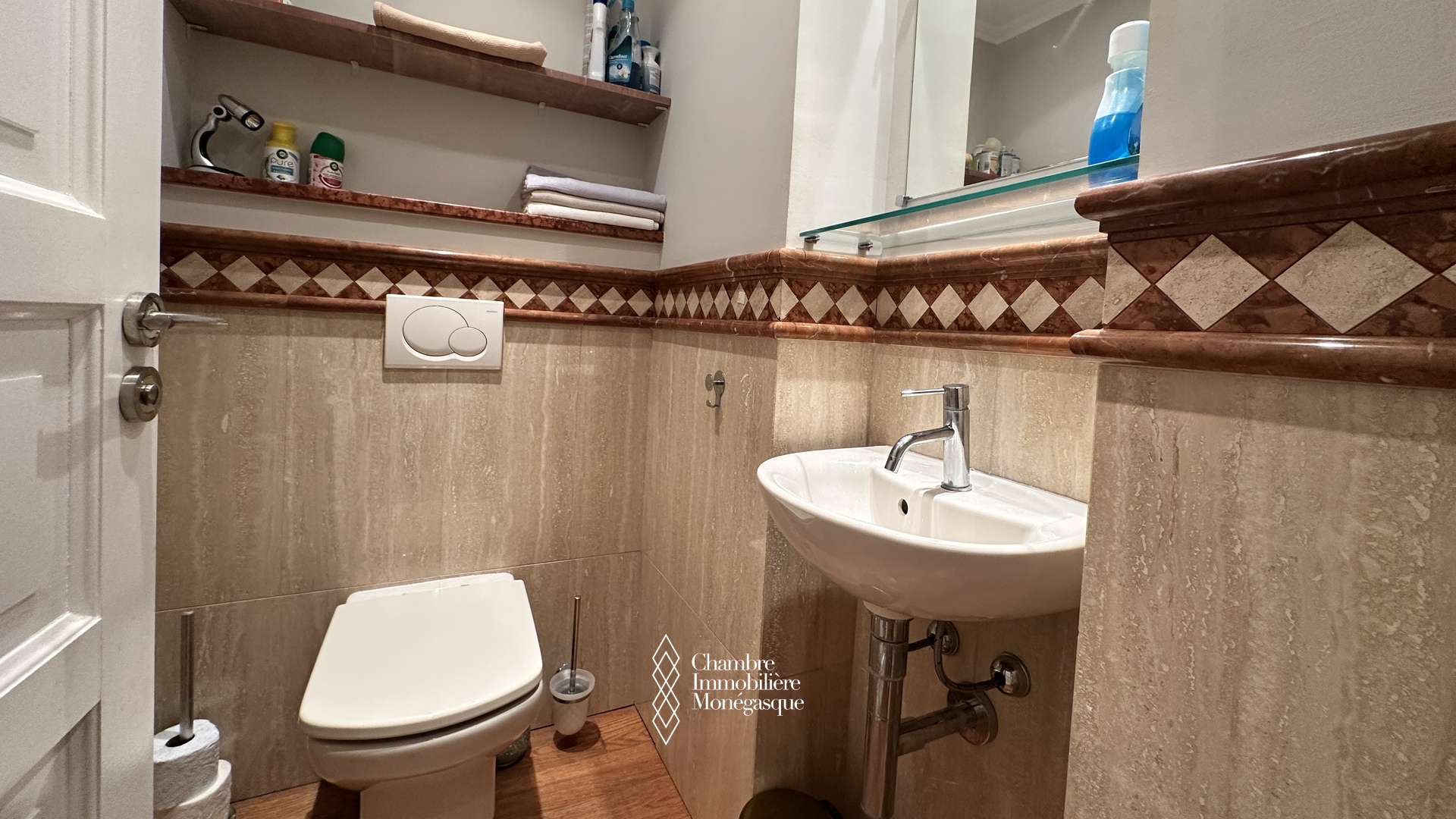 The Monte Carlo Sun is located on the Boulevard du Larvotto, next to the International School of Monaco. 7/24-hour concierge service, garden, swimming pool, visitor parking and mixed use are significant assets. The beaches of Larvotto, the Monte Carlo Beach, the Country Club, or the Monte Carlo Bay Hotel and even a police station surround the building. Supermarket, pharmacy, post office and public transport are accessible in a few minutes on foot, via the secondary exit located on the Boulevard d'Italie.