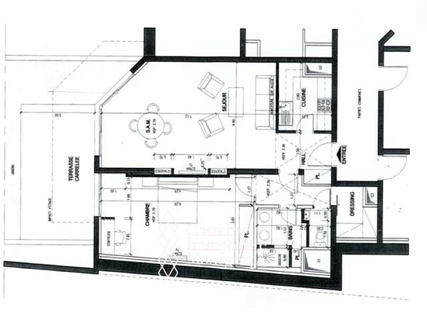 Apartment with 2 main rooms composed of an entrance with cupboards, a spacious living room, an independent kitchen, a large bedroom with cupboards, a shower room, a toilet, a hallway with dressing room, as well as a private garden in front of the living room and bedroom. On the second floor of building A, a cellar bearing the number C.A208. In the third basement of the ramp, a car park bearing the number P.342.