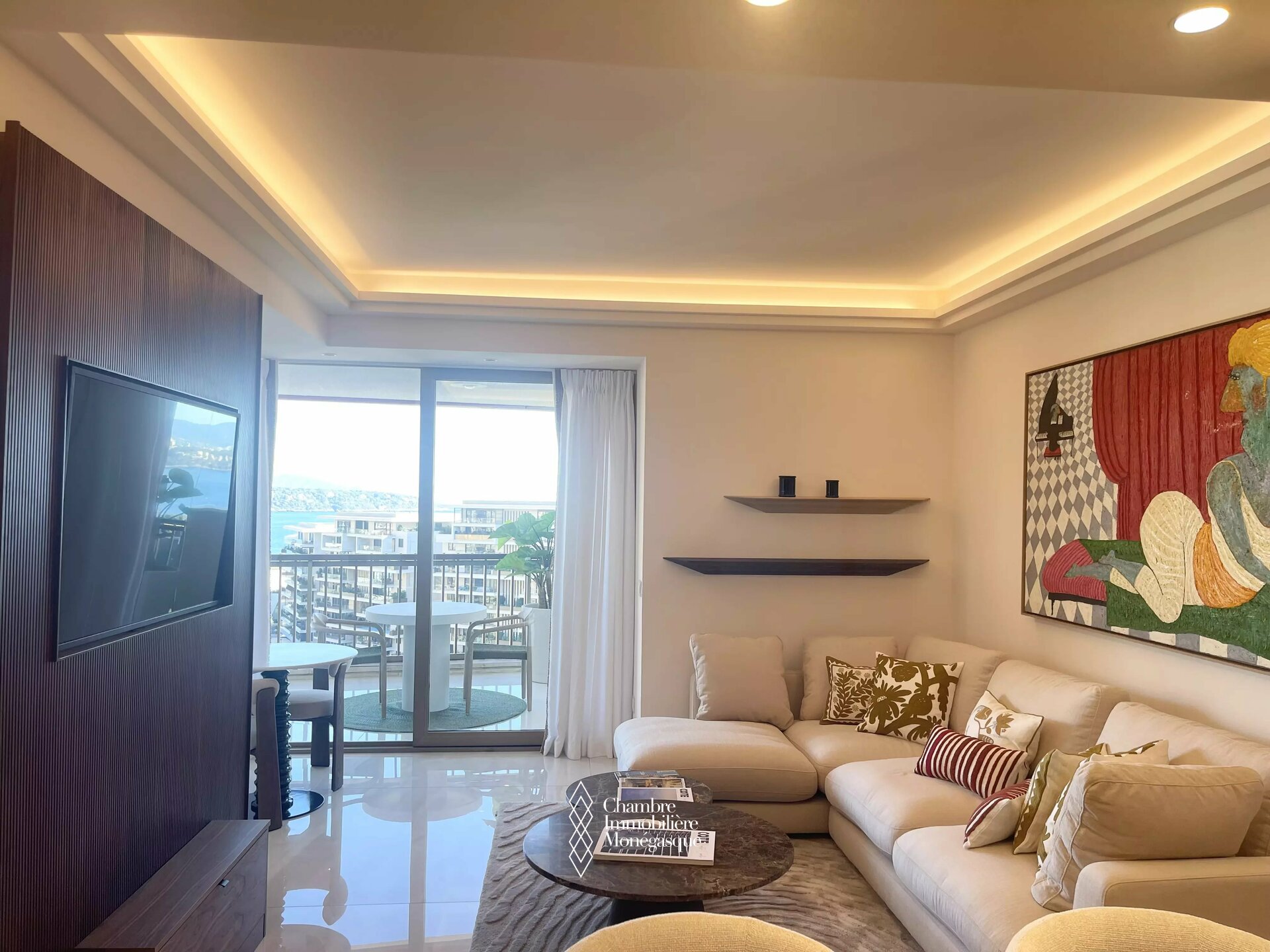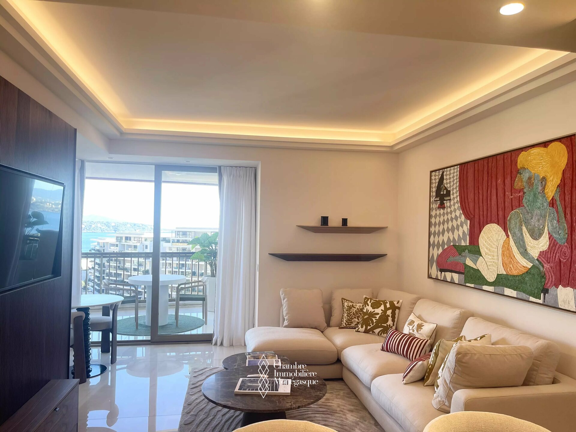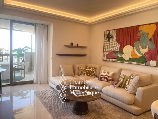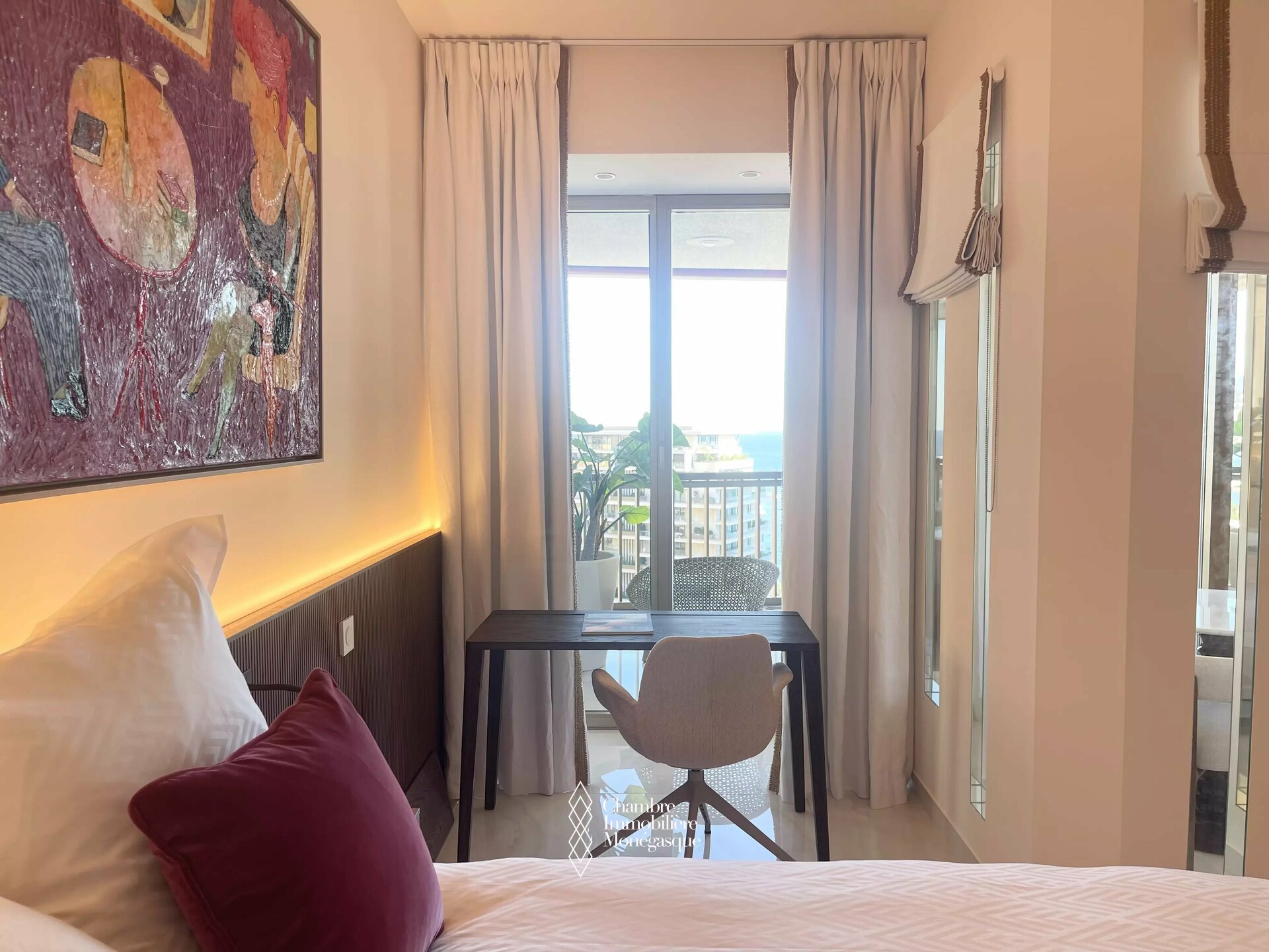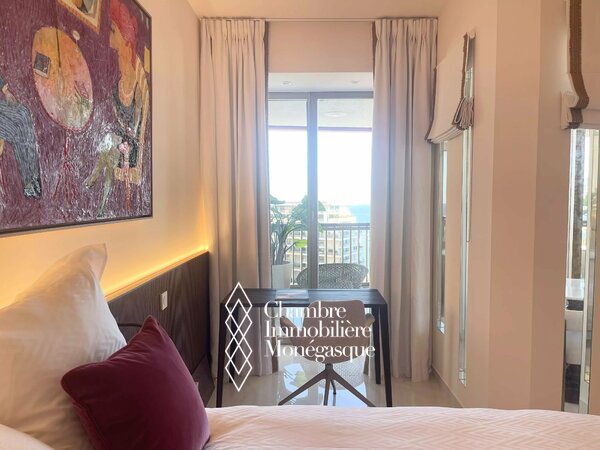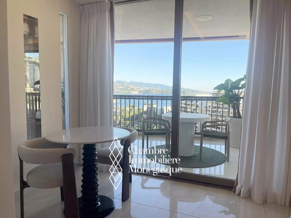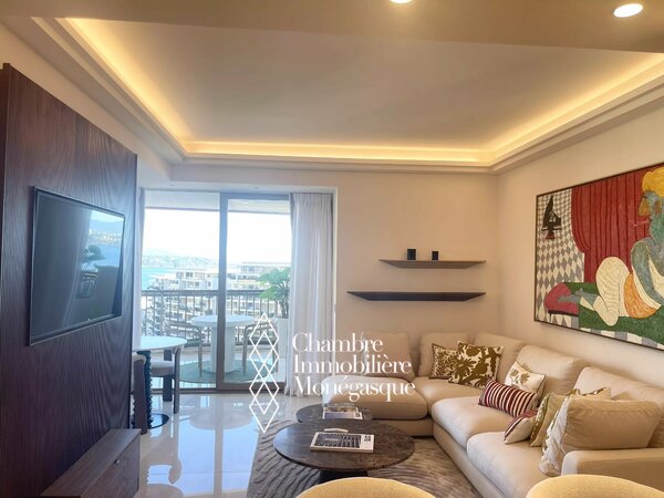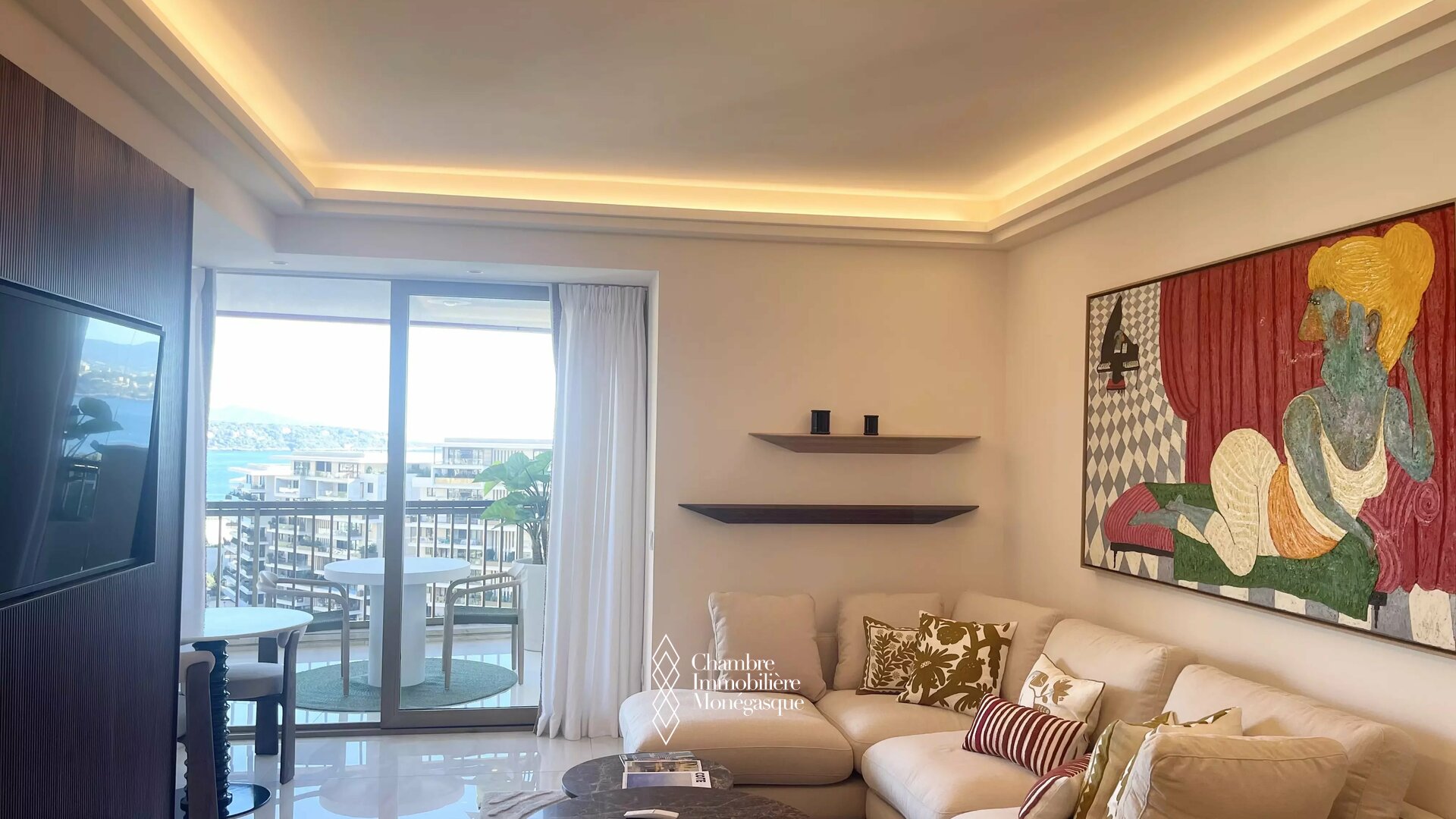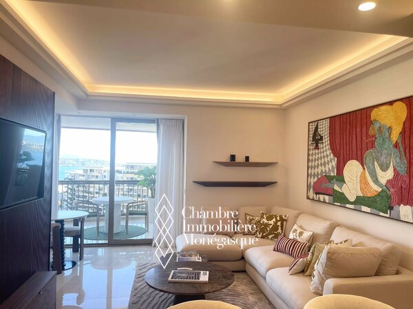 This magnificent apartment is located in the highly sought-after luxury residence "Le Mirabeau", in the heart of the Carré d'Or. The apartment has just undergone a luxurious renovation and has been fully furnished, to transform it into a move-in-ready, turnkey property. The property features a bright and elegant living room with an open plan kitchen, with integrated seating area, as well as a dining area. The main bedroom comes equipped with a TV and desk area. Both the living room and bedroom have access to a beautiful terrace, which offers panoramic views over the sea, Larvotto Beach and the Cap Martin. The property also features a walk-in dressing area and a primary bathroom with marble finishes. Parking in the building is available, at an additional cost.