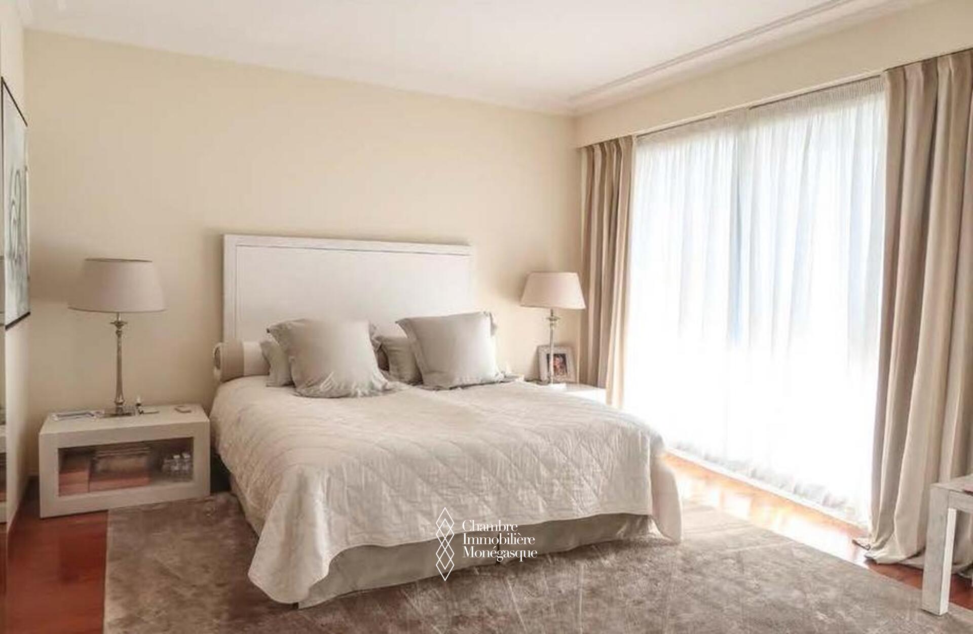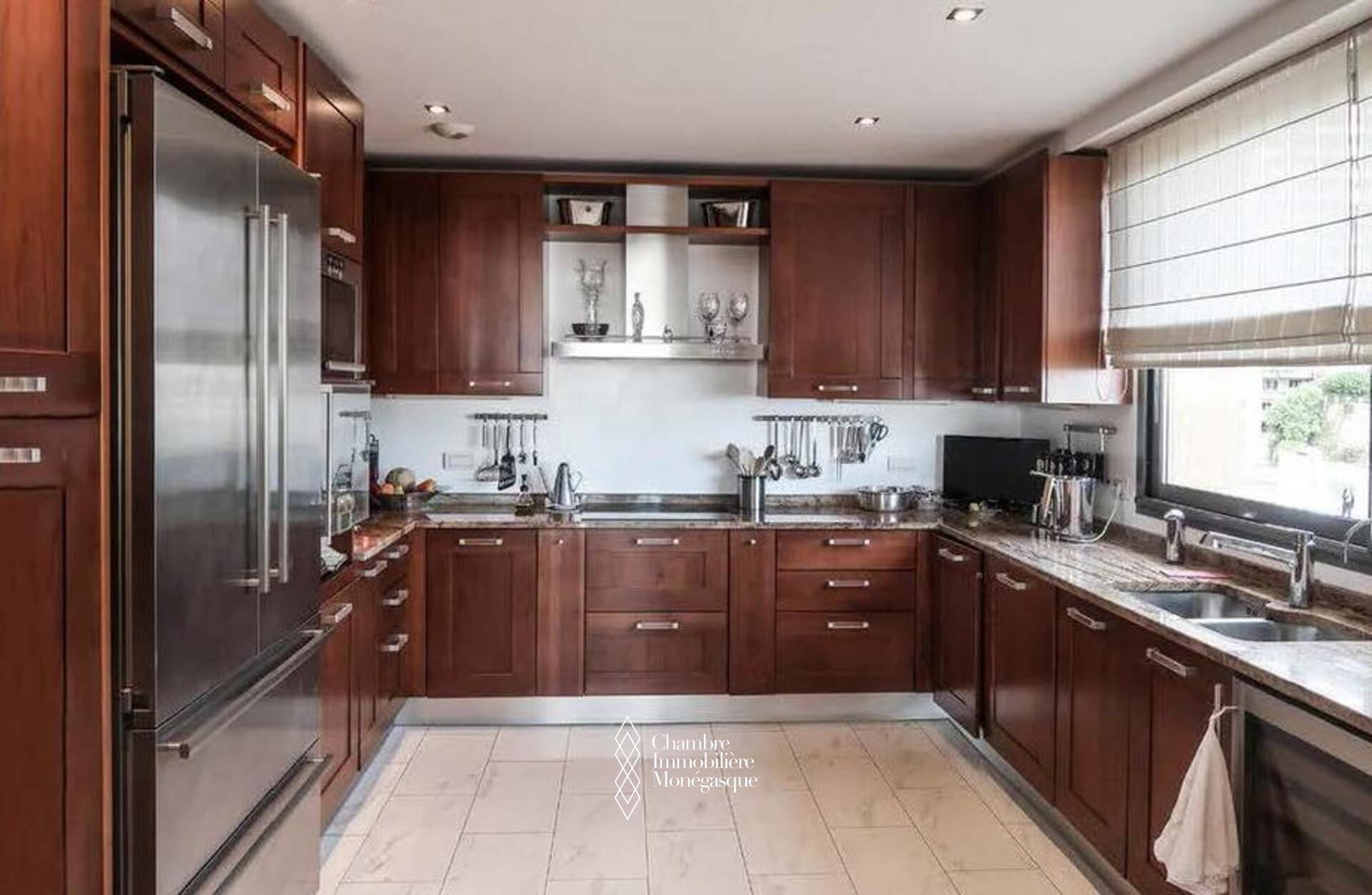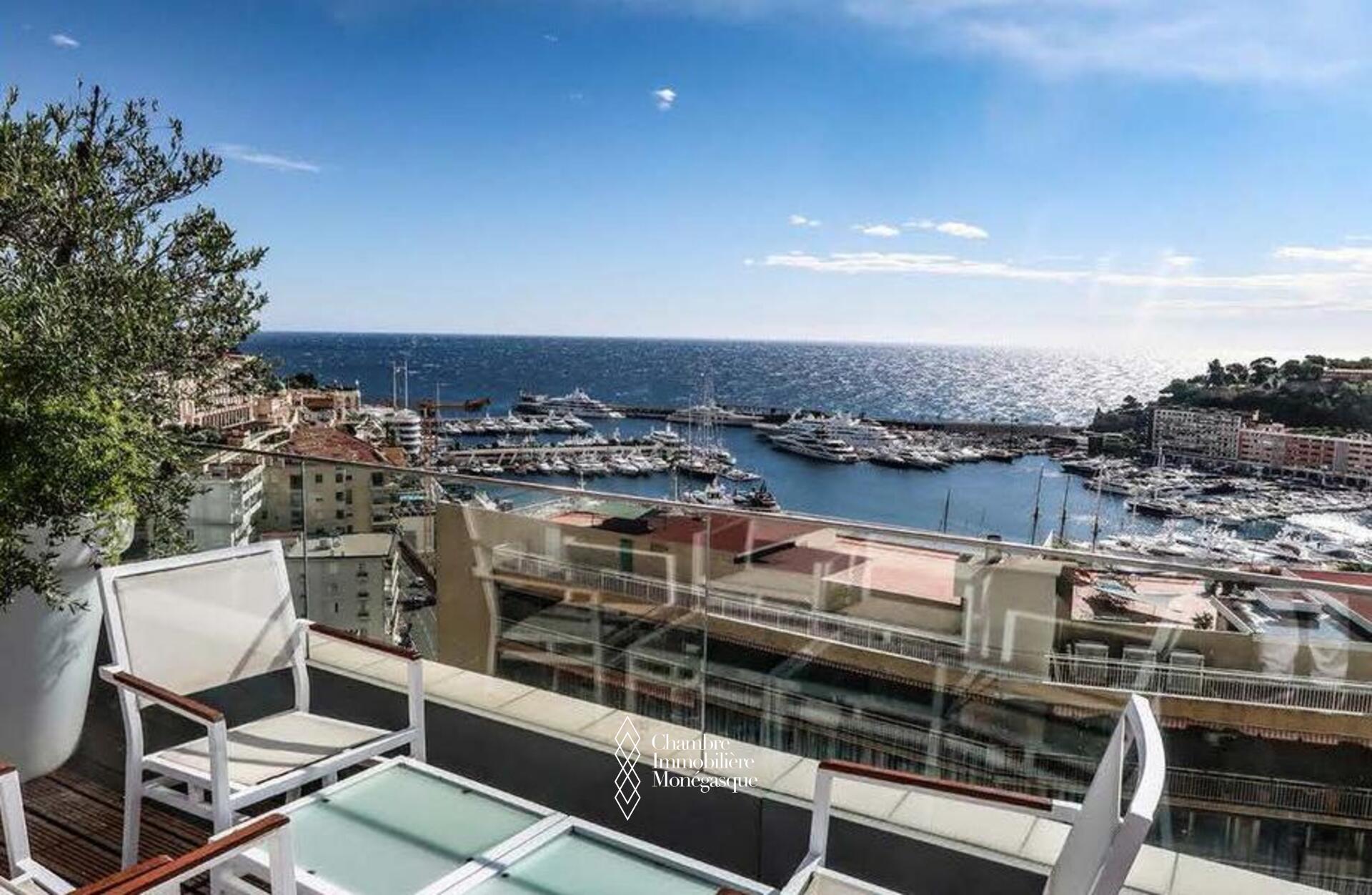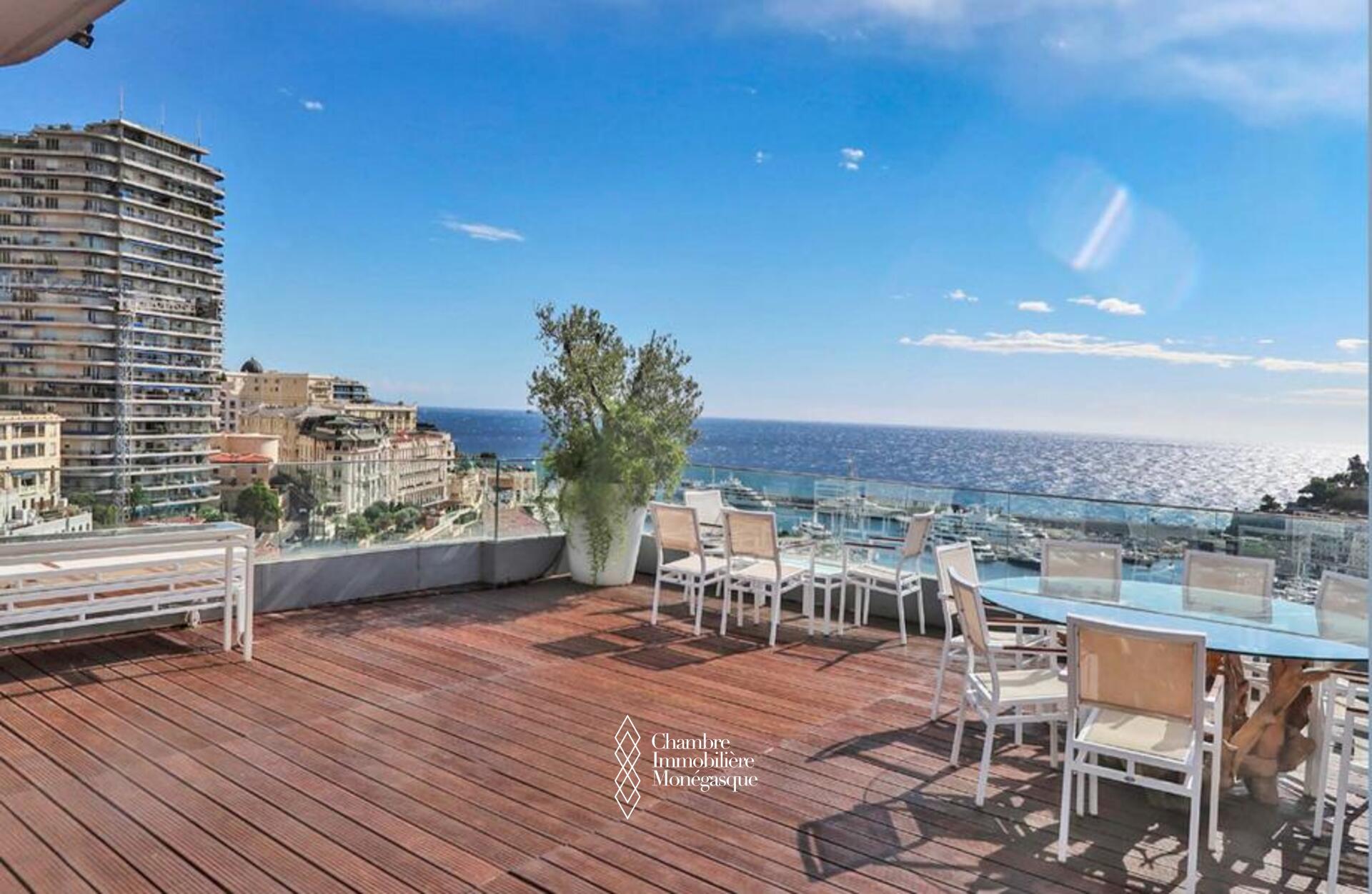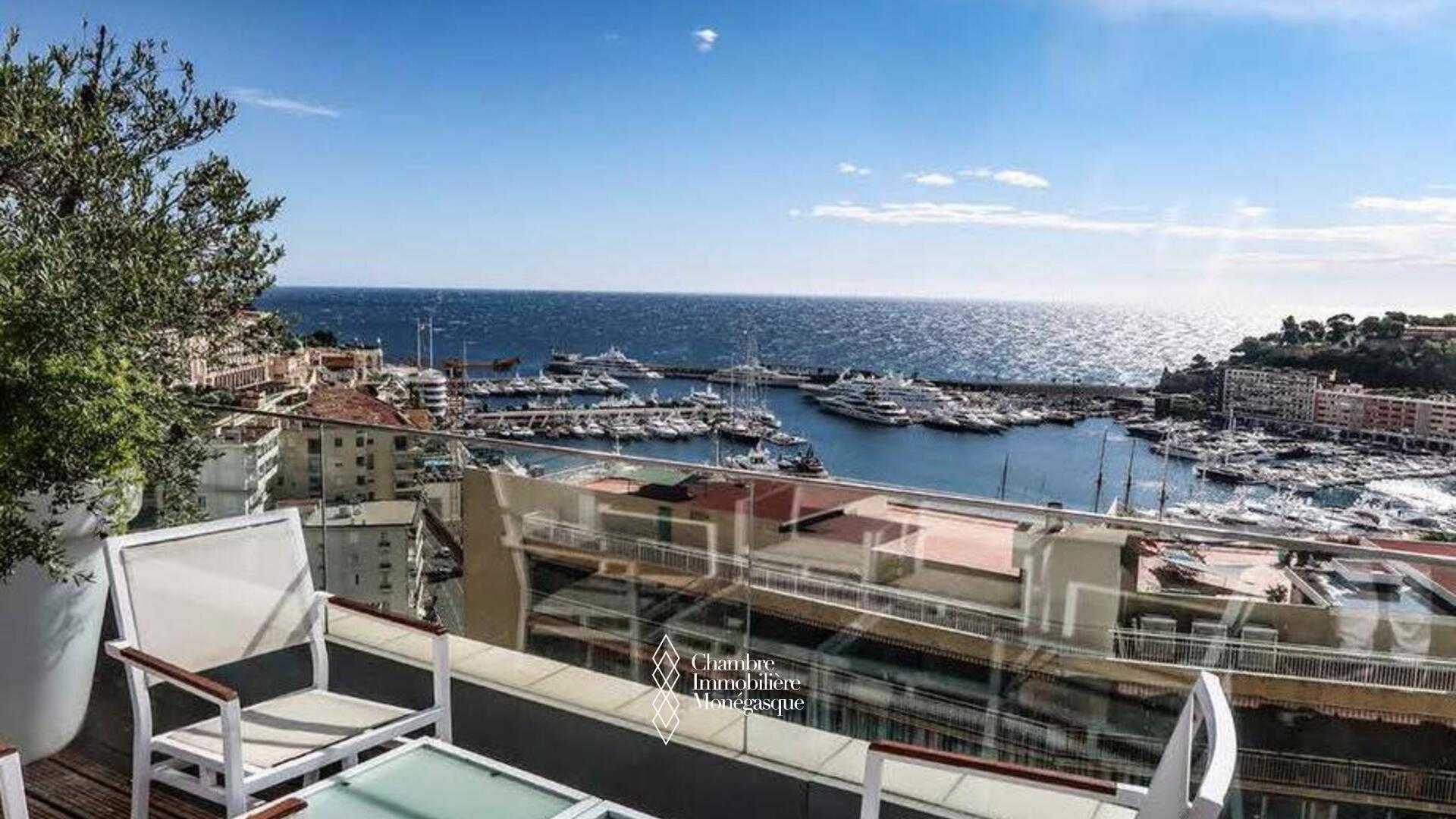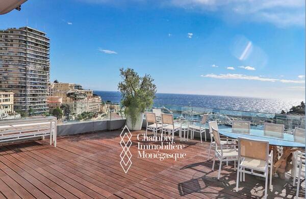 This exceptional property spreads over 3 levels and overlooks the Port, while offering breathtaking panoramic views towards the sea, the Formula 1 track. the apartment is composed of a large reception room, independant fully equiped kitchen, guest toilet, 5 bedrooms with 3 bathrooms. The roof terrace is composed of a living area, barbecue and jacuzzi. 3 large parkings