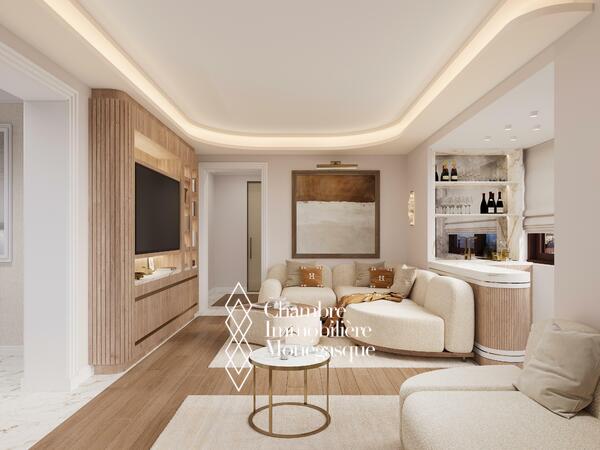 In the heart of Monte-Carlo, in the Riviera Palace residence, this 4-room apartment offers a unique living environment. Completely renovated with noble materials and meticulous finishes, it seduces with its contemporary elegance and generous volumes.