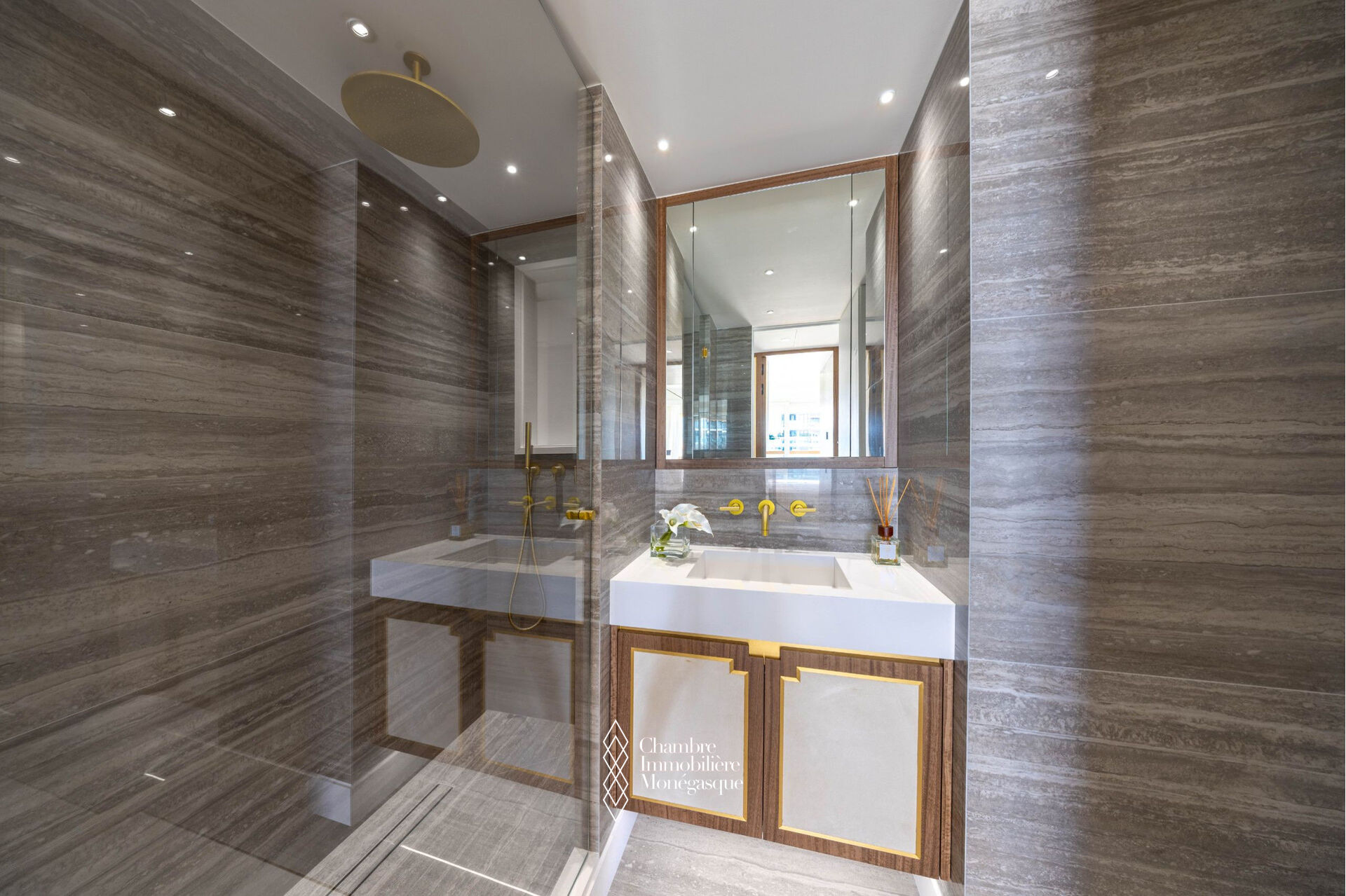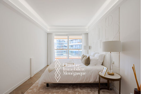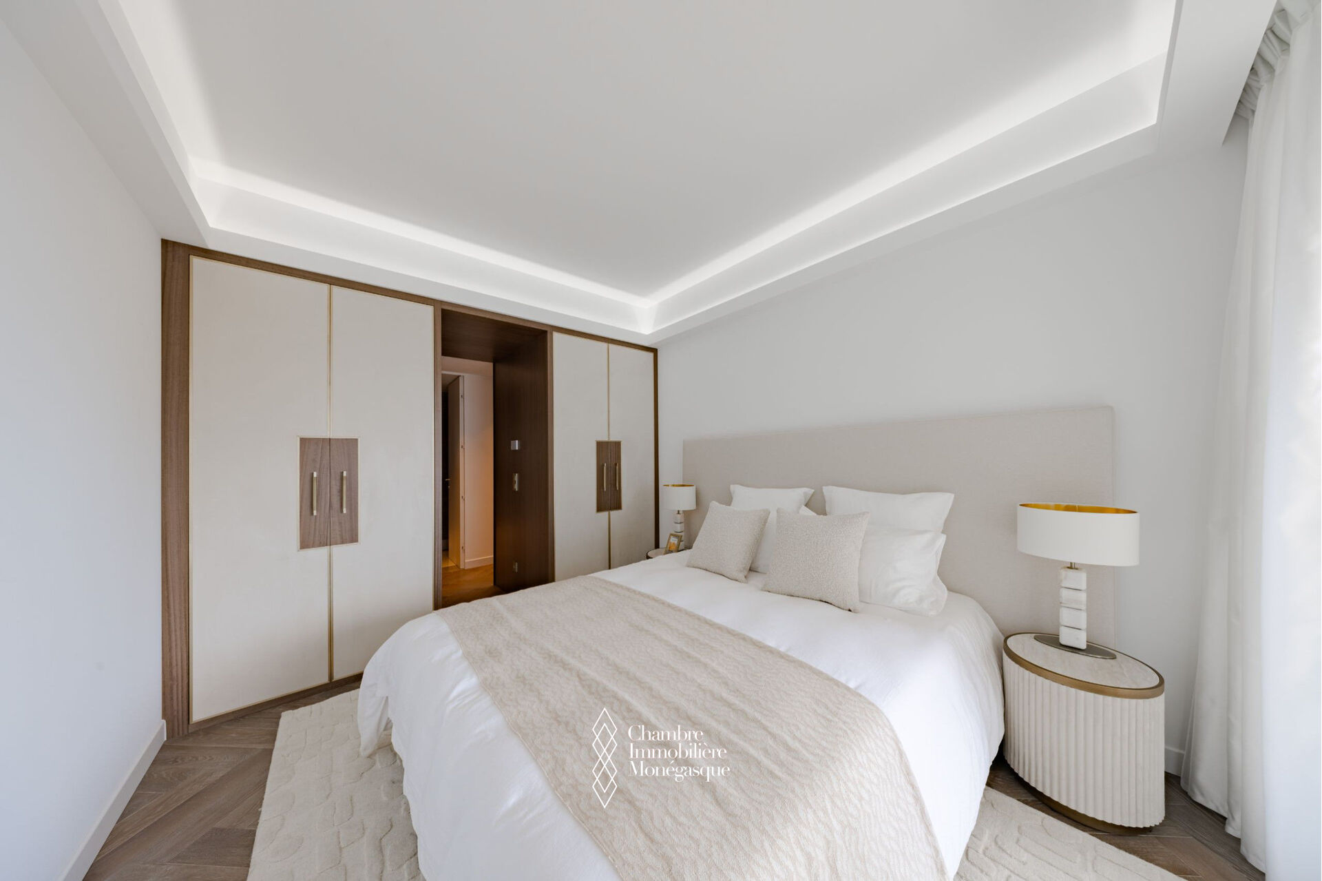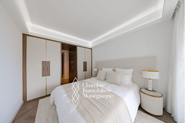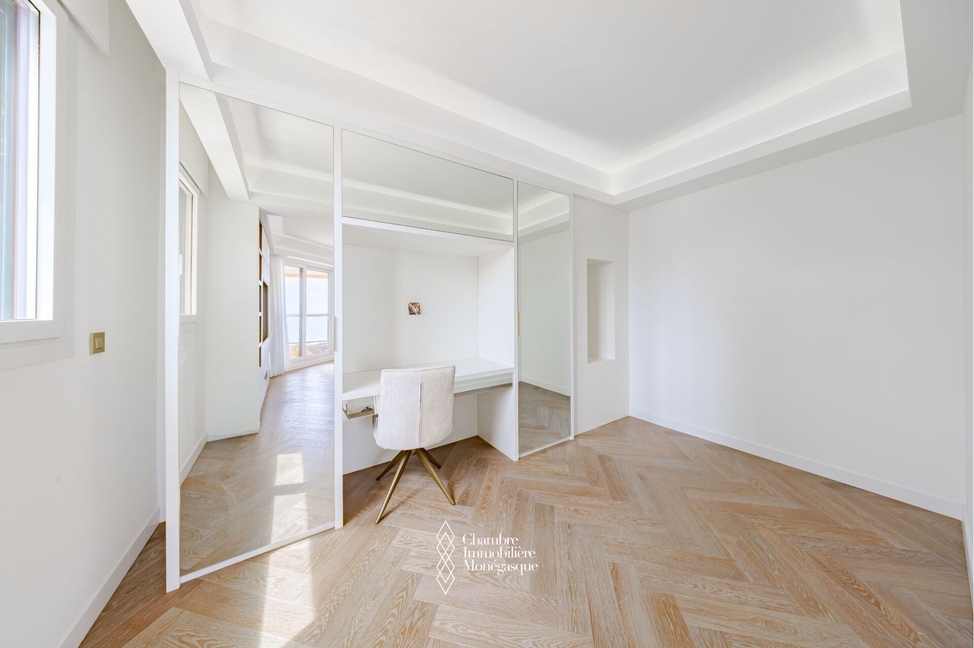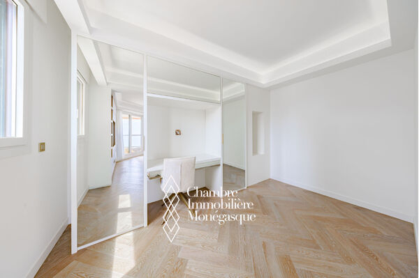 Beautiful fully renovated 3/4-room apartment in the Monte Carlo Sun residence. This apartment includes two bedrooms, each with its own en-suite bathroom, an office that can be converted into a bedroom, a fully equipped separate kitchen, a living room with a dining area, and a guest toilet. 1 parking space Monthly rent €29,500 + charges