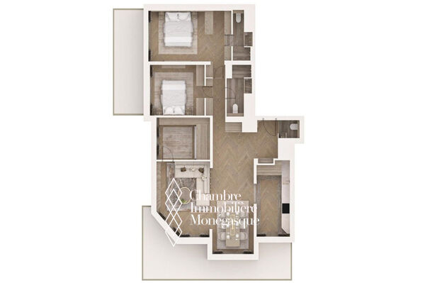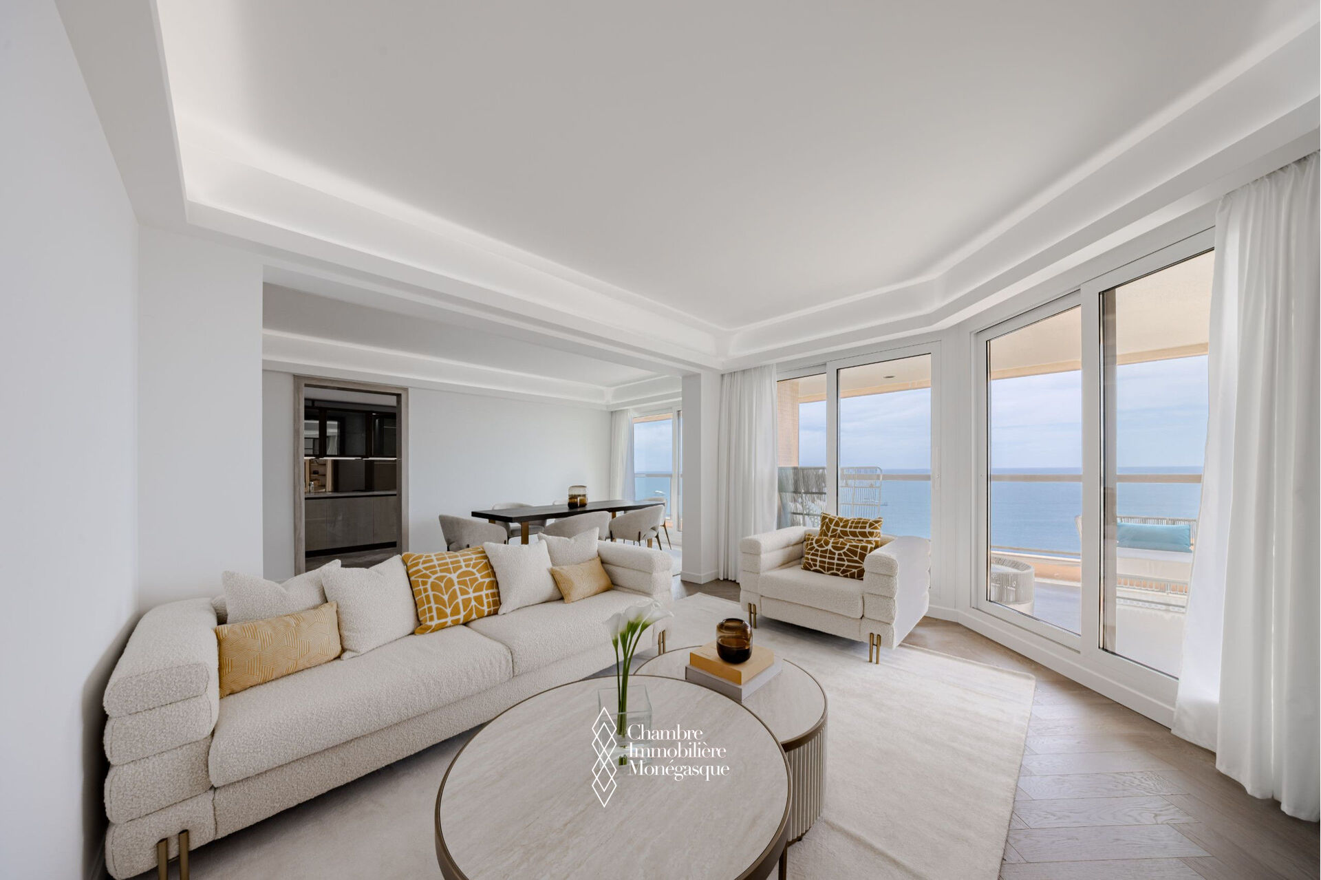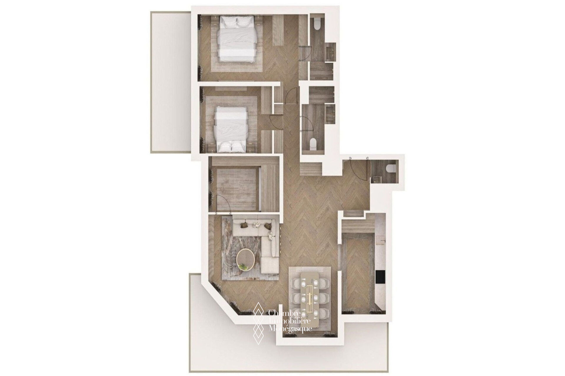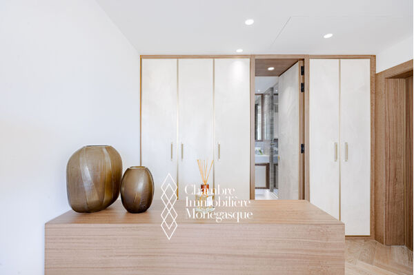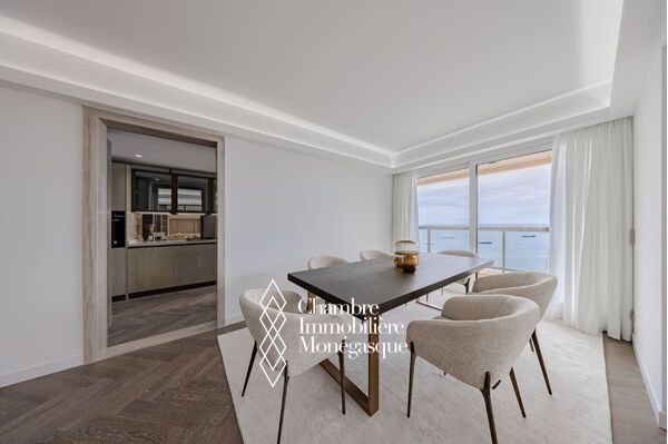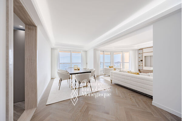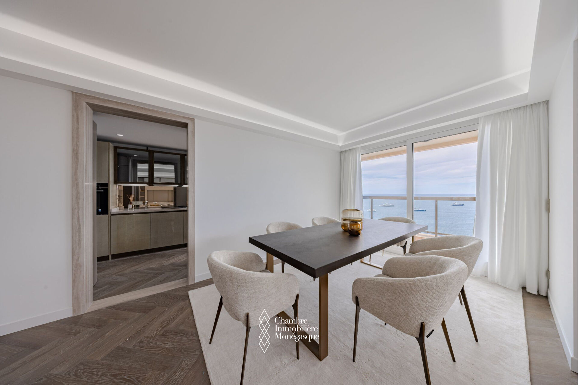 Beautiful fully renovated 3/4-room apartment in the Monte Carlo Sun residence. This apartment includes two bedrooms, each with its own en-suite bathroom, an office that can be converted into a bedroom, a fully equipped separate kitchen, a living room with a dining area, and a guest toilet. 1 parking space Monthly rent €29,500 + charges
