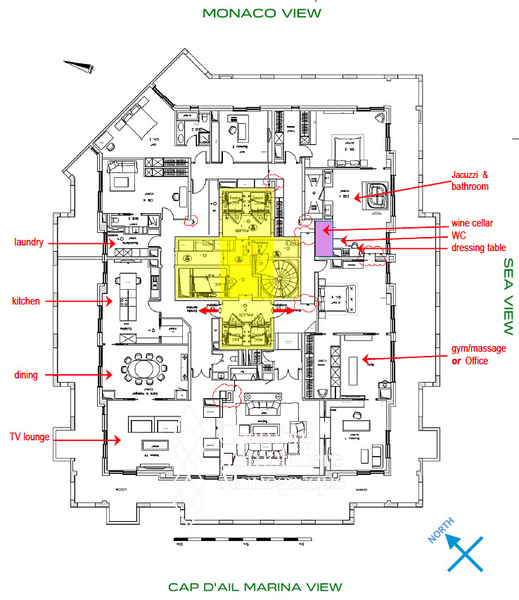 This magnificent property on a whole floor with a total surface area of 700 sqm, including 200 sqm of terraces/loggias, benefits from a very nice sun exposure and a splendid sea view, overlooking the port of Cap d'Ail.