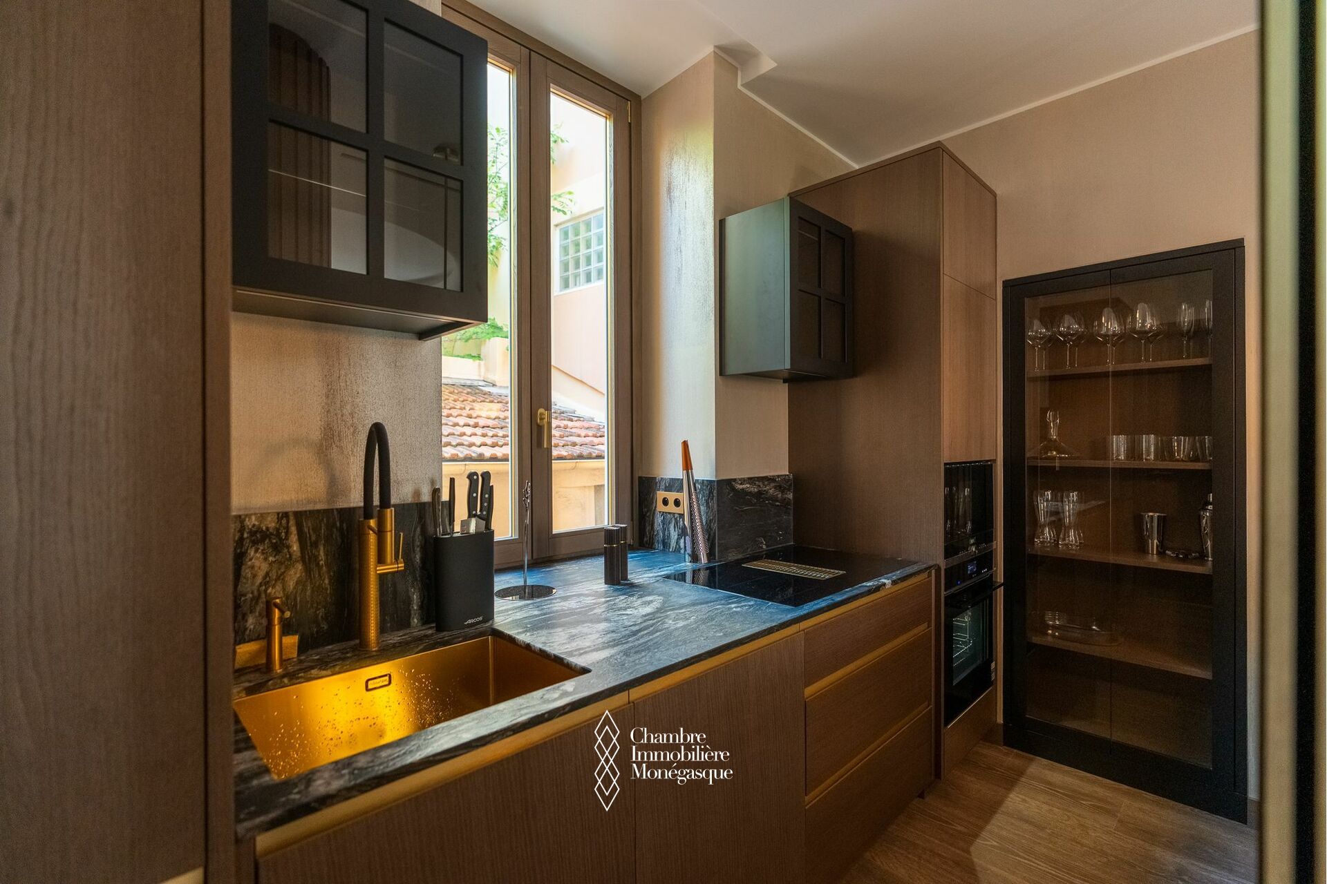 The flat has been recently renovated with high-quality materials. It comprises an entrance hall, living room, fully equipped kitchen, one bedroom with en-suite bathroom and guest toilet.