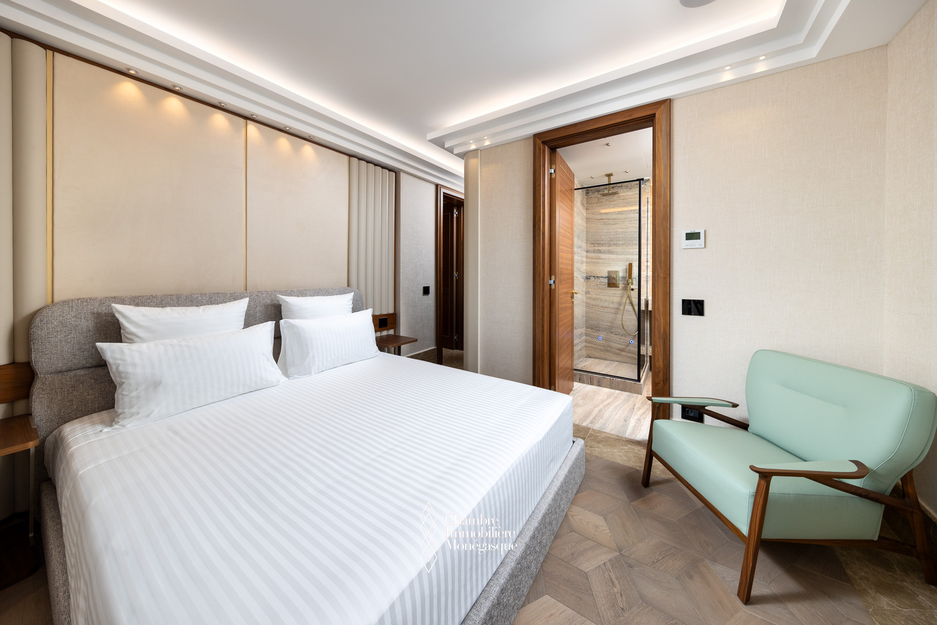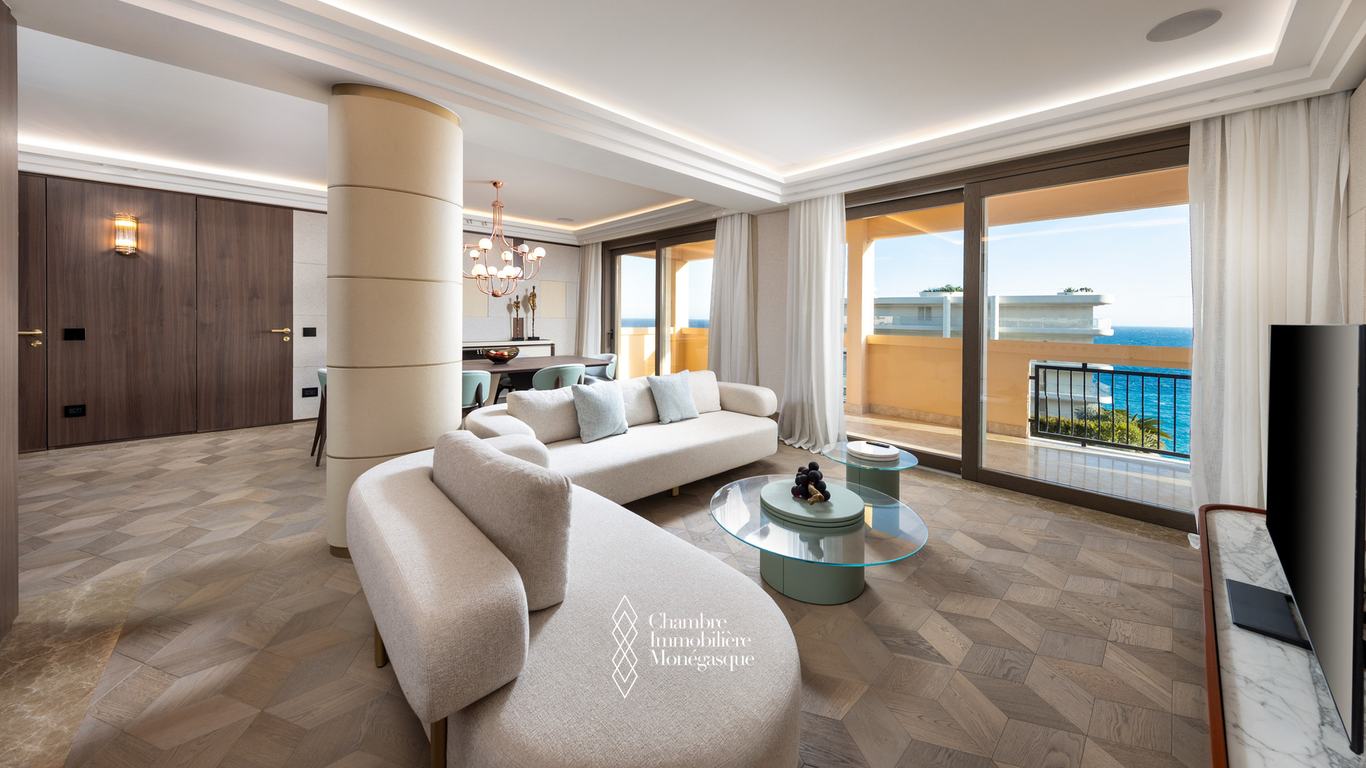 Located on the fifth floor of the Calypso building, this magnificent apartment has been renovated and furnished to an exceptional standard.