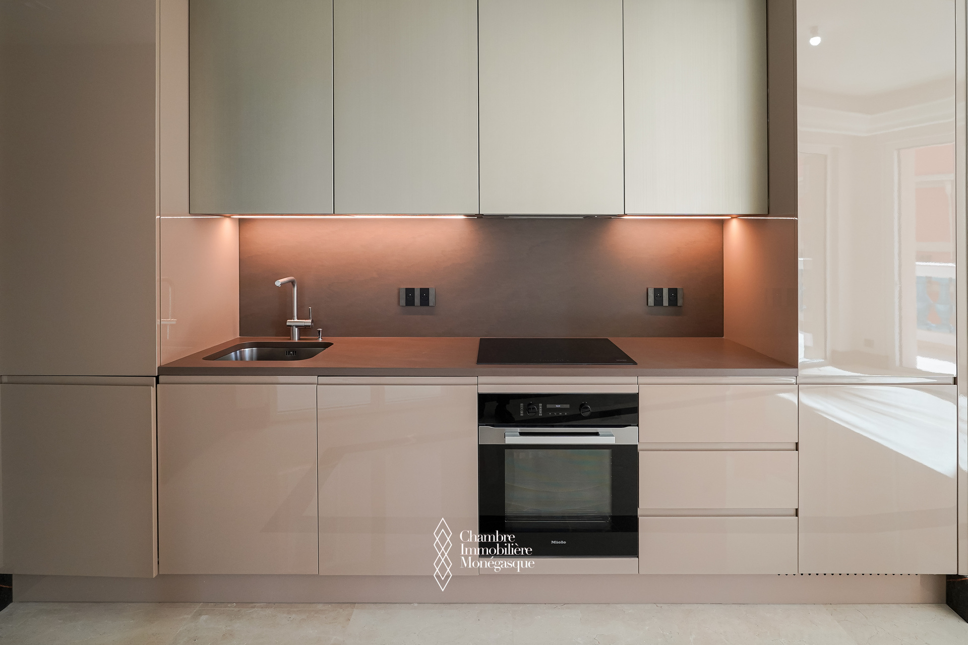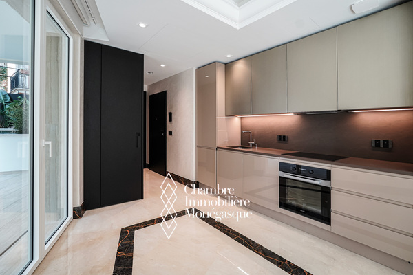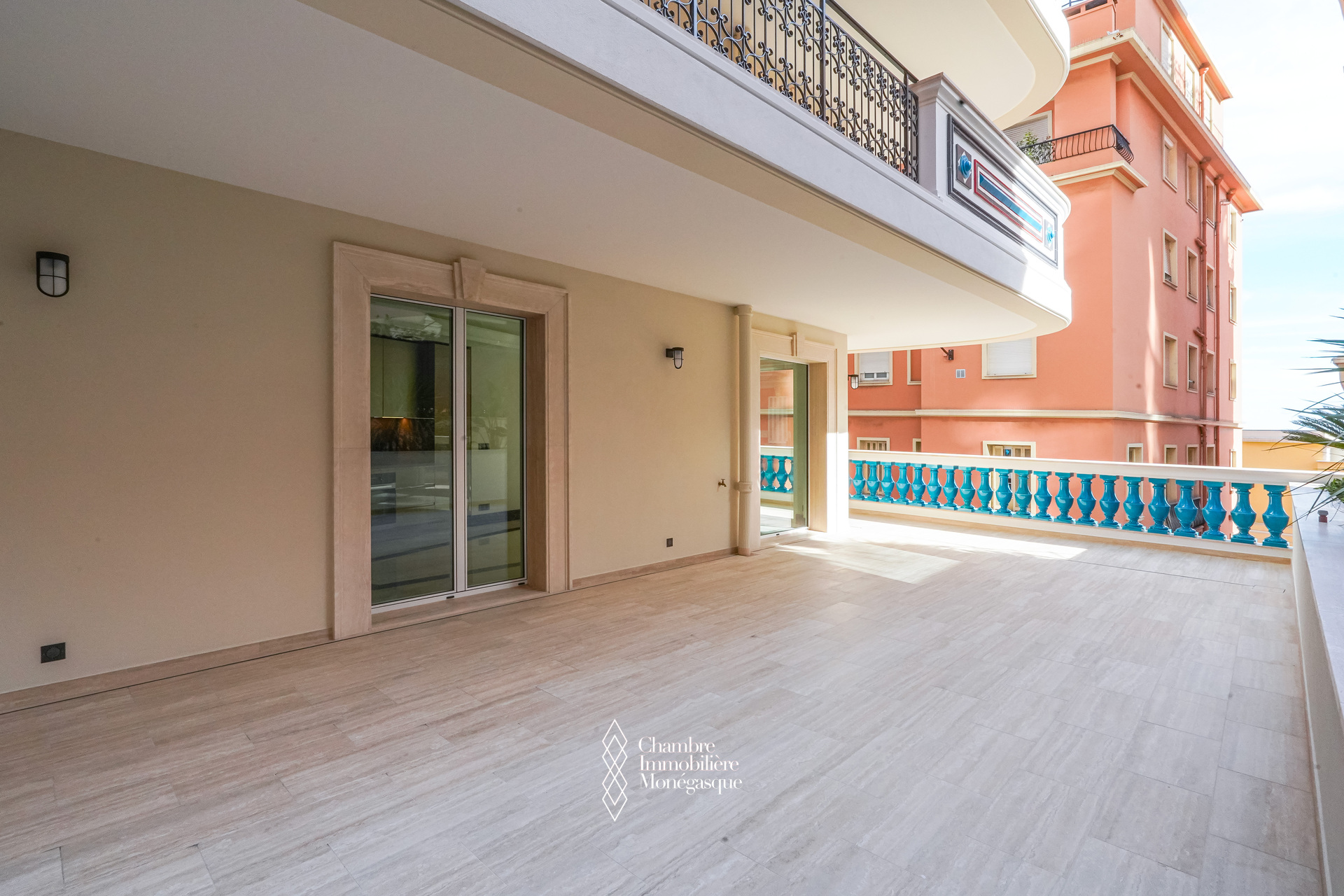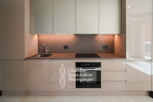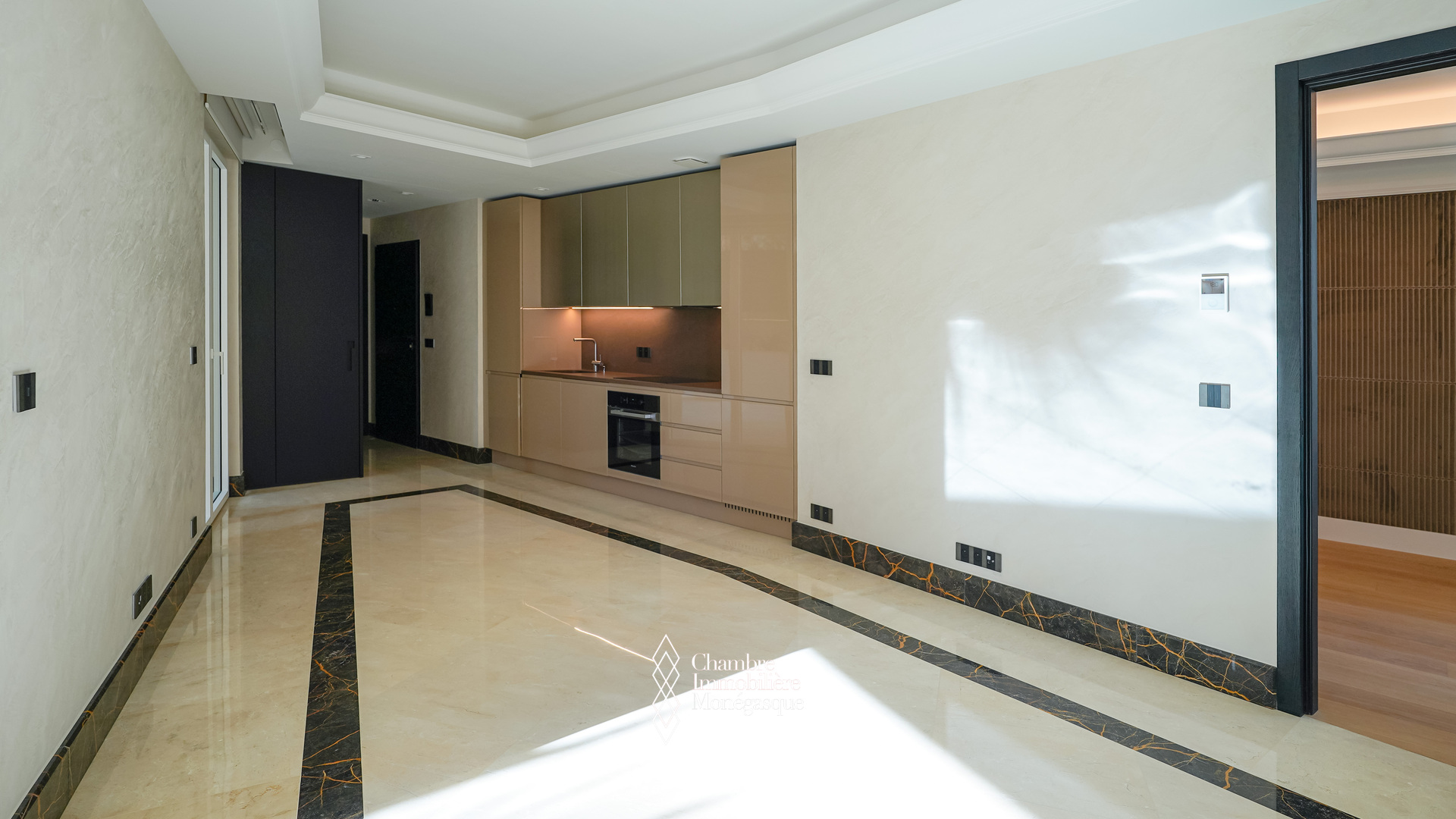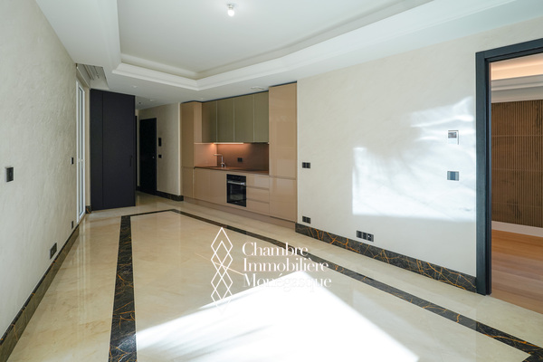 New luxury residence in Monaco, just delivered. Two-room apartment, never lived in, with parking and large terrace in a quiet environment.