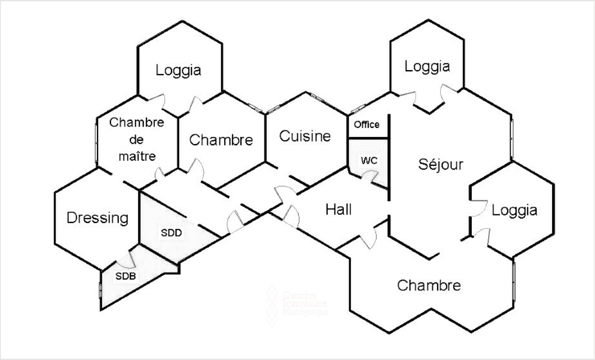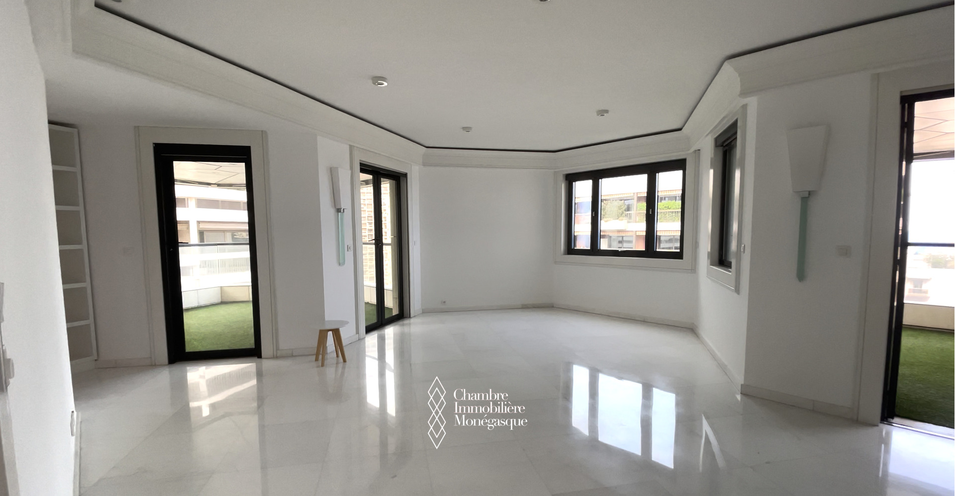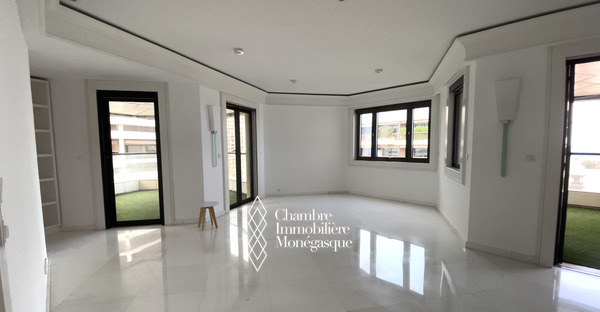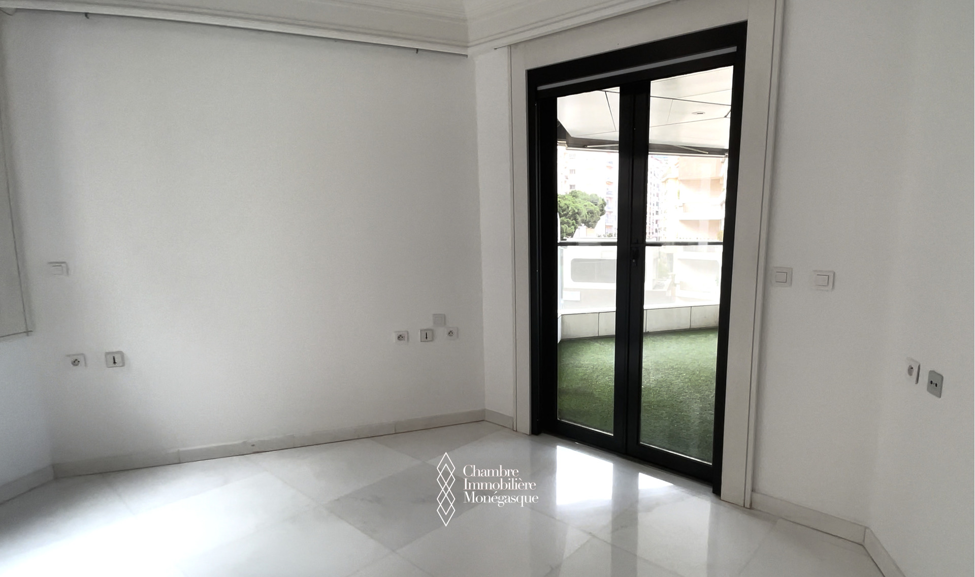 In the centre of Monaco, elegant apartment that could either be used as a spacious 4-bedroom family home, with en-suite bathrooms or a dream regal residence, with a large master bedroom with bathroom, a full size designer shoe closet, a walk-in wardrobe/dressing room, a double sized office, a living/dining room with sea views and a good sized kitchen. The apartment has bright and spacious balconies.