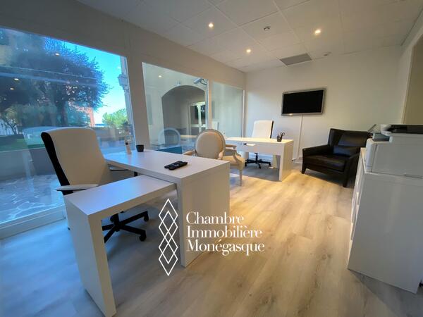 Renovated office with big display windows in the Titien building, in the residential area of Fontvieille, near the port.