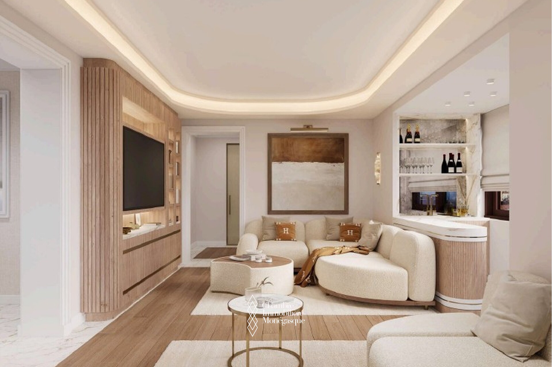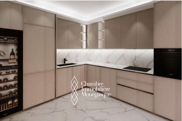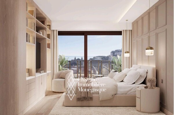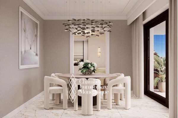 In the heart of Monte-Carlo, this sumptuous 223 m² apartment has been completely renovated and embodies contemporary elegance enhanced by exceptional Italian materials and a remarkable view of the sea and the Casino.