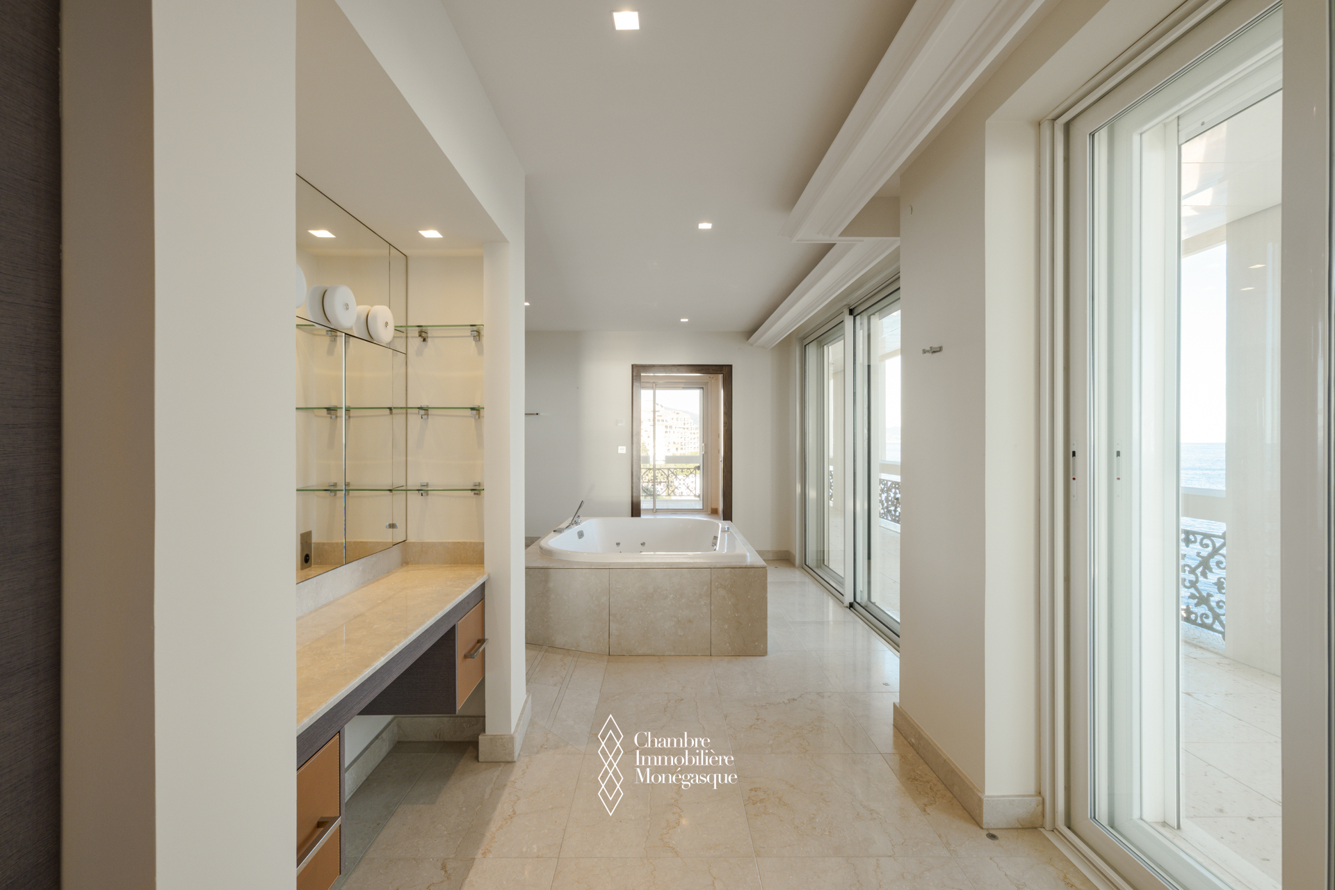 MARVELLOUS LARGE PROPERTY WITH 4 EN-SUITE BEDROOMS, 2 SALONS, LARGE SUN FILLED TERRACES, A GYM AND OFFICE IN THE PEACEFUL NEIGHBOURHOOD OF FONTVIEILLE. RECENTLY FULLY RENOVATED WITH THE FINEST MATERIALS AND FABRICS.  LARGE BEDROOMS AND BATHROOMS, WALK IN CLOSETS AND SPECTACULAR VIEWS, A LARGE FAMILY KITCHEN, FORMAL DINING ROOM AND A VAST LIVING ROOM THAT OVERLOOKS THE COAST LINE.  THE PROPERTY IS VERY PRIVATE AND SECURE, WITH A 24 HOUR CONCIERGE SERVICE, AIR-CONDITIONING, SECURITY CAMERAS, PARKING FOR 8 CARS AND 2 CELLARS.