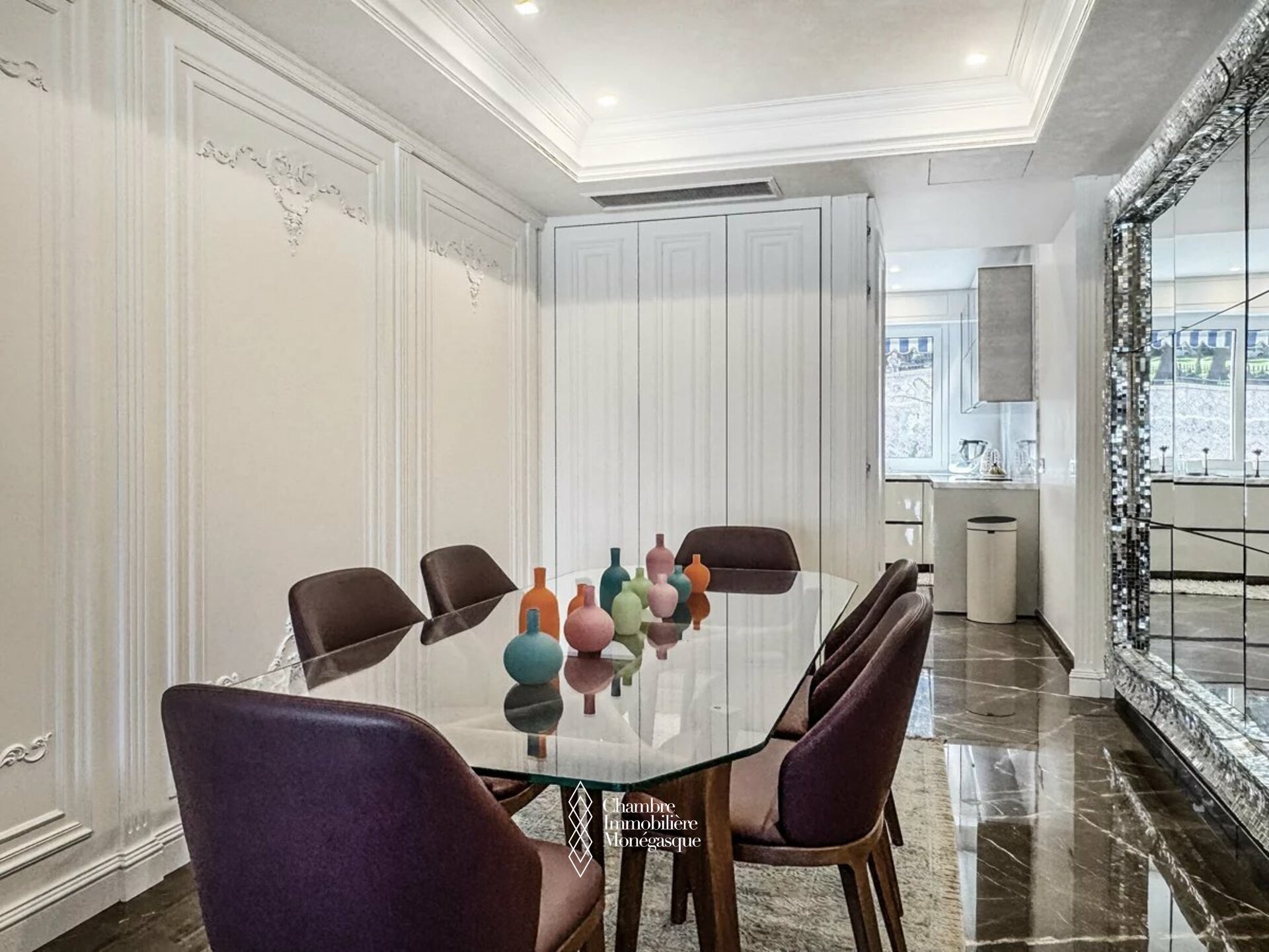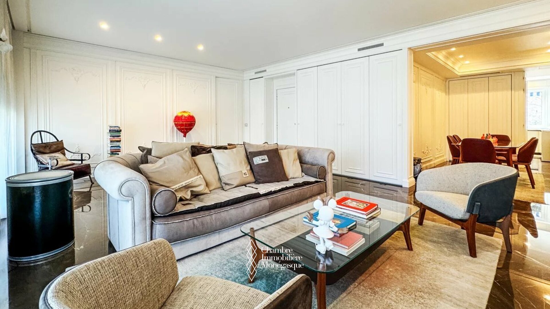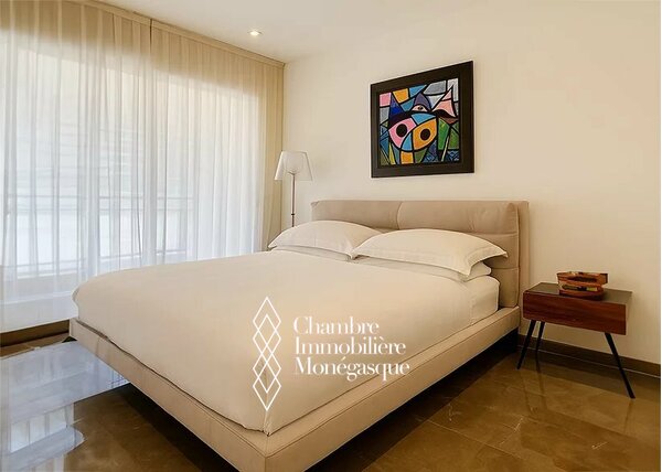 Just a few steps from the legendary Place du Casino and the iconic Café de Paris, this exceptional apartment is located in one of Monaco’s most prestigious addresses. Here, you are not only in the center of refined city life, but also enjoy immediate access to the principality’s most exclusive luxury boutiques and gourmet destinations. The spacious, light-flooded living room with its elegant lounge area forms the heart of the residence and invites you to relax. Adjacent to it, a refined dining room seamlessly connects to the modern, fully equipped kitchen, featuring high-quality appliances and ample storage space. The apartment offers three luxurious bedrooms, each with its own modern en-suite marble bathroom, generous built-in wardrobes, and a stylish walk-in closet. A special highlight are the elaborately designed French wall decorations, reminiscent of the elegance of classic Parisian interiors. Refined with noble materials and recently finished to the highest standards, they lend the entire property a unique character and timeless sophistication. The expansive south-facing terrace enjoys sunshine throughout the day and offers plenty of space for a cozy lounge area as well as an elegant outdoor dining space – the perfect spot to soak in Monaco’s exclusive atmosphere. A rare jewel in the Carré d’Or, combining elegance, comfort, and an unrivaled location – with direct access to the most glamorous district of Monaco. The apartment is sold with a cellar and a parking space within the building and also offers an exclusive 24/7 concierge service.