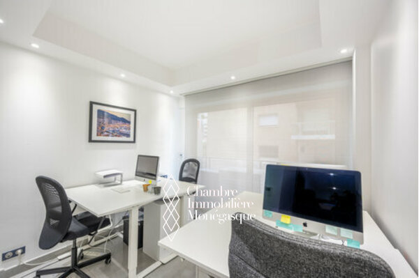 A beautiful 3 room flat for mixed use (living or office), located on the 1st floor (height of a 2nd level) of the building 'Le Petrel', a modern residence with lift, ideally positioned on the only pedestrian street in the Principality.