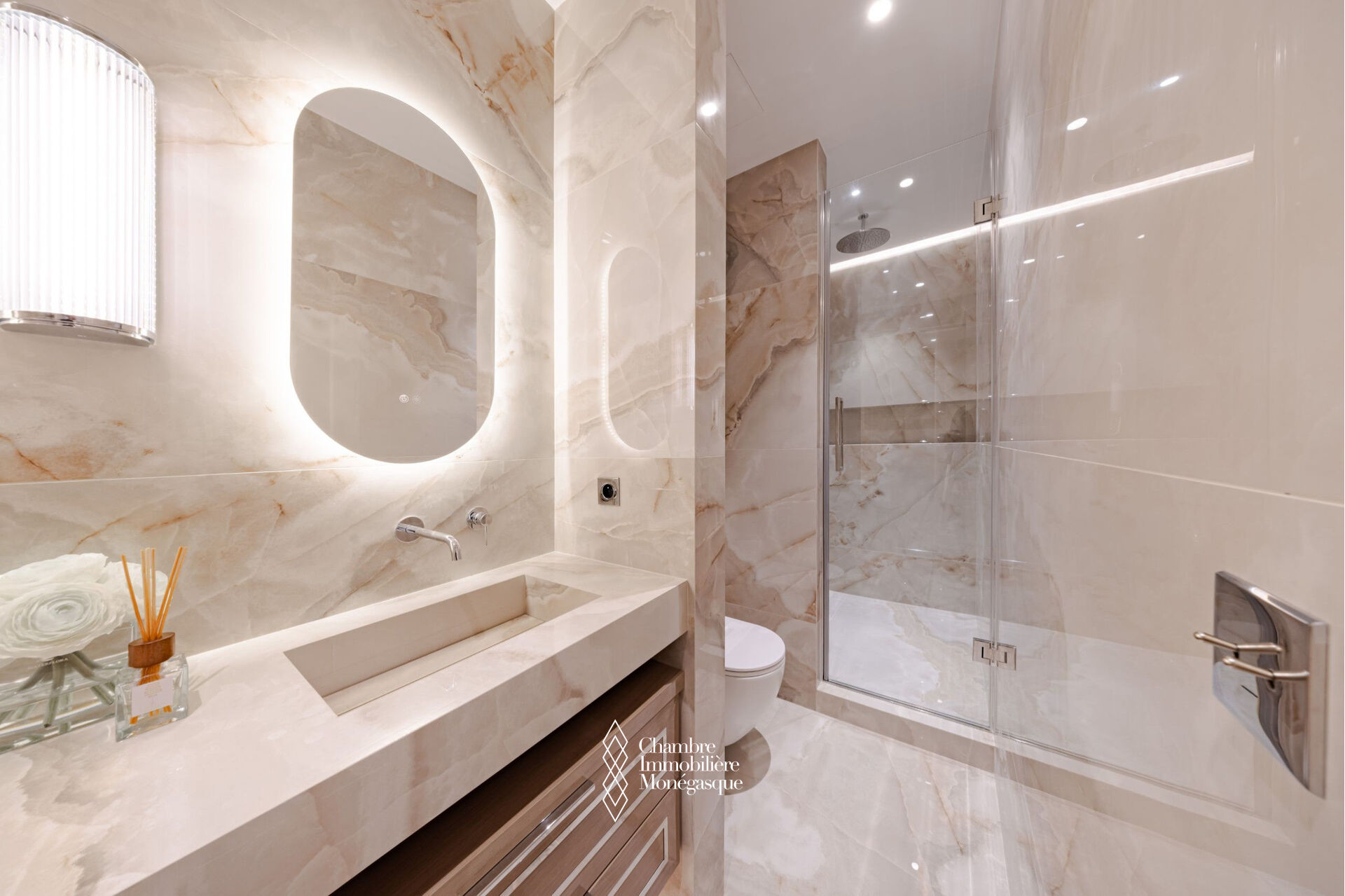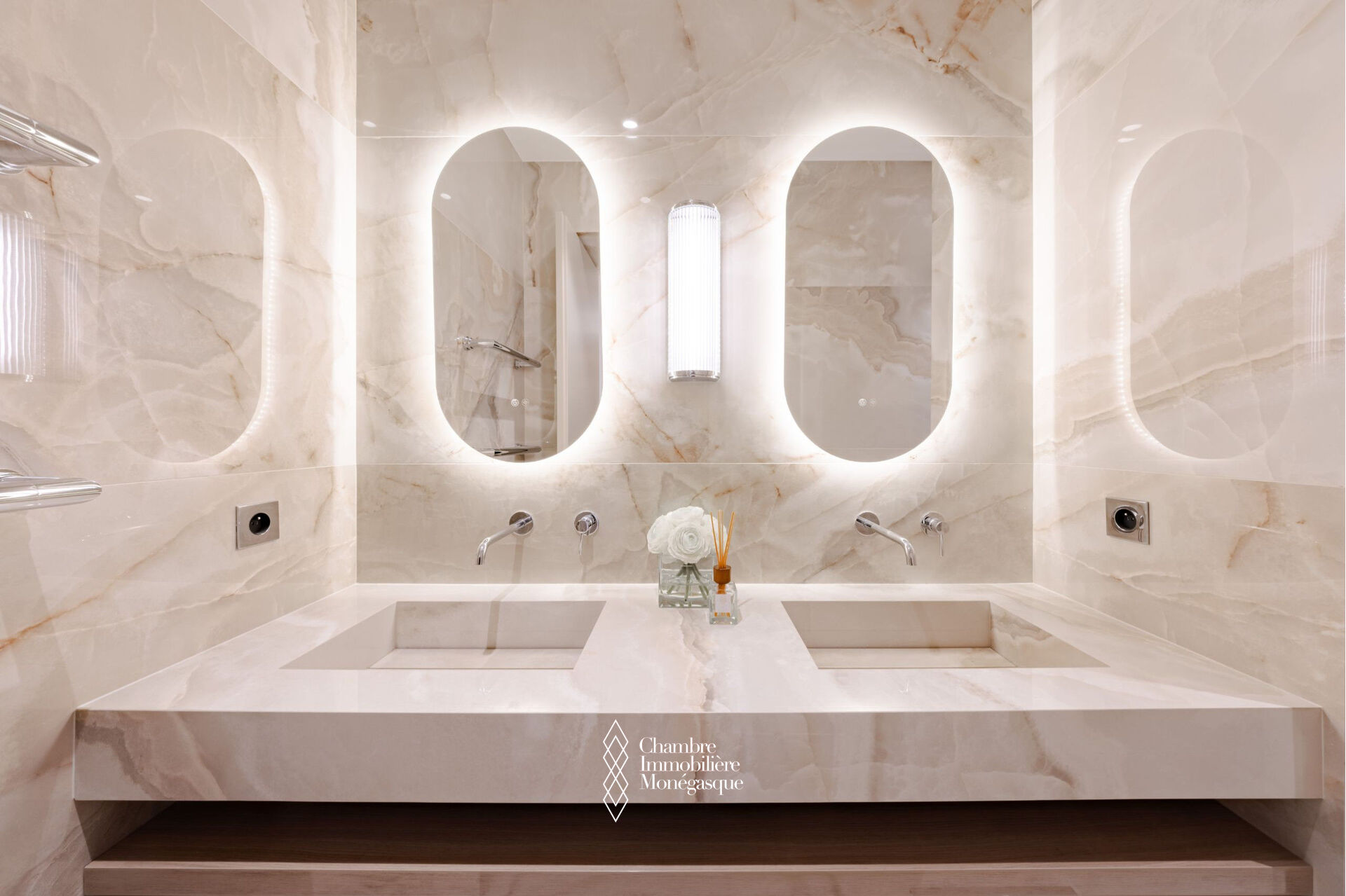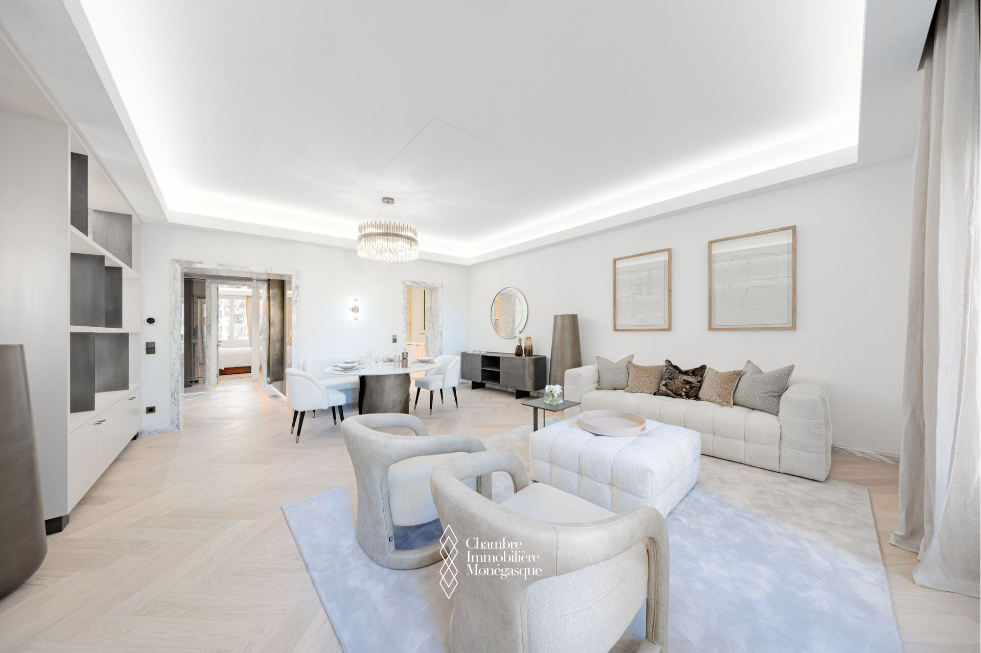 EXCLUSIVE In the heart of the Golden Square, this stunning three-room apartment has been fully renovated with high-end finishes. It consists of two bedrooms, each with its own ensuite shower room, as well as a guest toilet. Additionally, a fully equipped and fitted separate kitchen completes the apartment, along with a bright living/dining room that opens onto a balcony overlooking the Golden Square with a sea view. The apartment also includes a cellar.