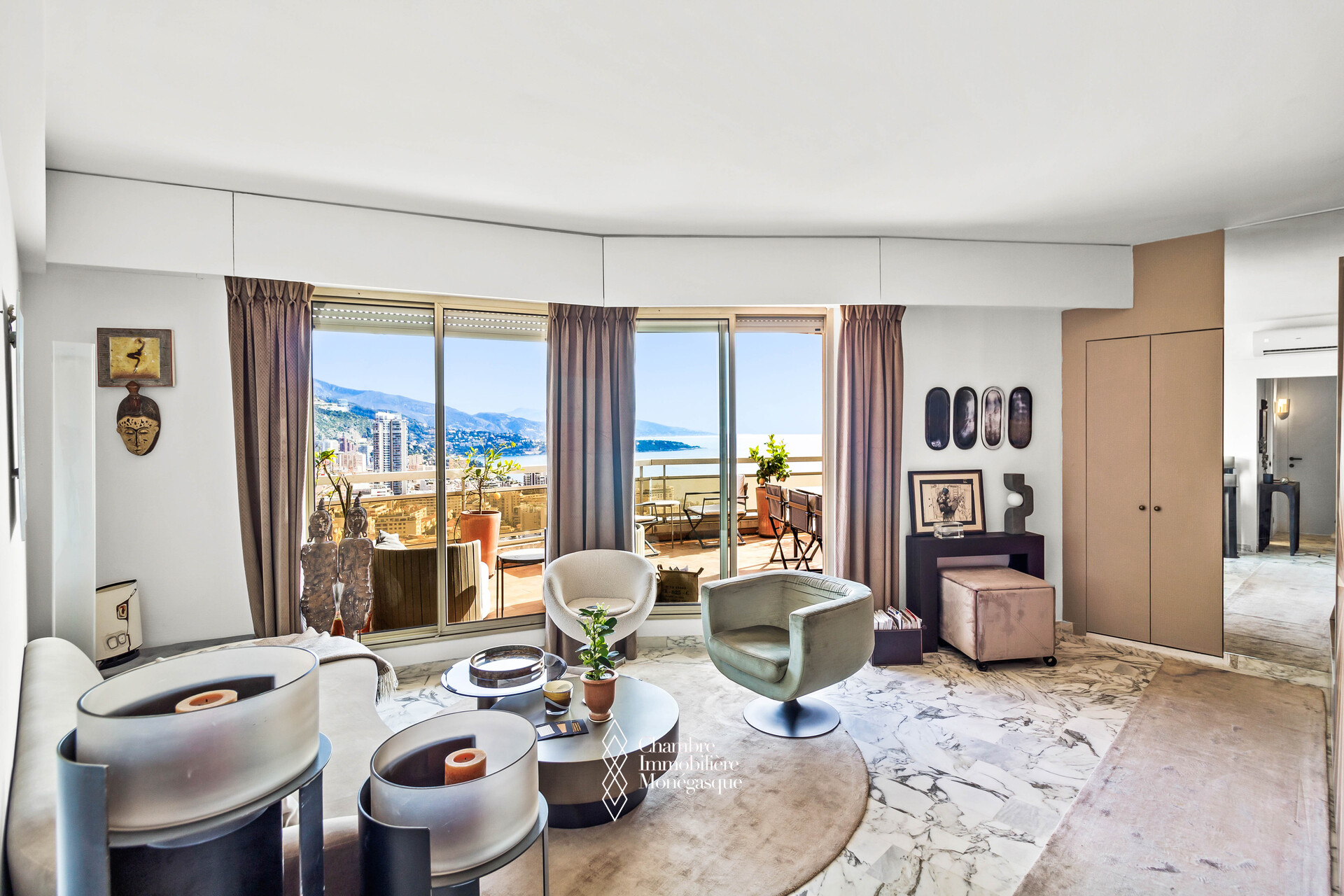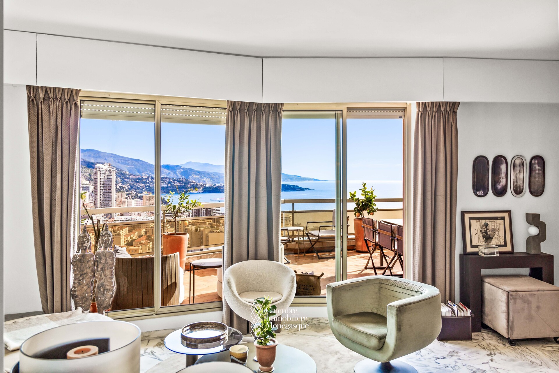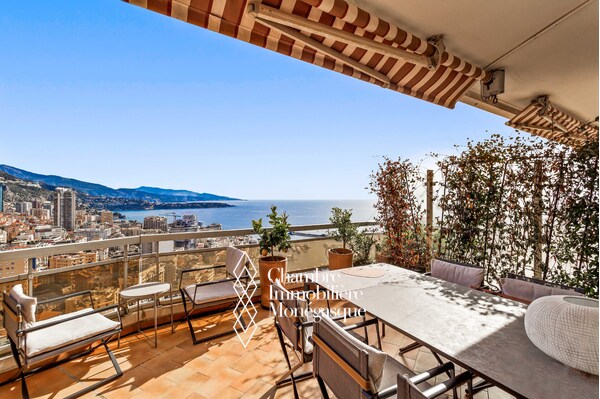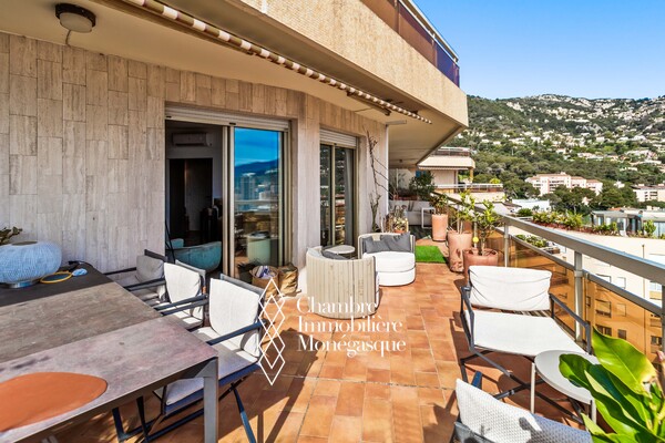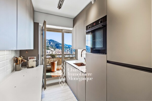 Located in a luxury building with swimming pool and tennis court, this superb one bedroom apartment has been completely renovated with high quality materials offering top-of-the-range services and an exceptional living environment. The apartment consists of a bright living room opening onto a large terrace, ideal for fully enjoying the outdoors, a fully equipped modern kitchen, a comfortable bedroom with built-in wardrobes and an elegant shower room. The breathtaking view of the Port and the Rock offers a rare and sought-after panorama.