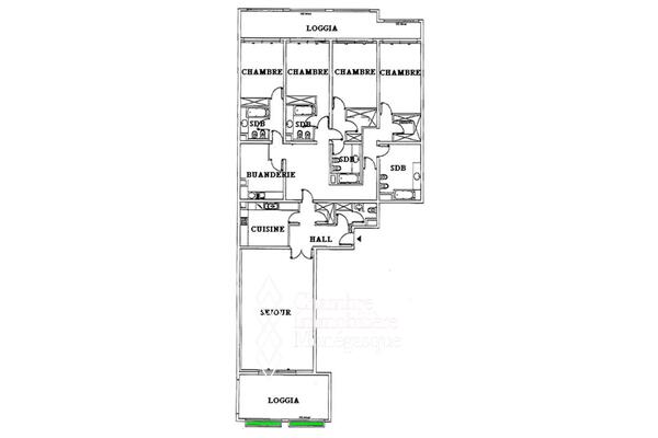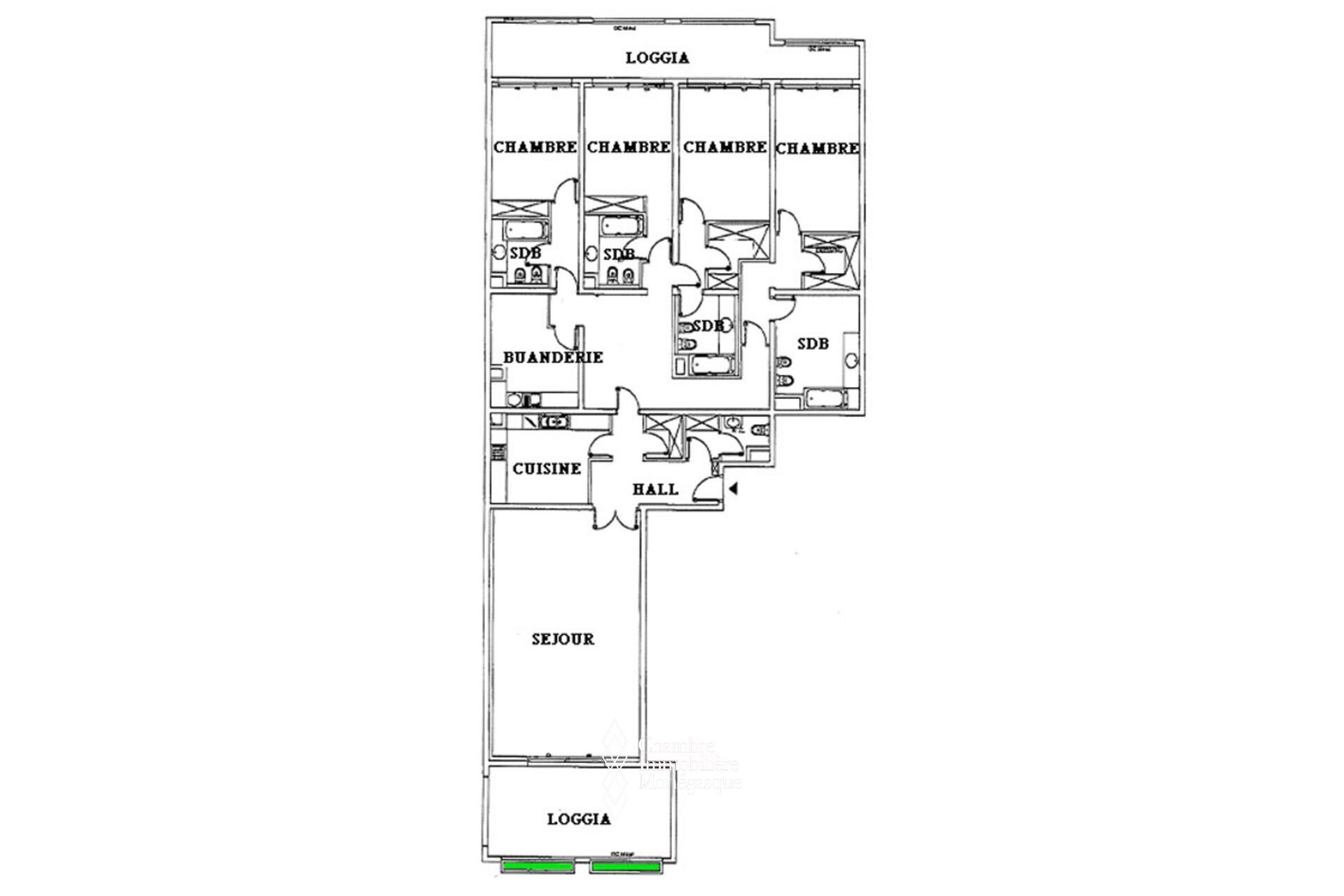 Entrance hall, living room, fully equipped kitchen, laundry room, 4 bedrooms, 2 walk-in closets, 3 cupboards, 4 bathrooms, guest WC, 2 large loggias. 2 parking spaces, 1 cellar.