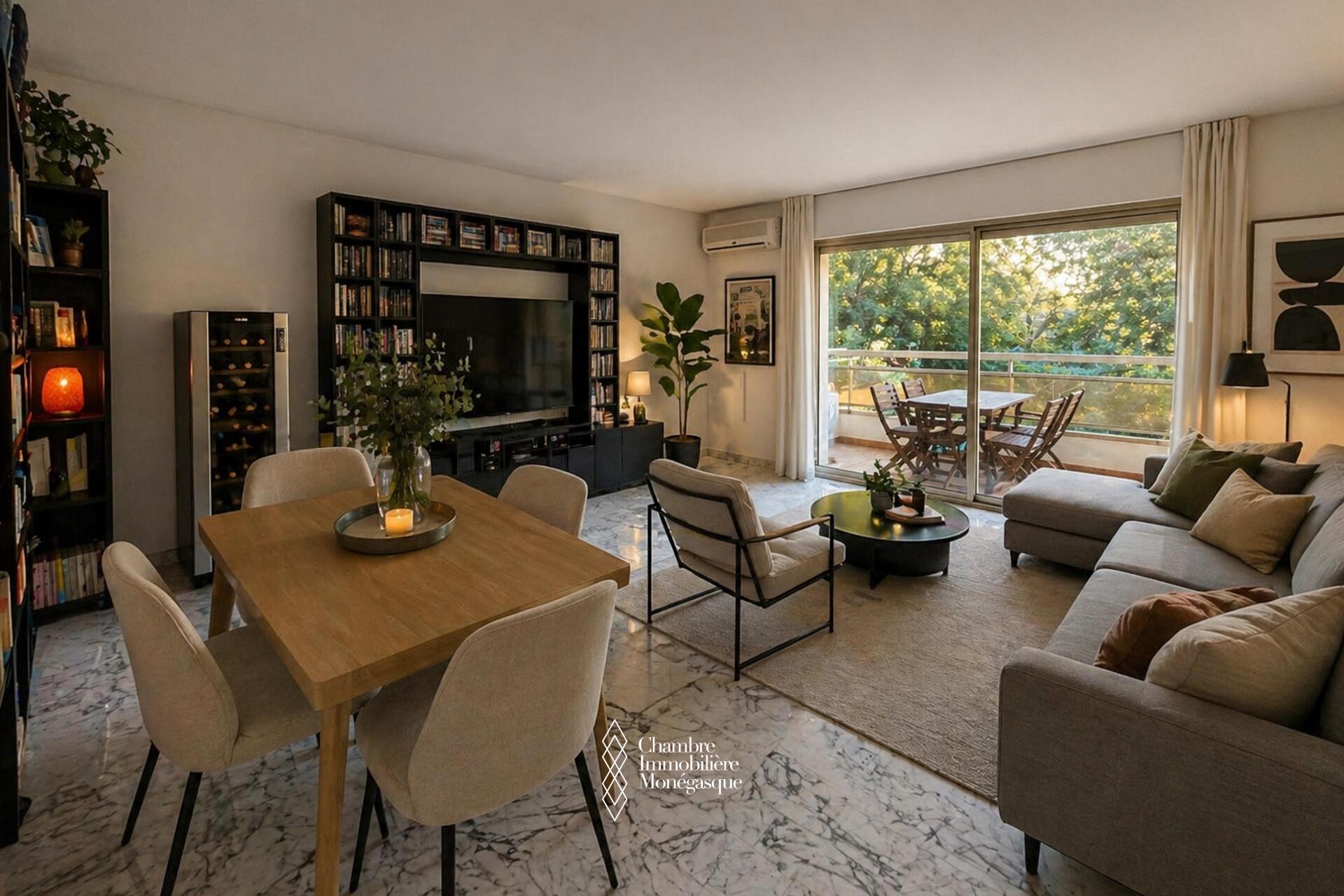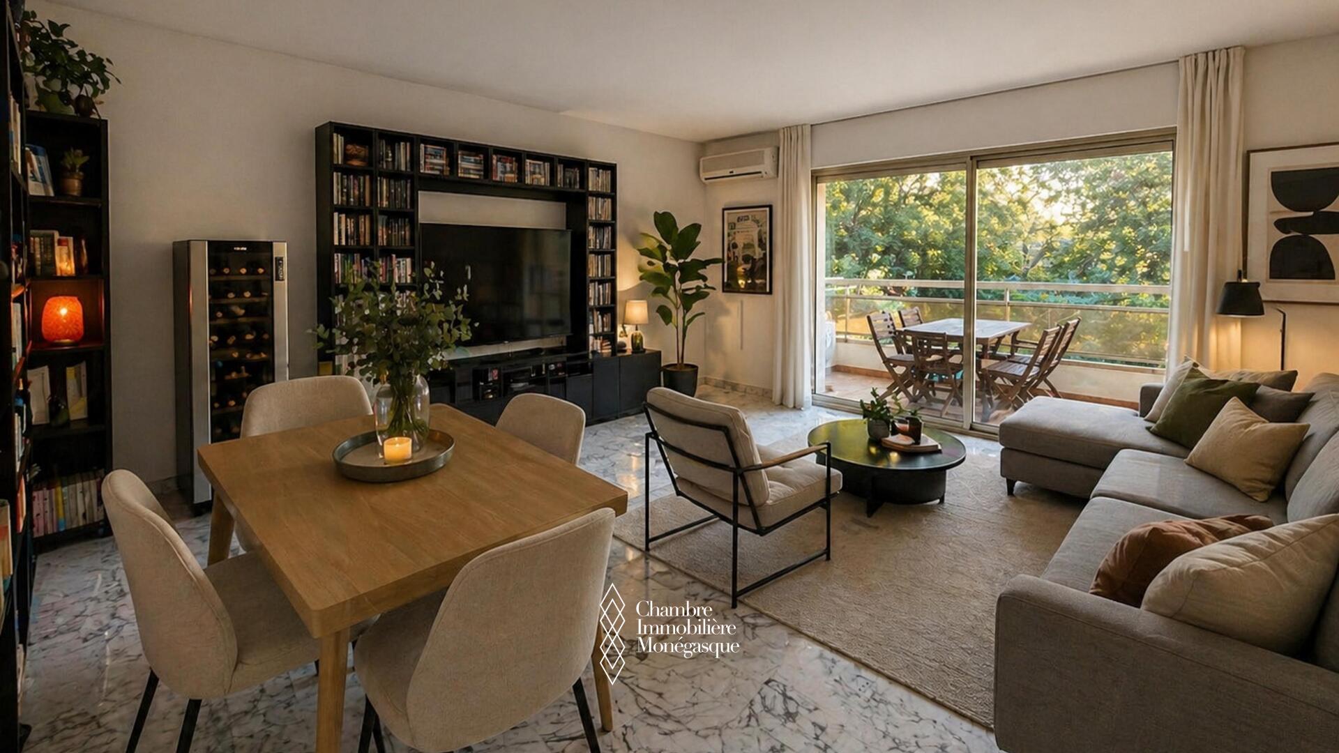 Bright and spacious, this 75 m² 1-bedroom apartment, including 15 m² of terrace, offers a very pleasant living environment within a luxury residence complete with a swimming pool and tennis court in the Jardin Exotique neighbourhood.