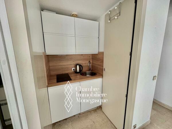 Luxury residence with concierge service, ideally located close to beaches and shops. The apartment features an entrance hall, a bright main living area with a newly equipped kitchenette, and  bathroom. A private cellar in the same building is included.
