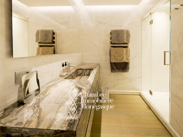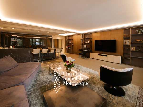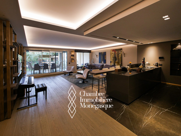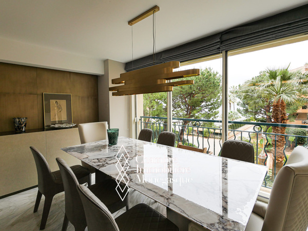 Located in the Fontvieille district, in a standing building in a quiet area. This magnificent 3/4 bedroom apartment in excellent condition and with luxurious finishes has been entirely renovated with noble materials such as marble, wood flooring and great taste.