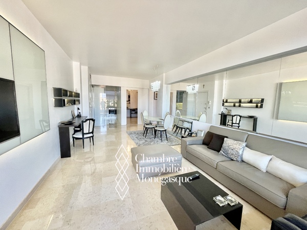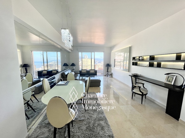 Located in a quiet street of the Moneghetti district, this magnificent 4-room apartment offers breathtaking views of the sea and Cap Martin. Close to all amenities, it impresses with its generous volumes and bright atmosphere.