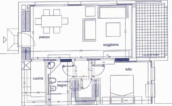 This apartment is composed of a large living room opening onto a terrace, a fitted kitchen, a bedroom, a bathroom, a dressing room and a cellar.