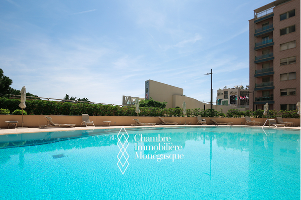 Close to the Golden Square and few steps away from the Japanese Garden and the Larvotto Beach, this gorgeous 2 bedroom apartment has a total area of 164sq.m. and is located in an exclusive residence with 24/7 security, gym, large swimmingpool, poolhouse and bar. This beautiful residence is also home to the CREM - the Foreign residents of Monaco Club and the famous Cipriani restaurant. You will be able to enjoy part of the Formula 1 Monaco Grand Prix from this apartment's large terrace. The flat comprises a large living room leading to a beautiful spacious terrace, two bedrooms each with its shower/ bath room. The kitchen has its own breakfast corner. Luxurious high quality finishes, beautiful marble floors and marble bathrooms, air conditioning, Additional parking available
