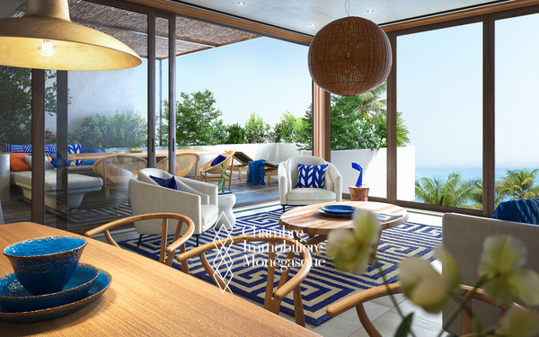 Magnificent apartment that enjoys a magnificent view of the Mediterranean Sea. In the new residence of the Exotique, located at the entrance of Monaco and overlooking the Principality, which has a swimming pool and a gym,