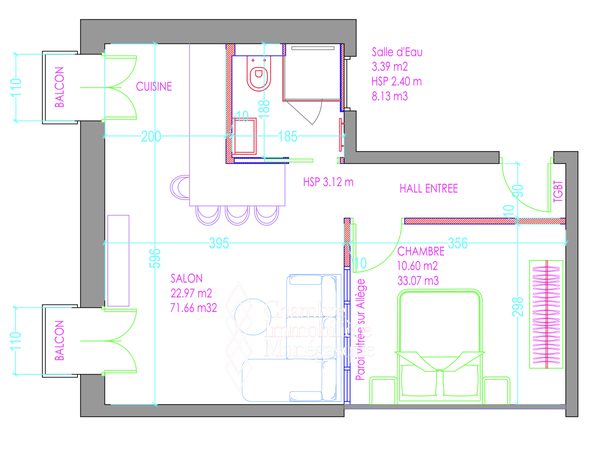 It is located on the top floor of a small building near the Place de la Mairie. It consists of an entrance, a living room with a fully equipped American kitchen, a bedroom, a shower room. Fully air-conditioned. A cellar completes this property.